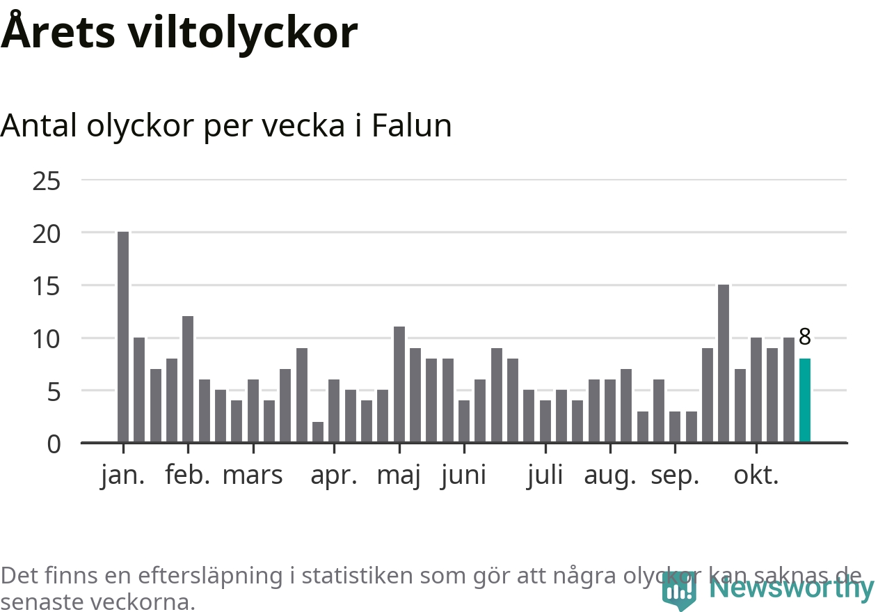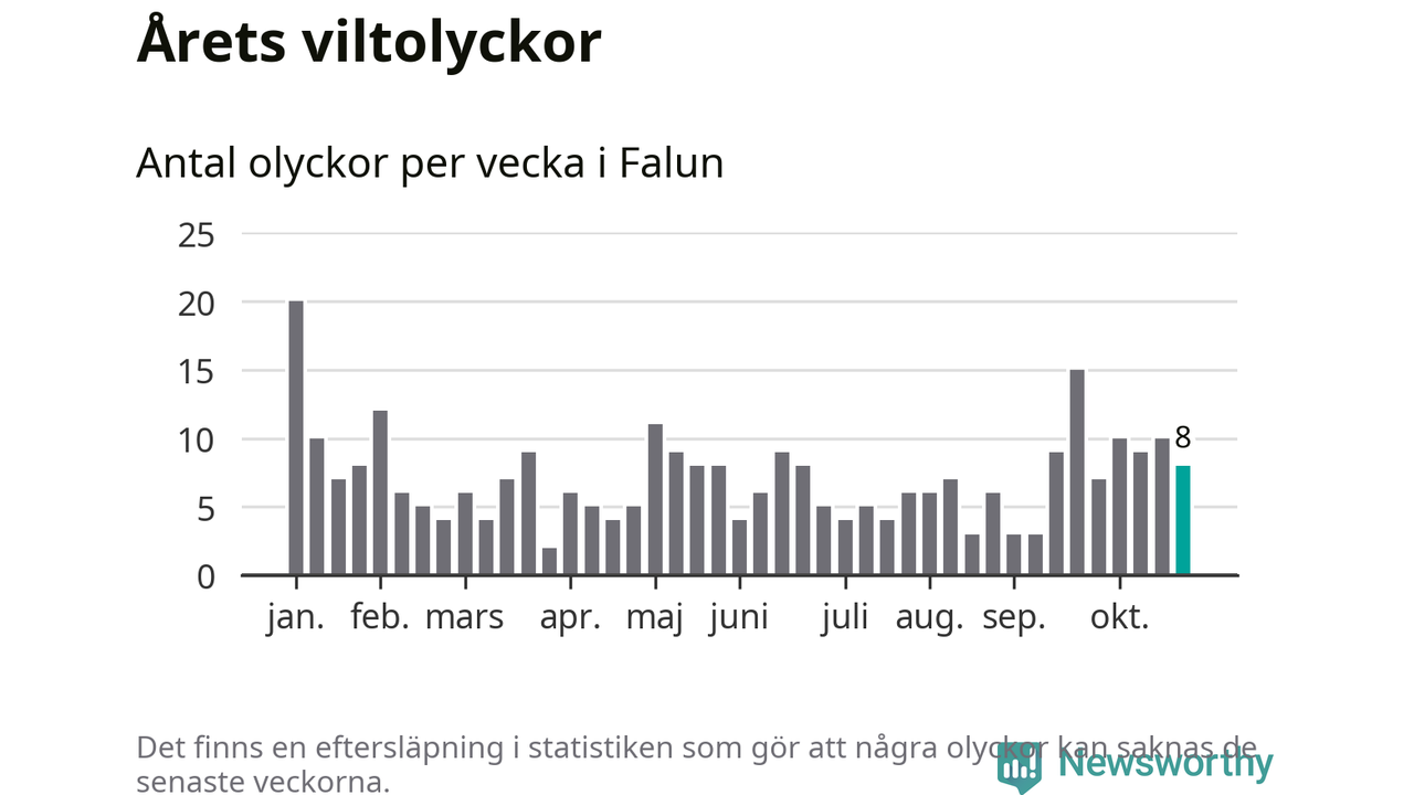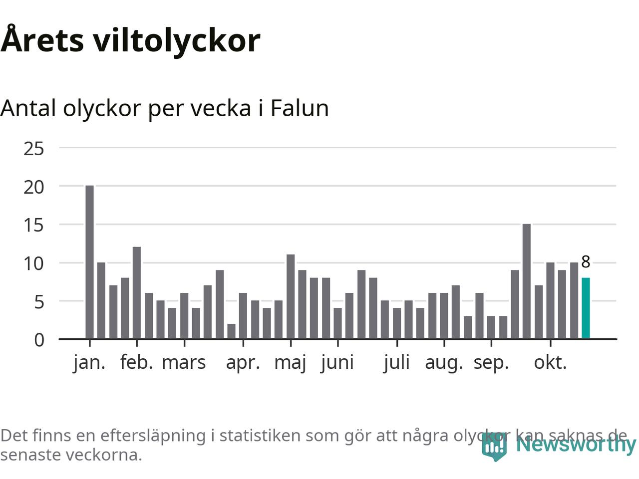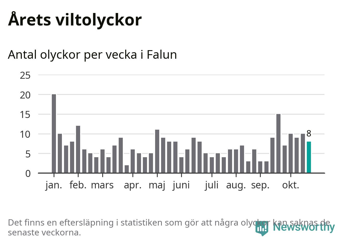 Hittills har åtta viltolyckor rapporterats in i Falu kommun från vecka 44. Se listan här.