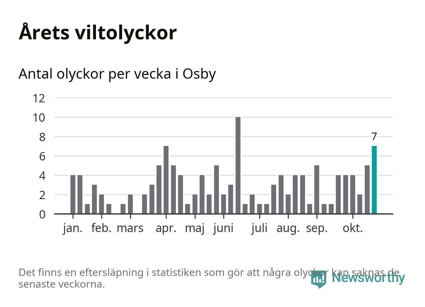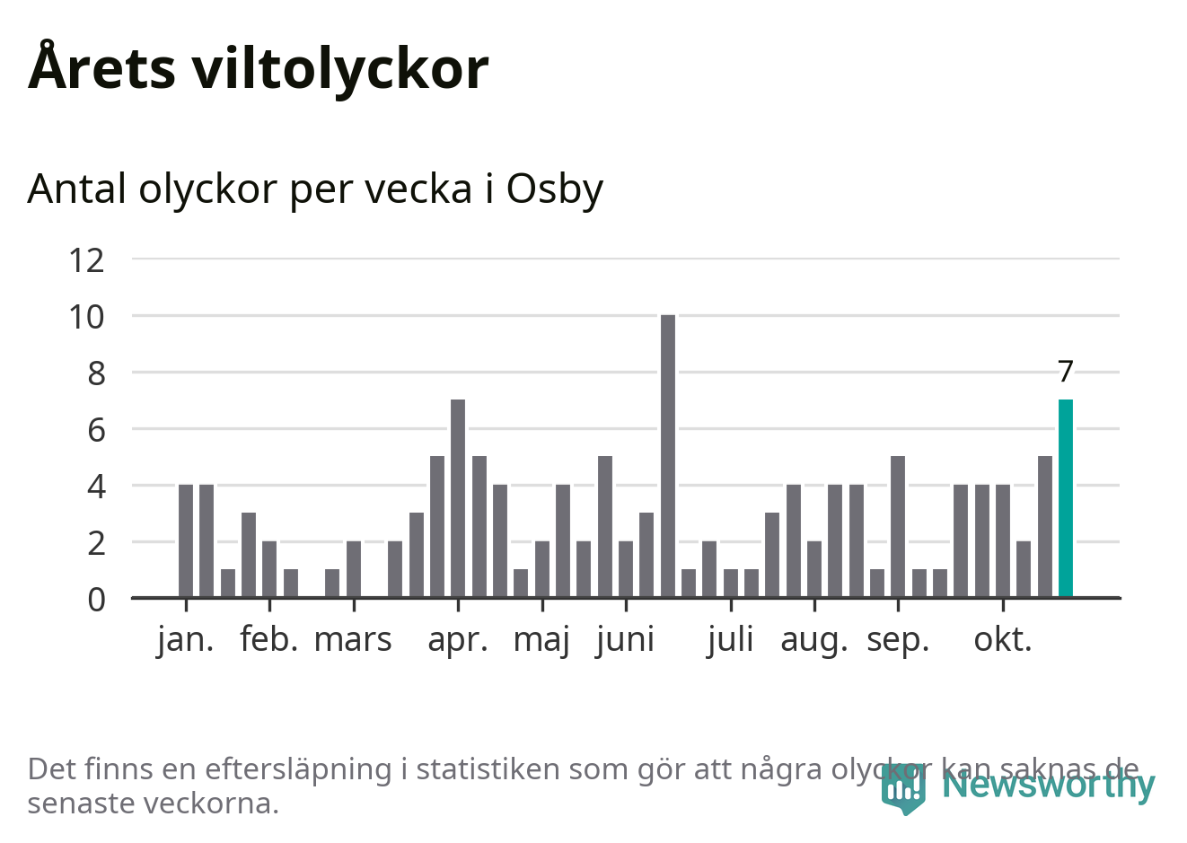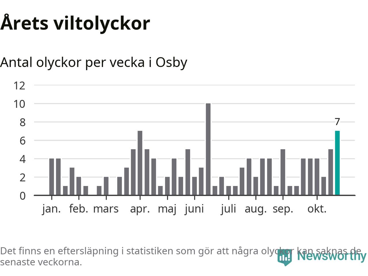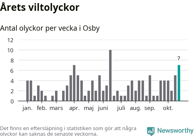 Hittills har sju viltolyckor rapporterats in i Osby kommun från vecka 44. Se listan här.