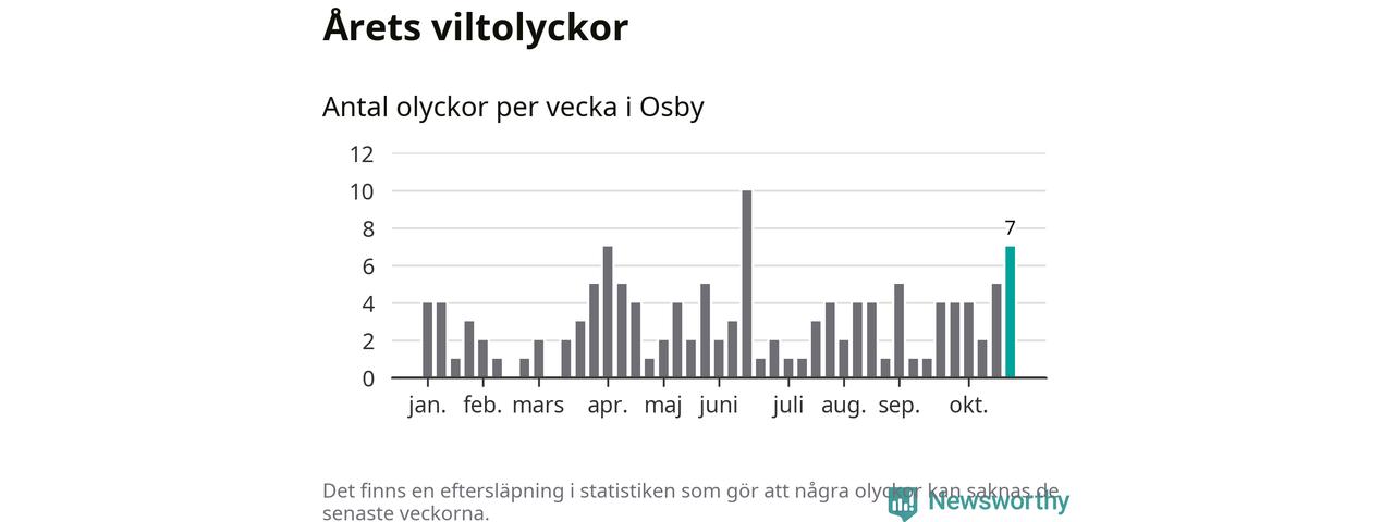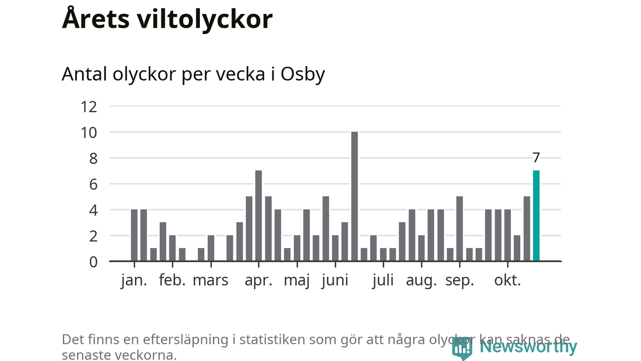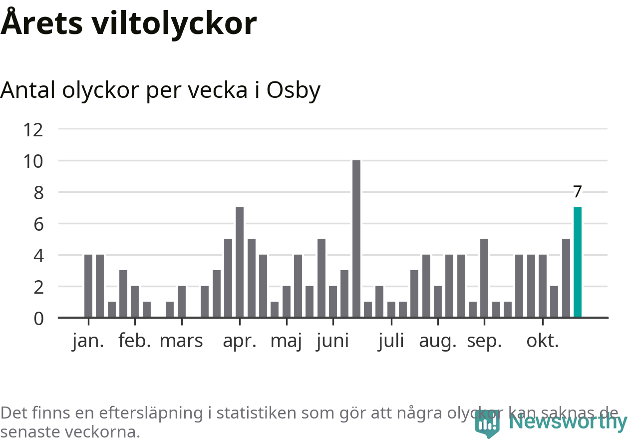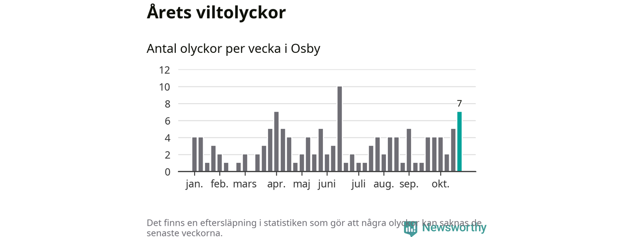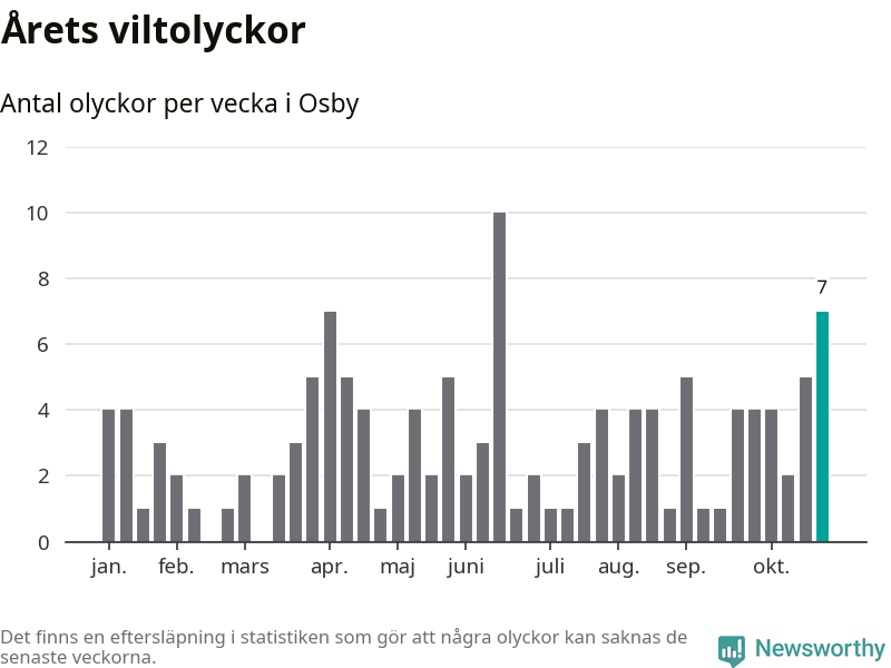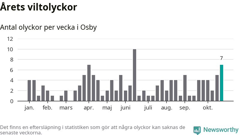 Hittills har sju viltolyckor rapporterats in i Osby kommun från vecka 44. Se listan här.