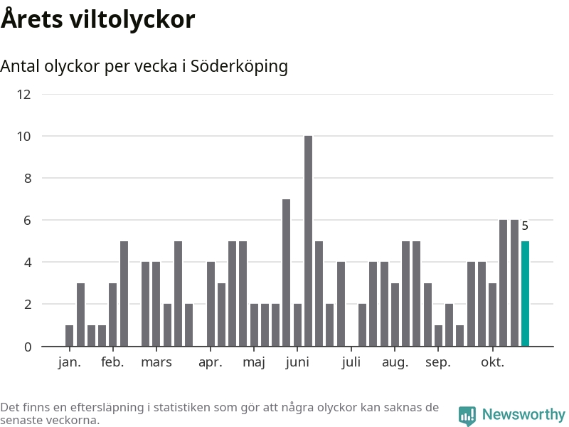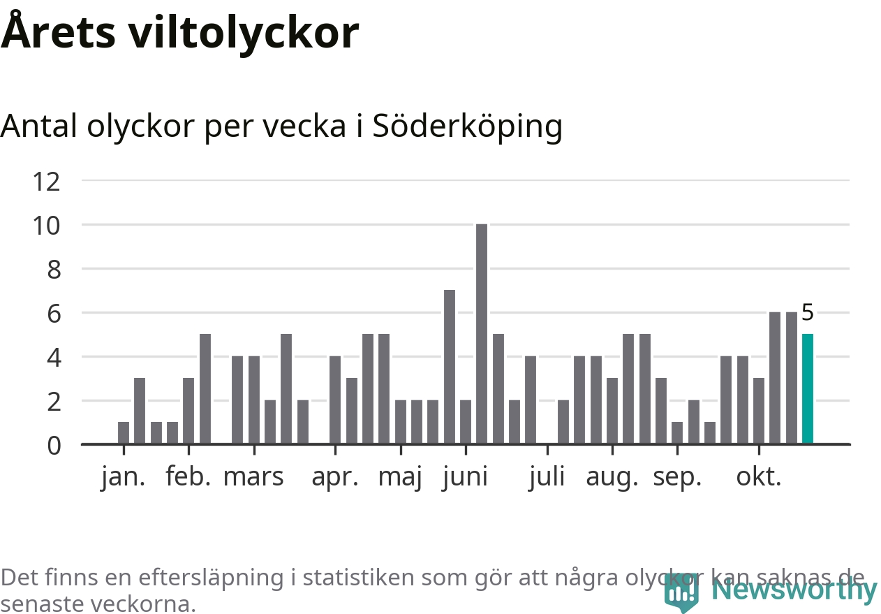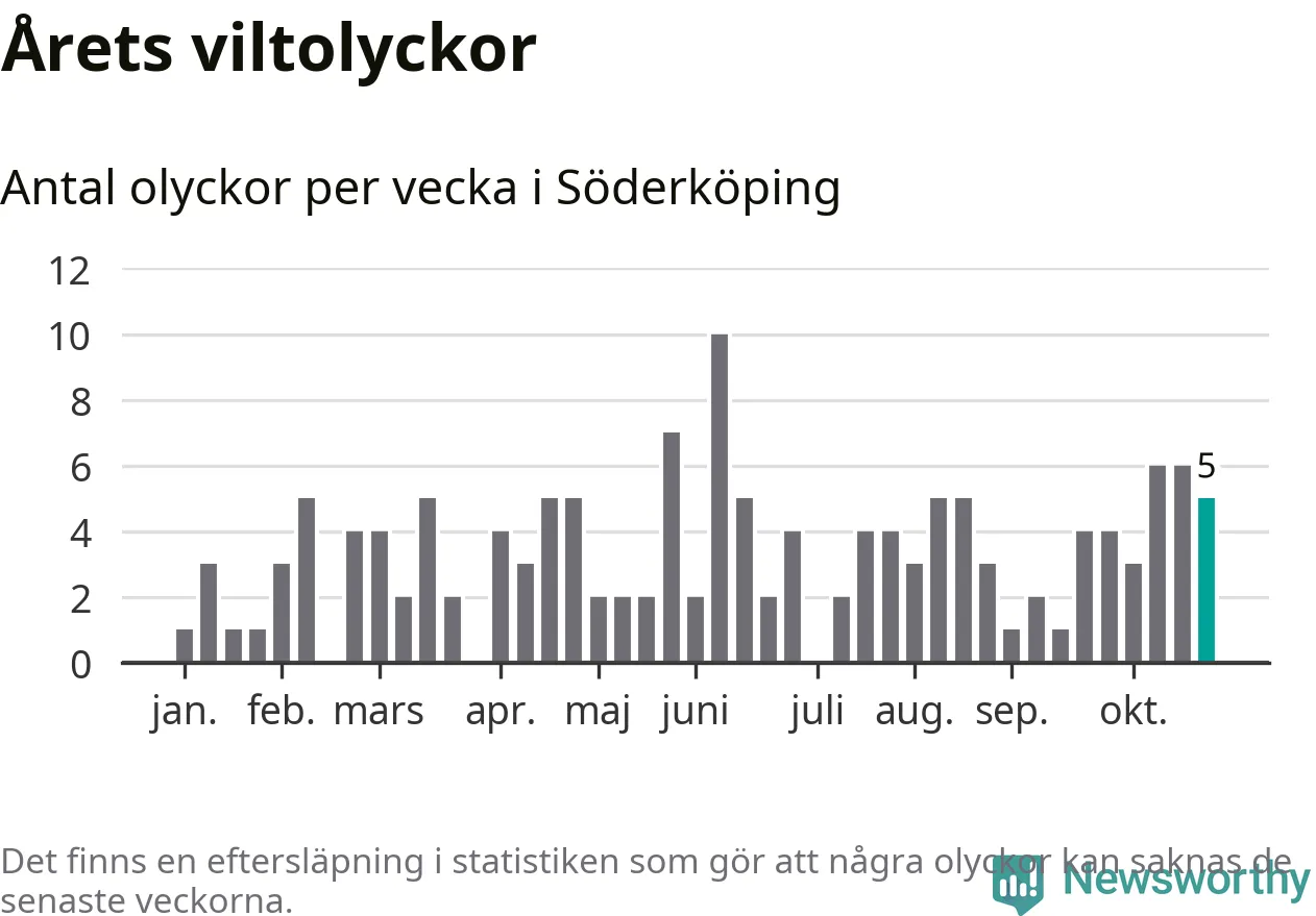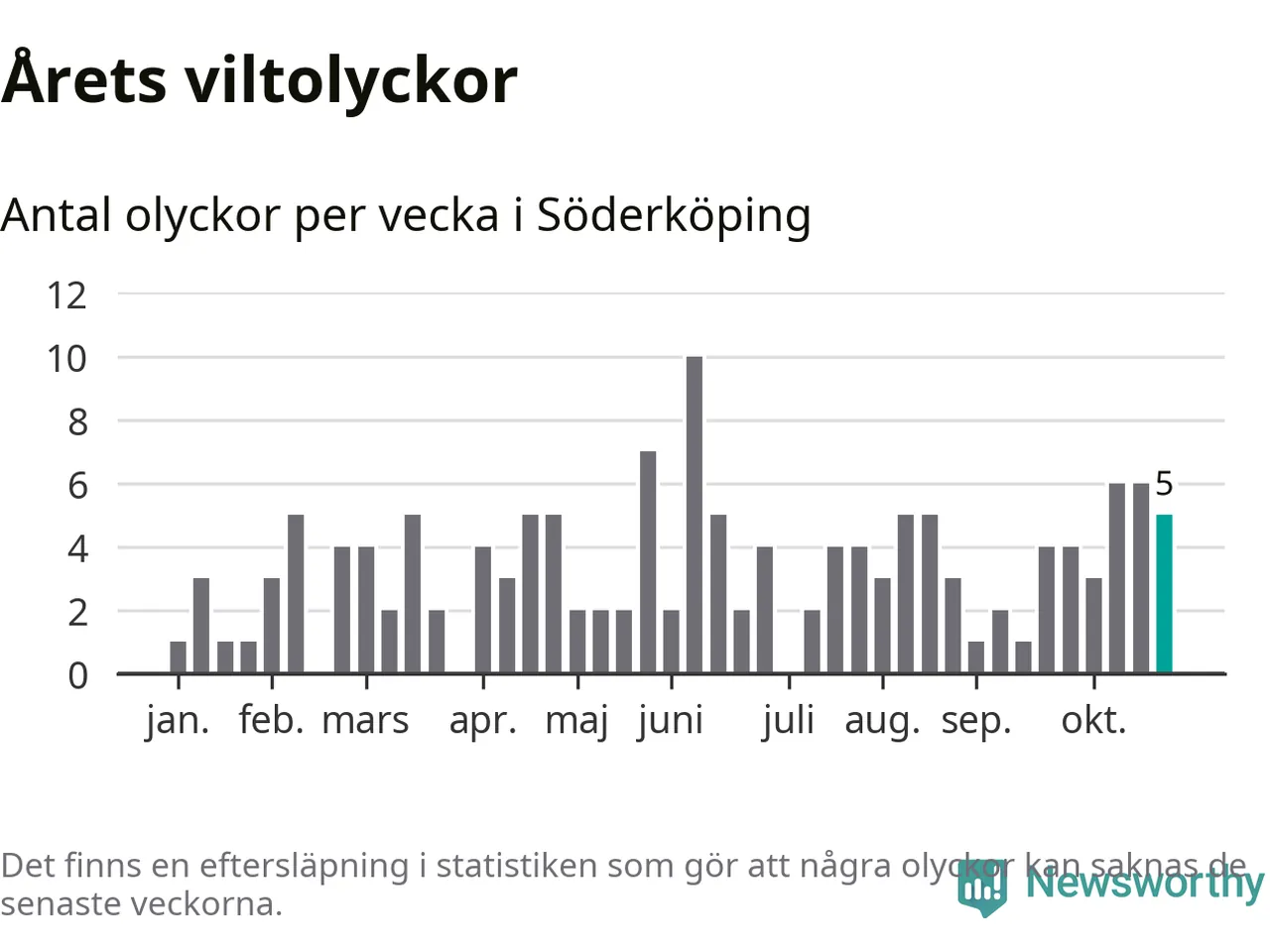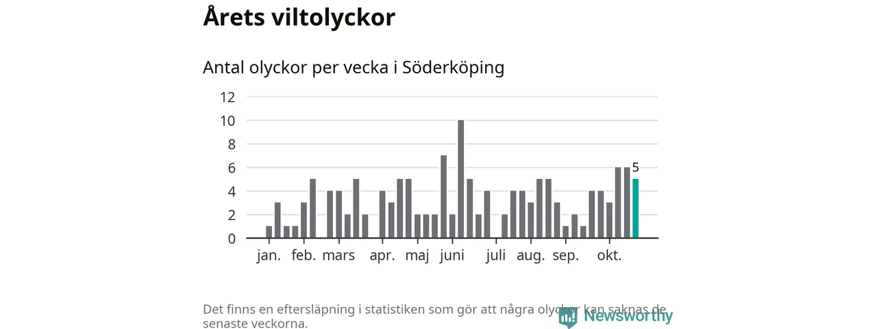 Hittills har fem viltolyckor rapporterats in i Söderköpings kommun från vecka 44. Se listan här.