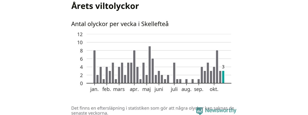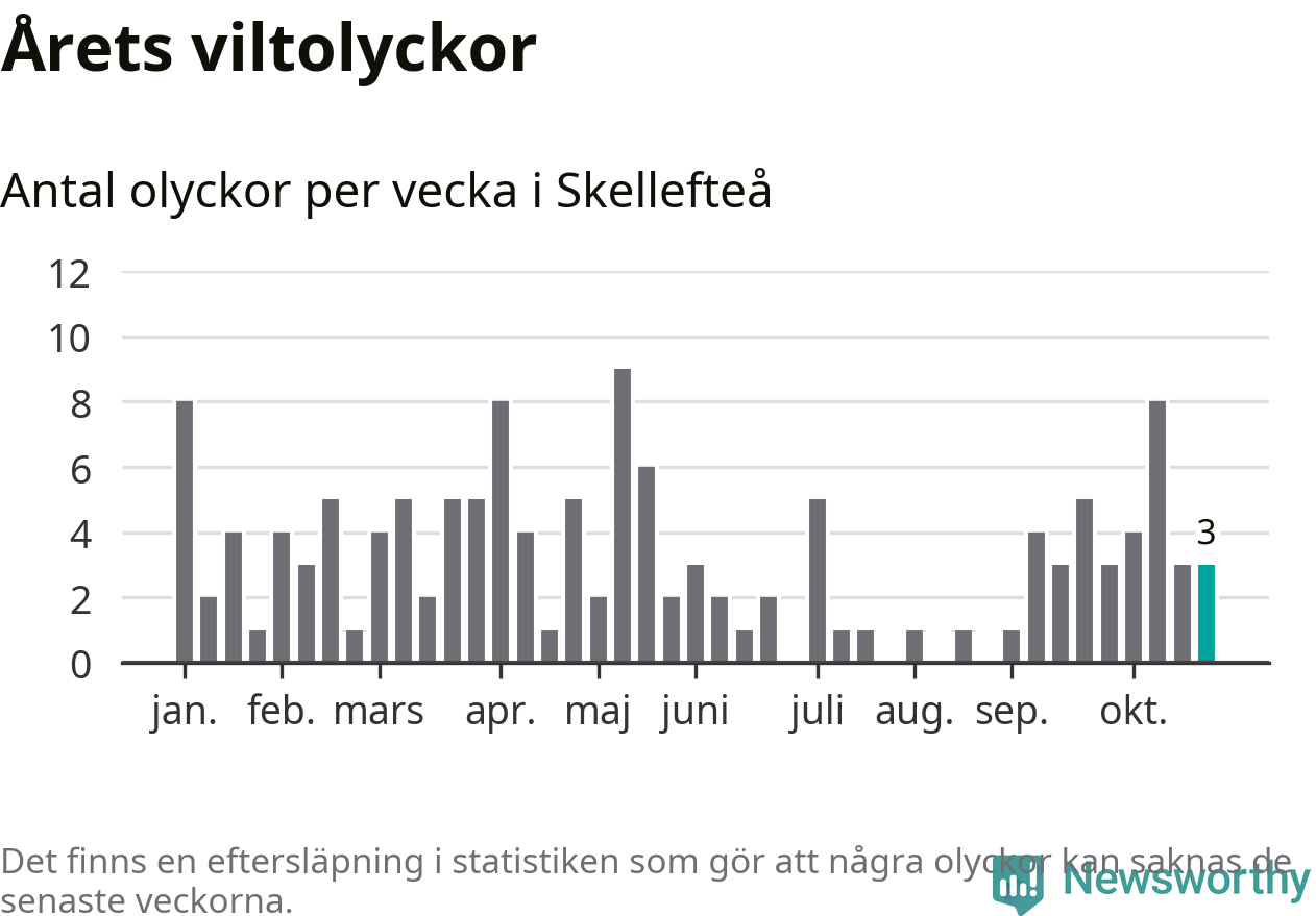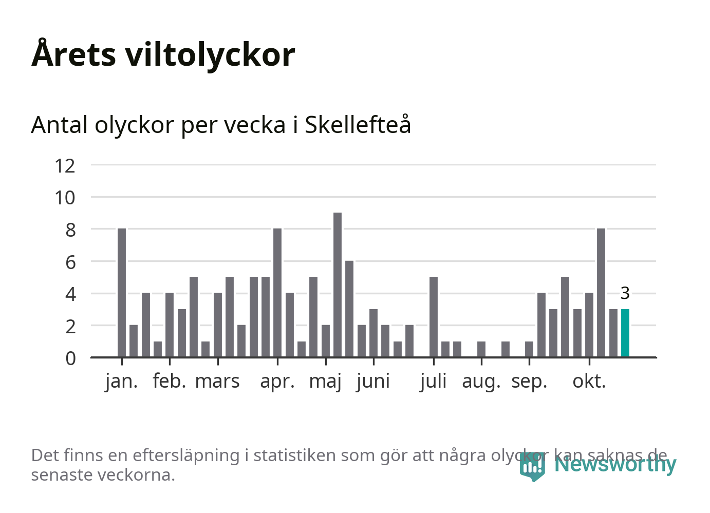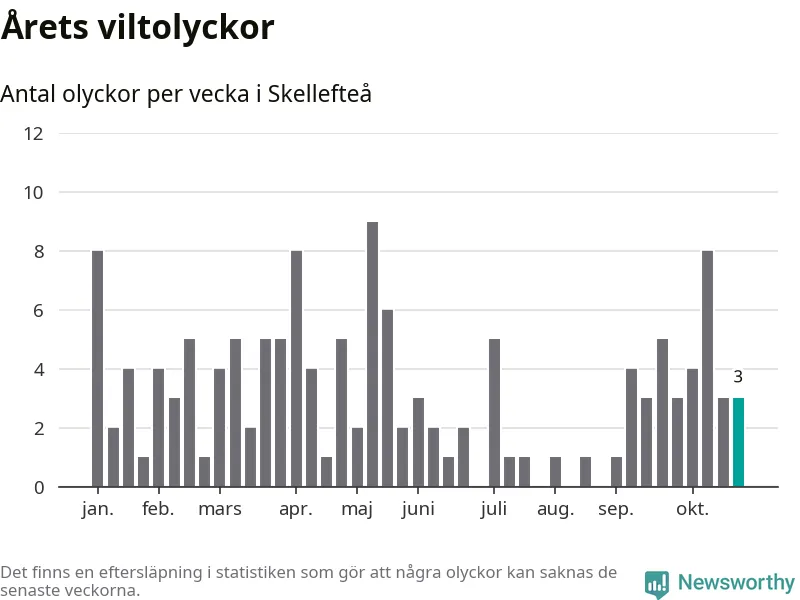 Hittills har tre viltolyckor rapporterats in i Skellefteå kommun från vecka 44. Se listan här.