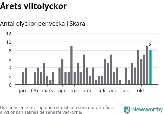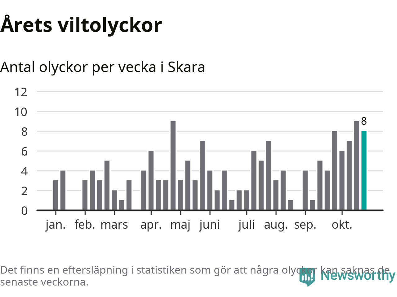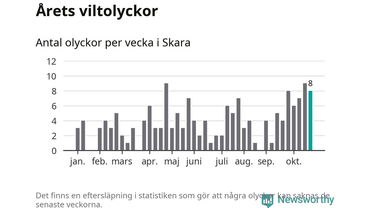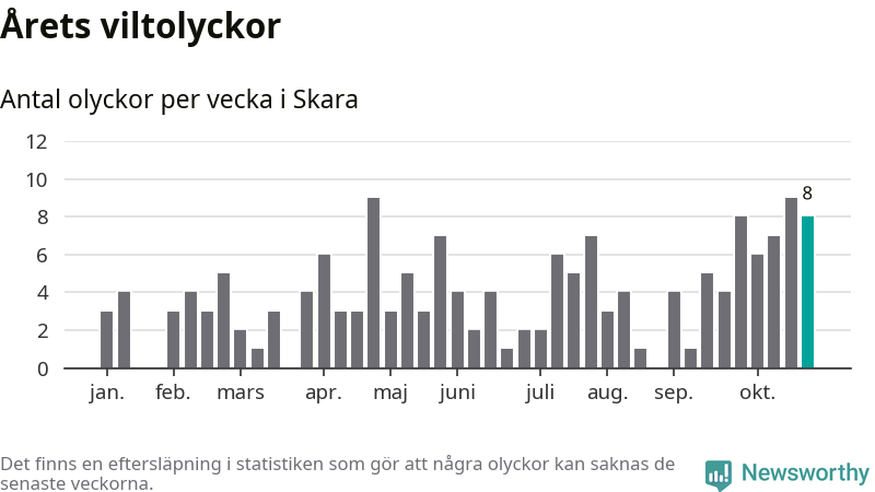 Hittills har åtta viltolyckor rapporterats in i Skara kommun från vecka 44. Det är en av de högsta siffrorna för en enskild vecka på över tio år.