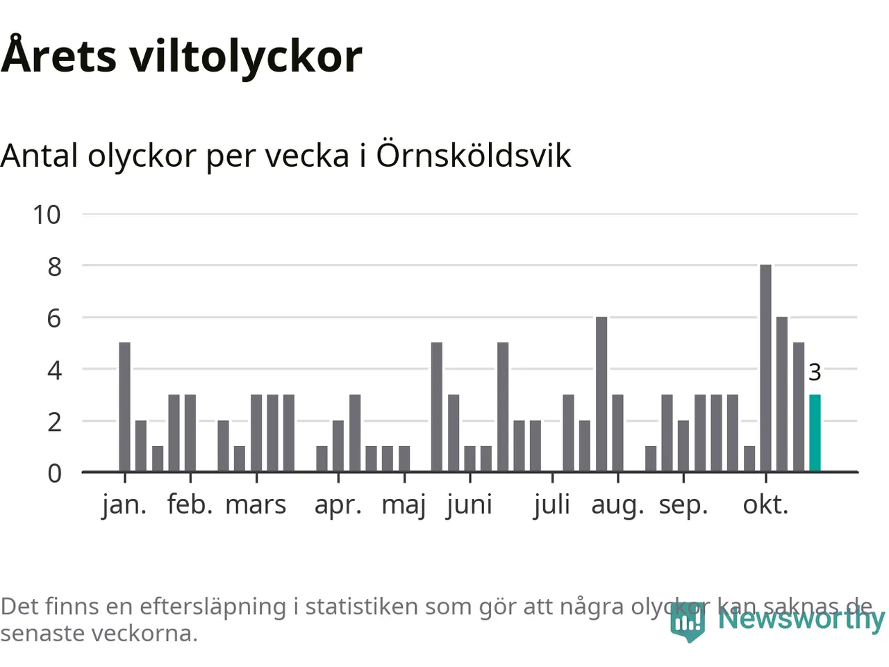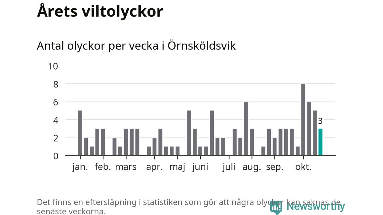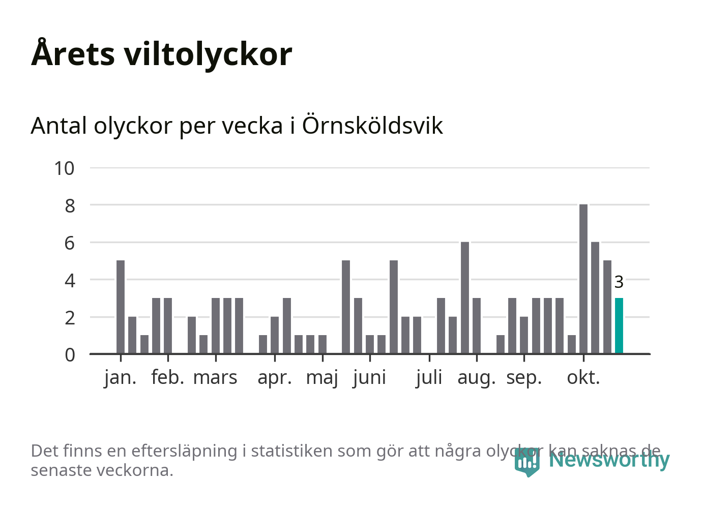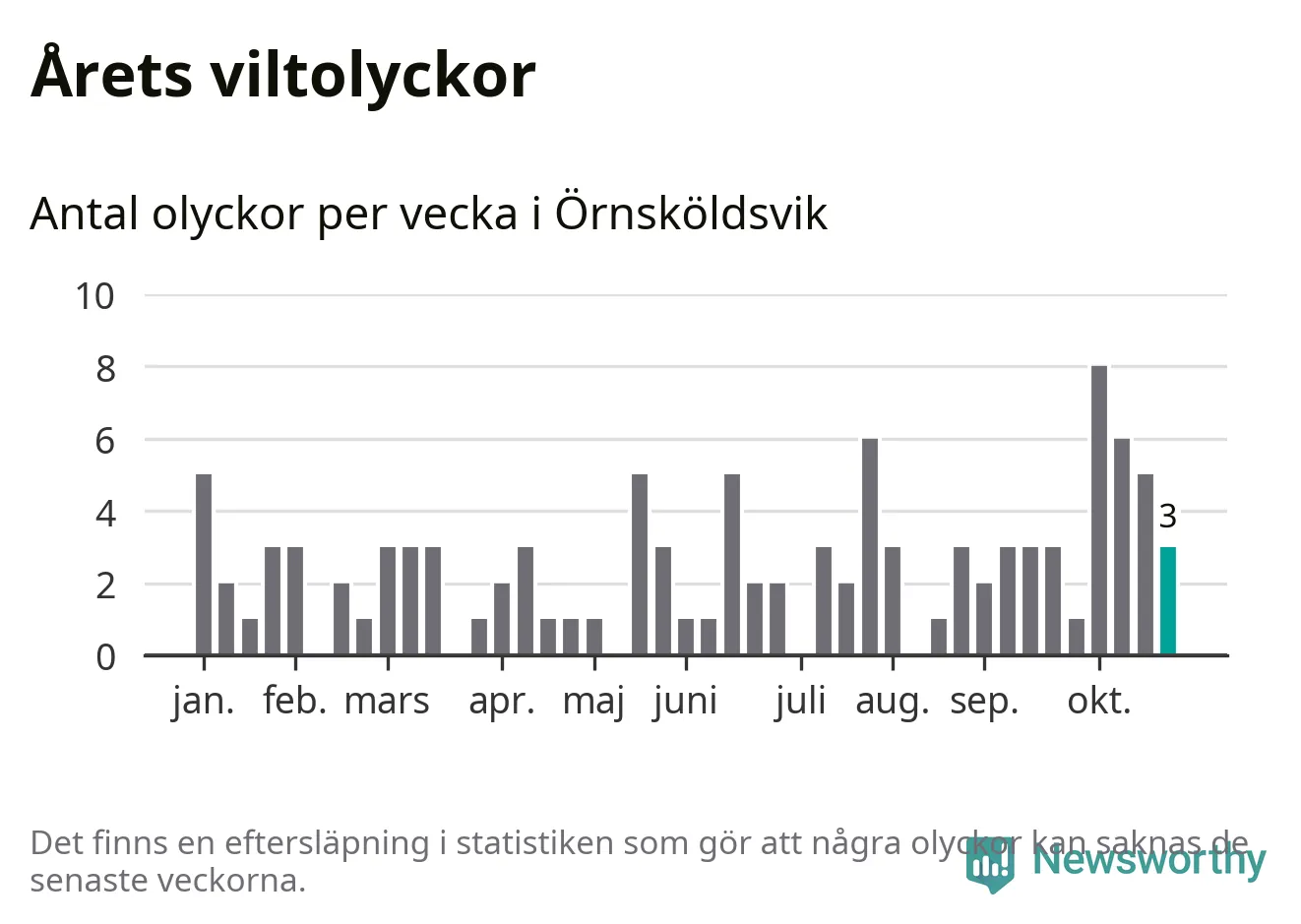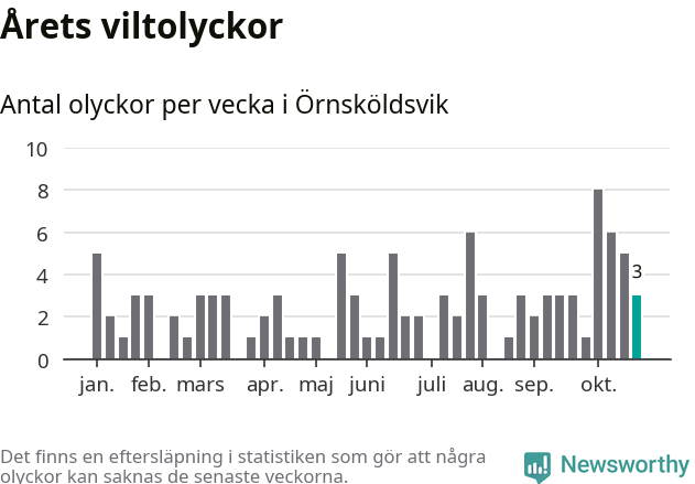 Hittills har tre viltolyckor rapporterats in i Örnsköldsviks kommun från vecka 44. Se listan här.
