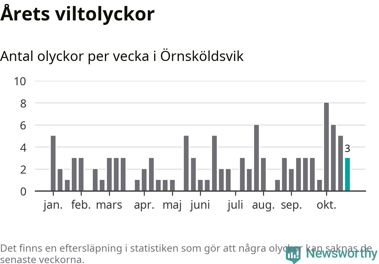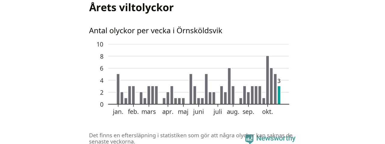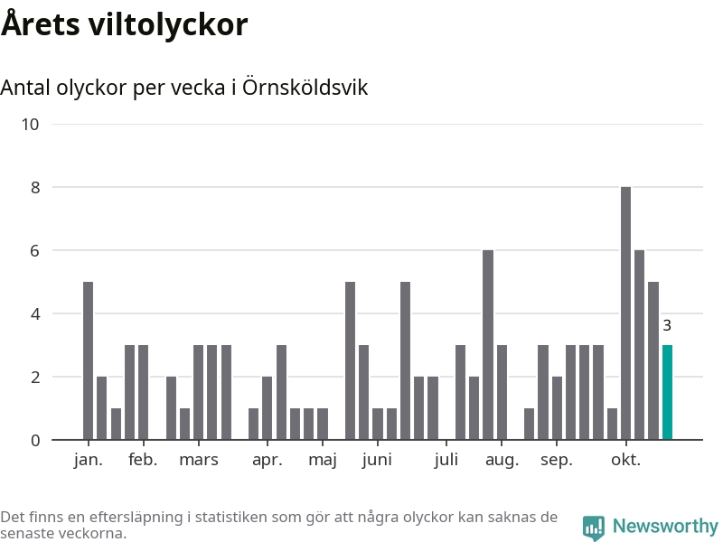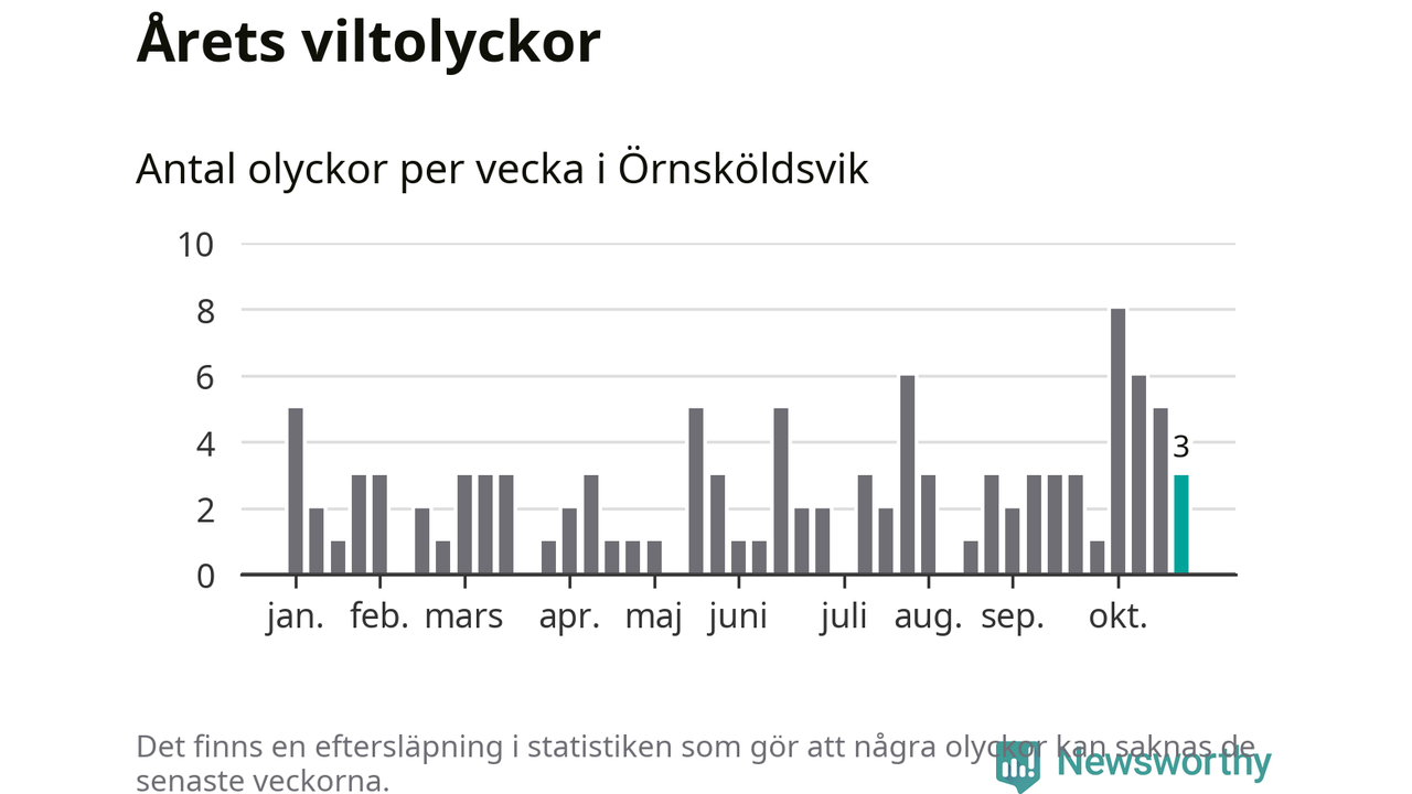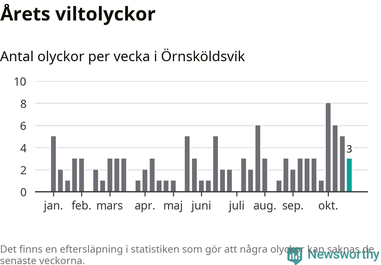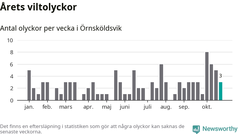 Hittills har tre viltolyckor rapporterats in i Örnsköldsviks kommun från vecka 44. Se listan här.