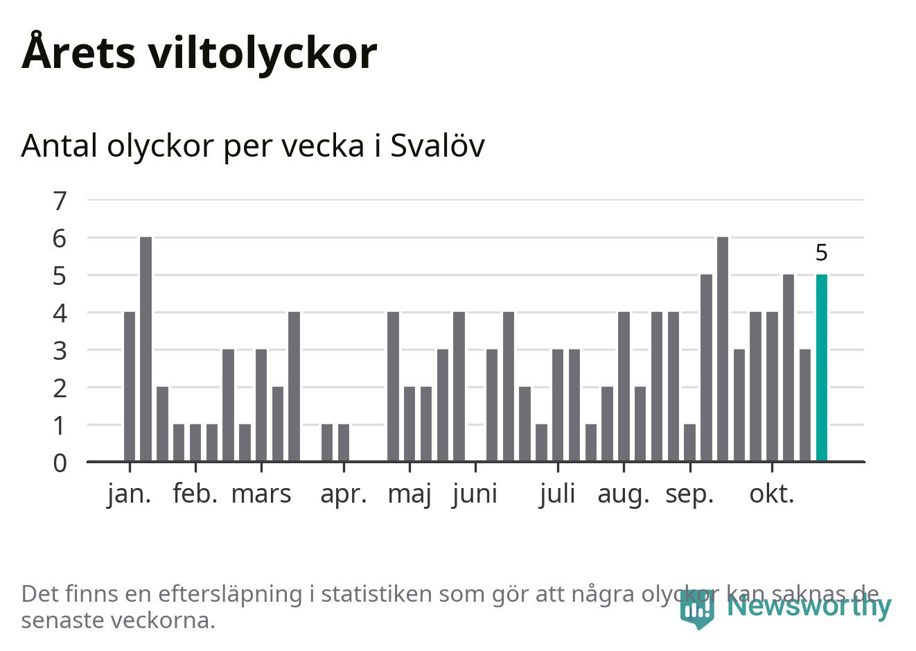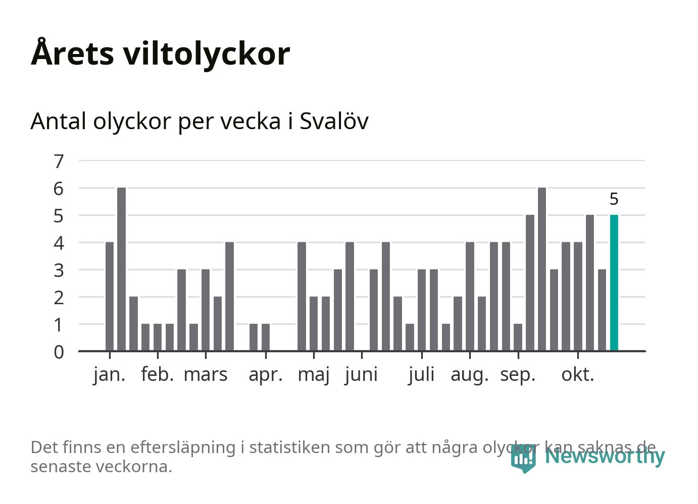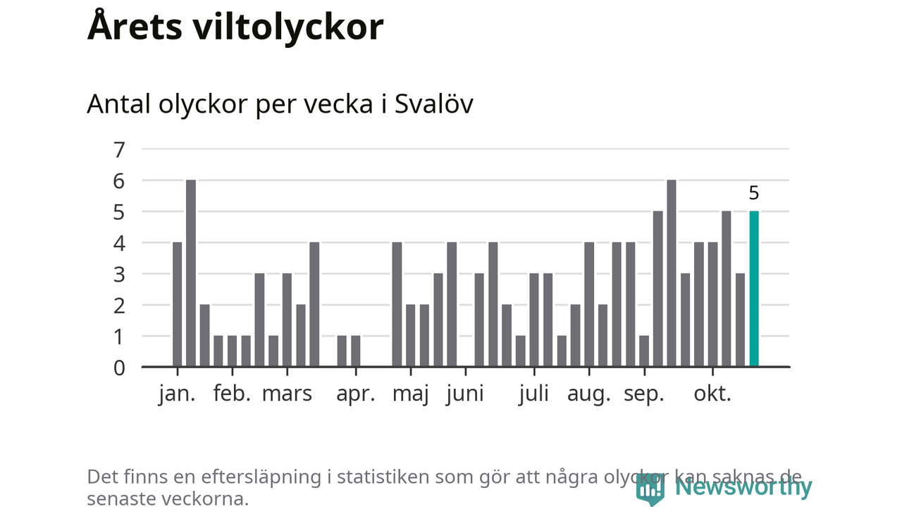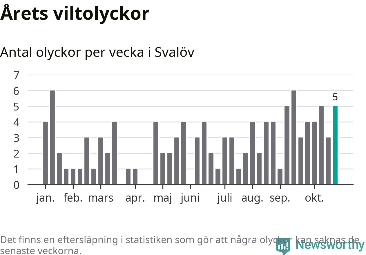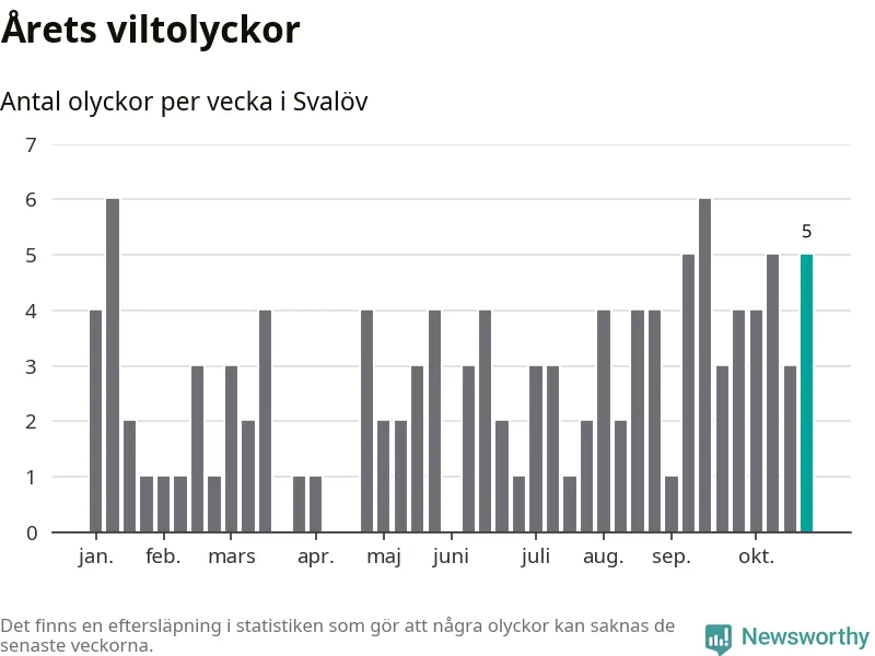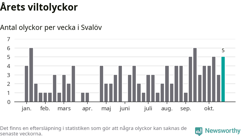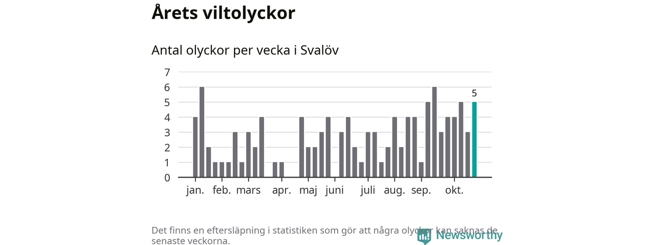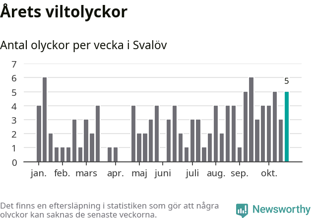 Hittills har fem viltolyckor rapporterats in i Svalövs kommun från vecka 44. Se listan här.