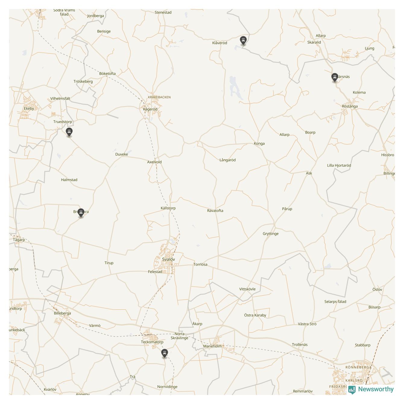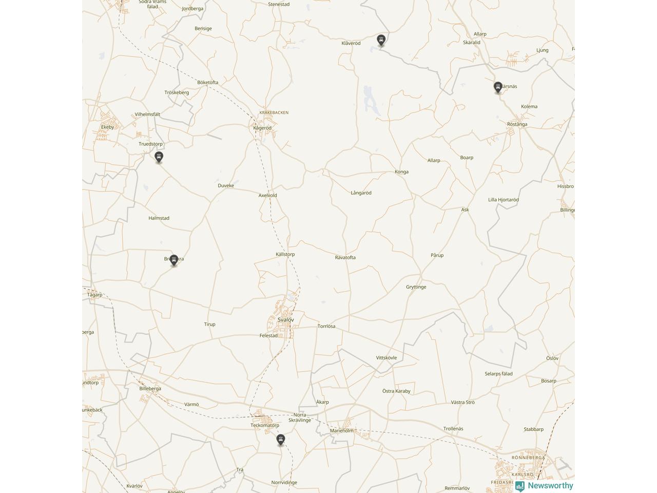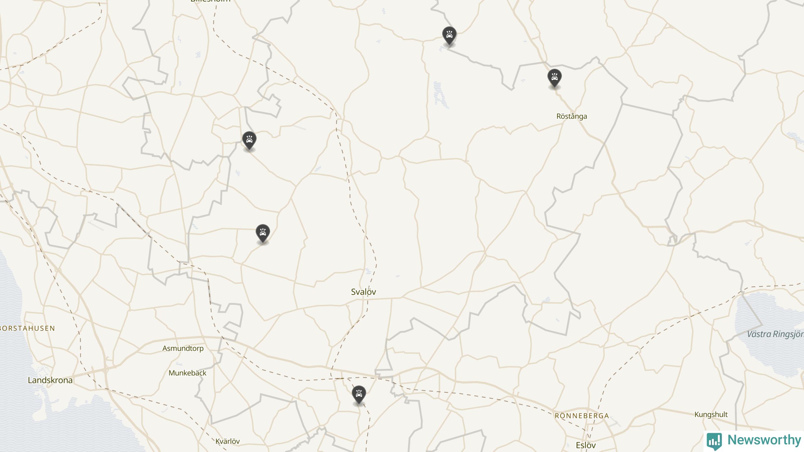 Karta över viltolyckor i Svalövs kommun