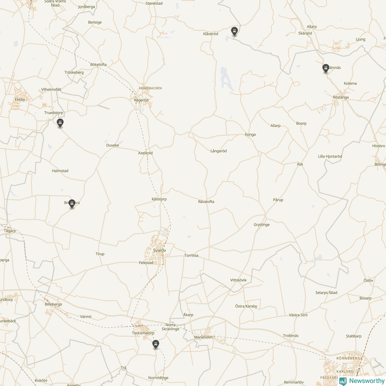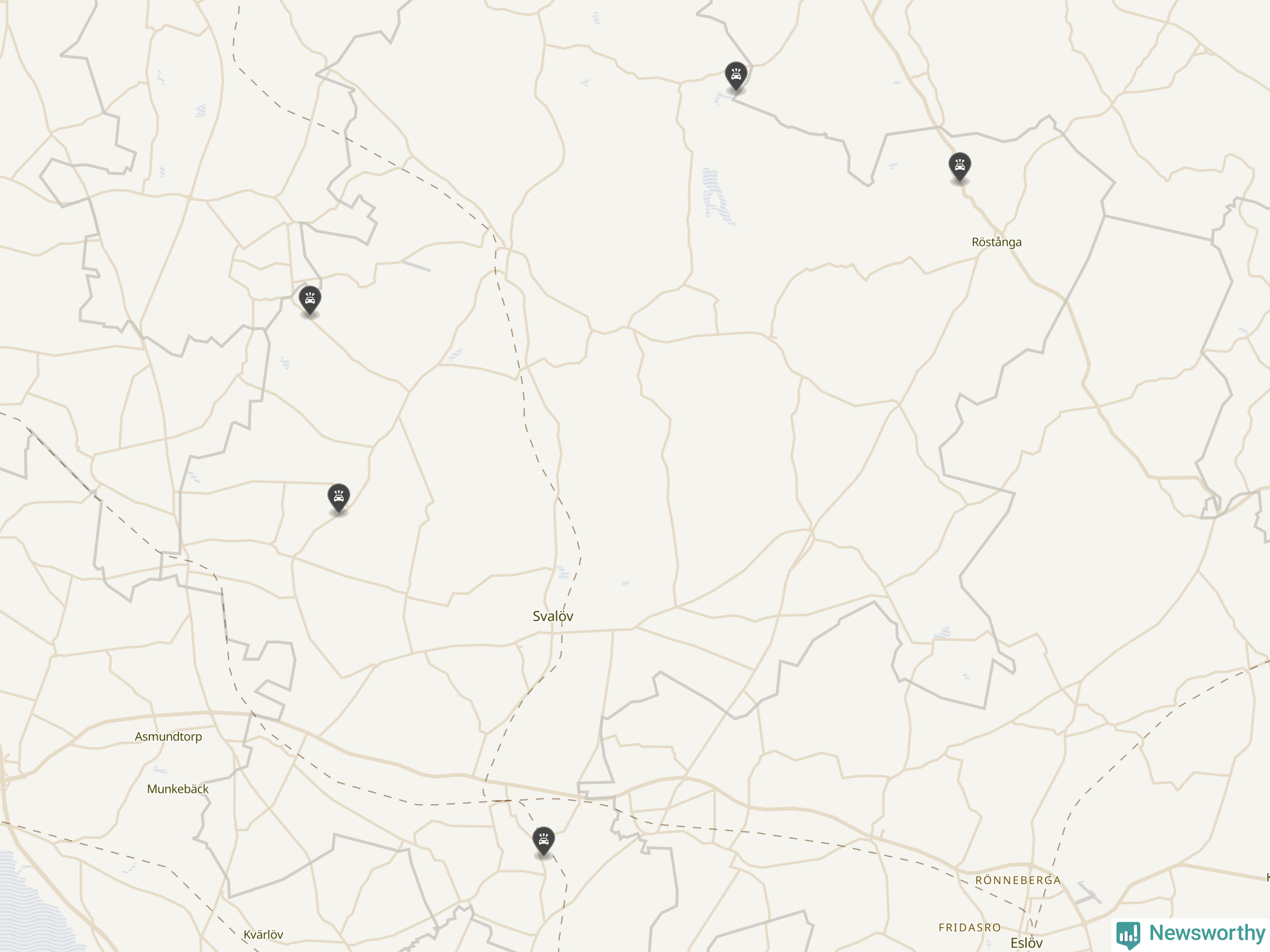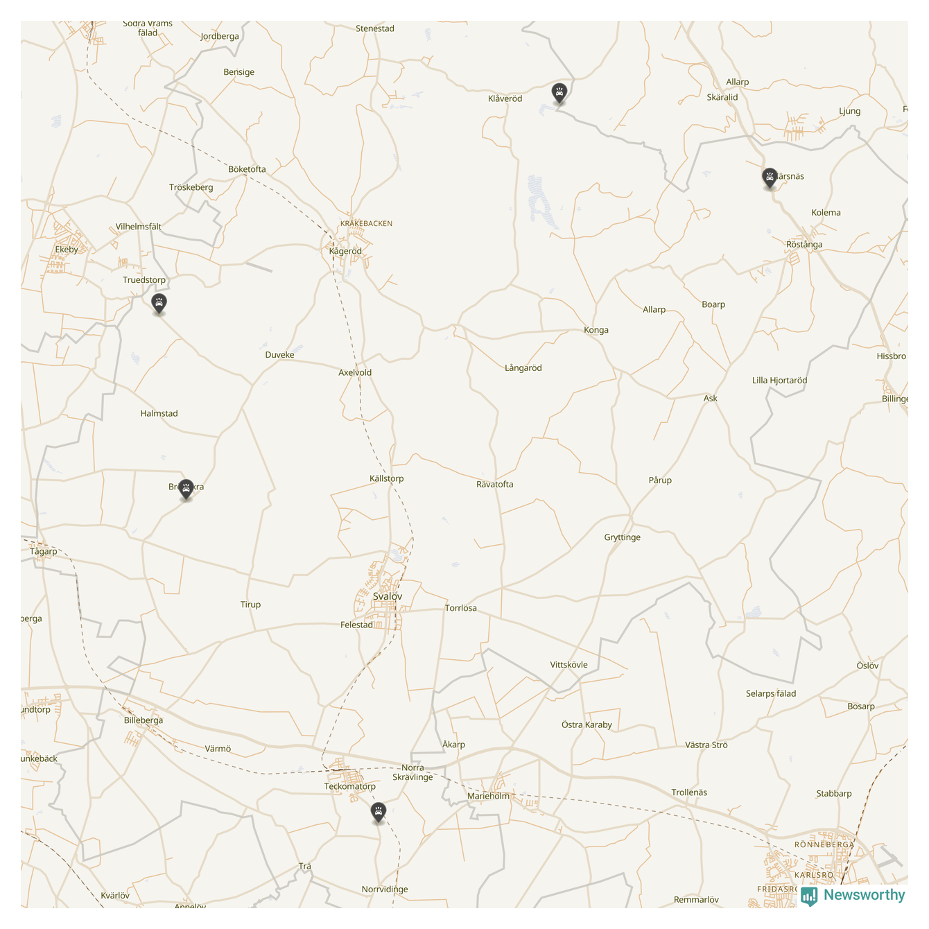 Karta över viltolyckor i Svalövs kommun