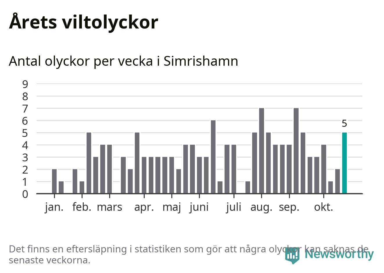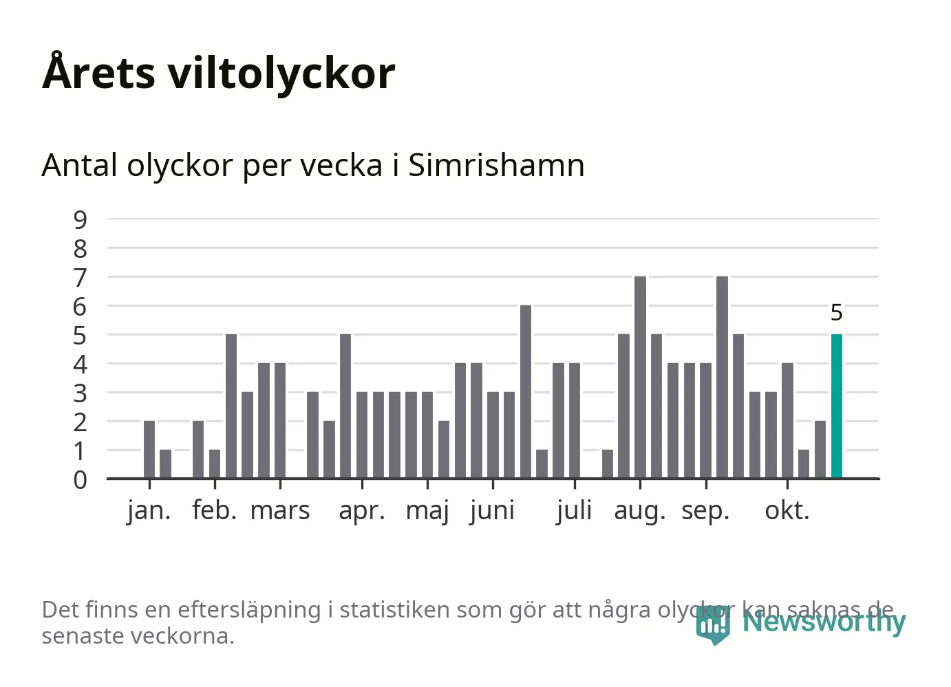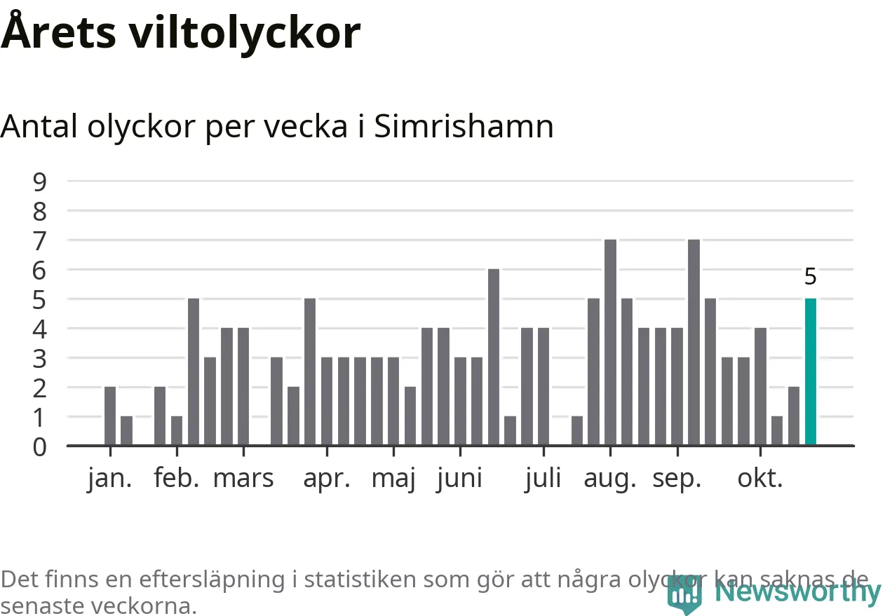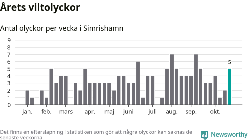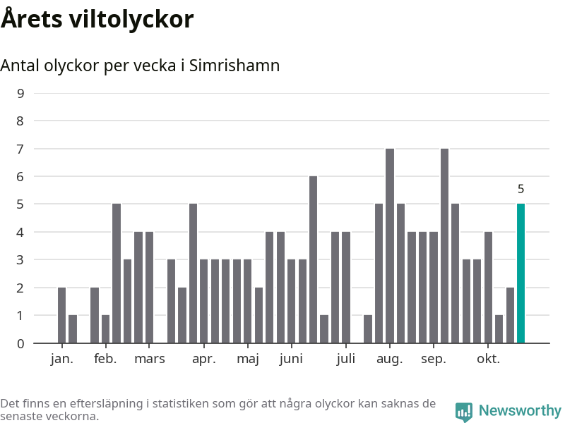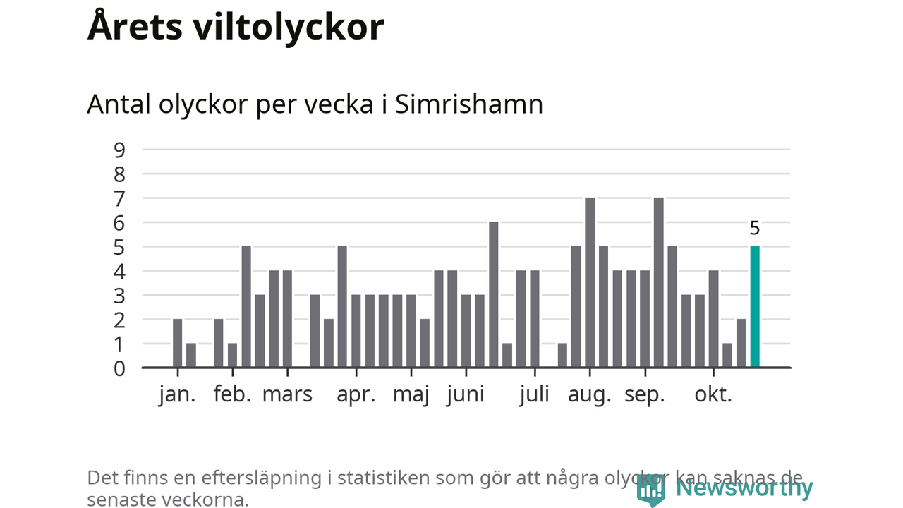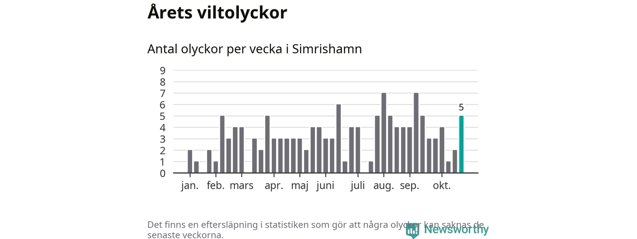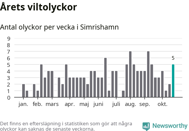 Hittills har fem viltolyckor rapporterats in i Simrishamns kommun från vecka 44. Se listan här.