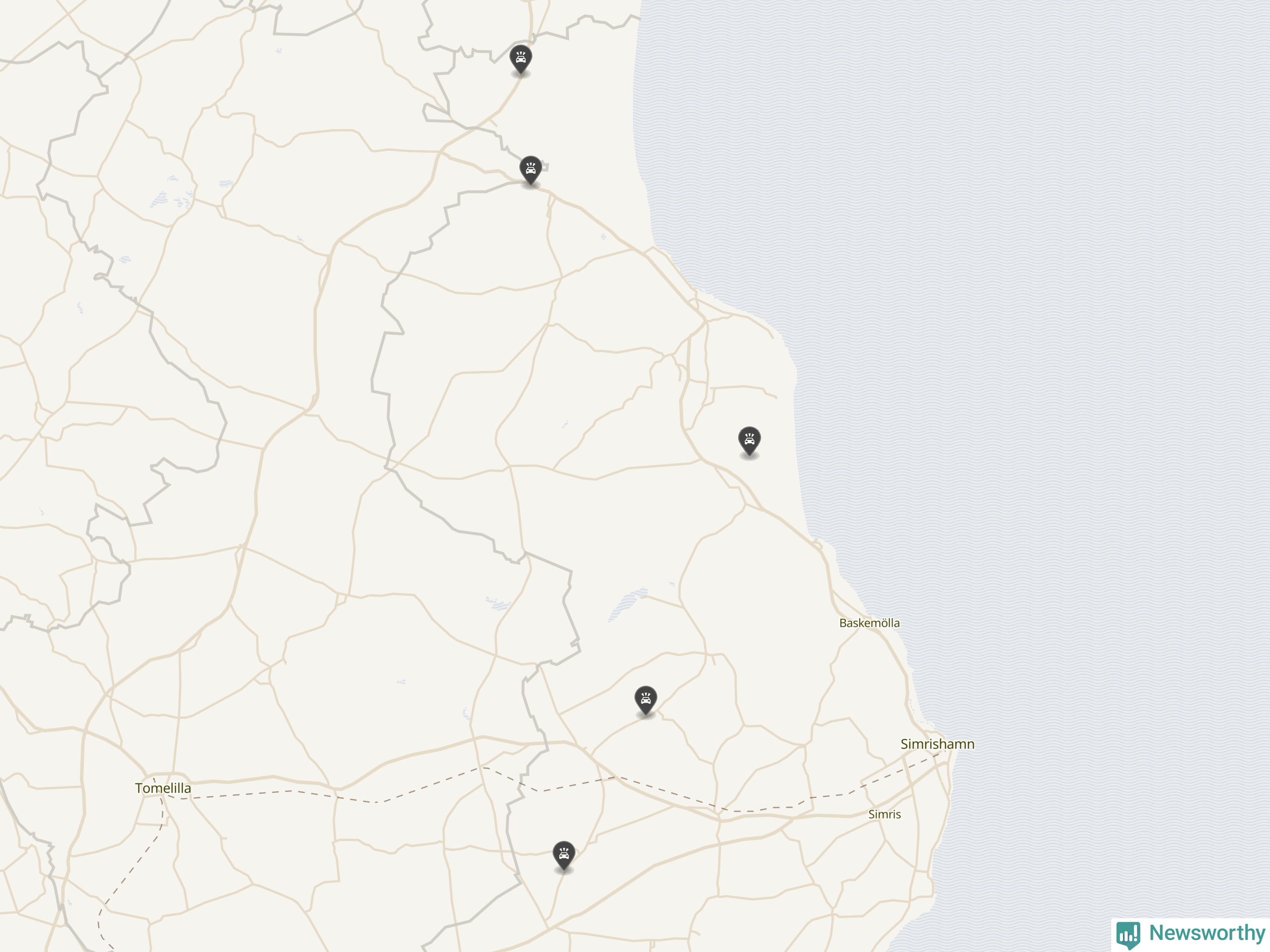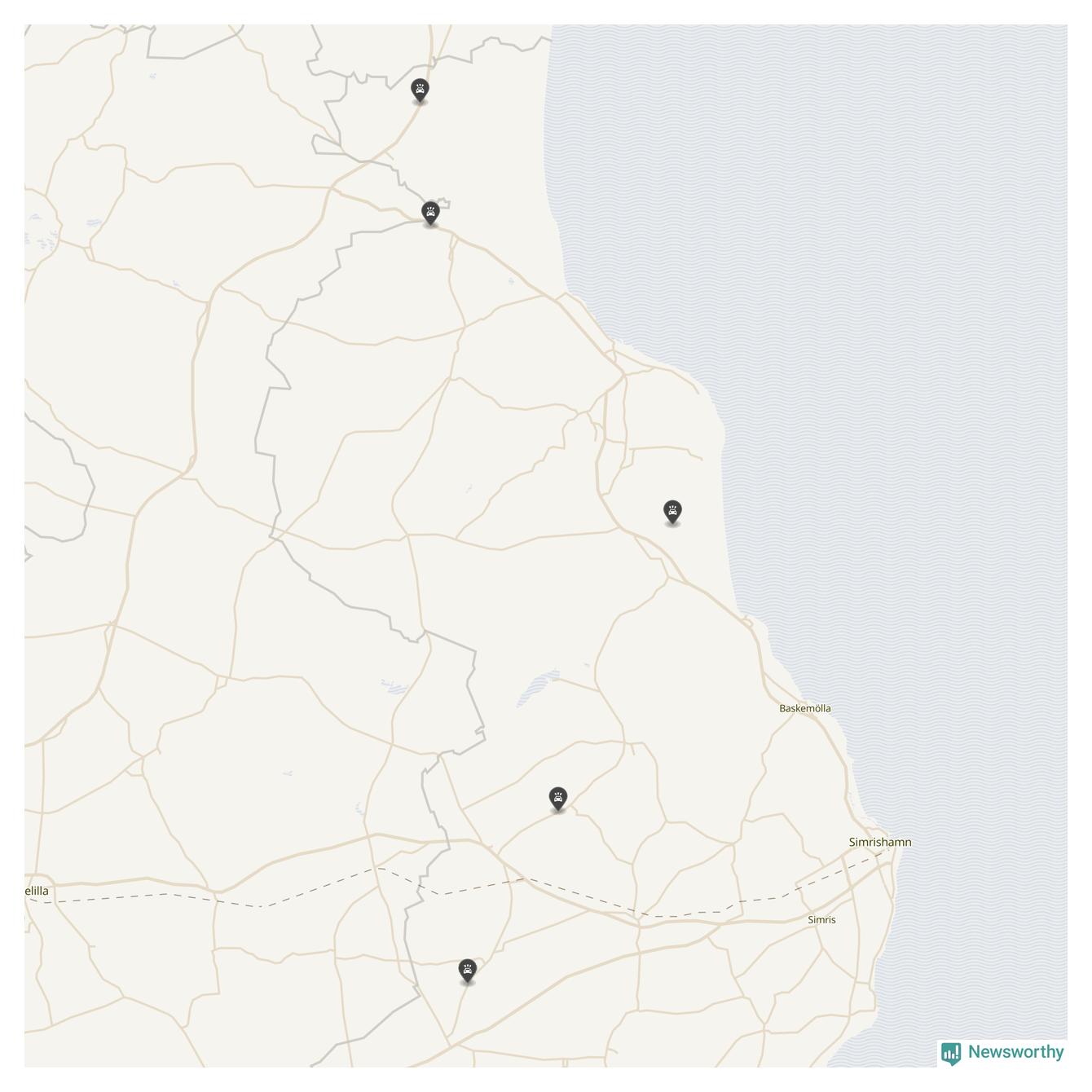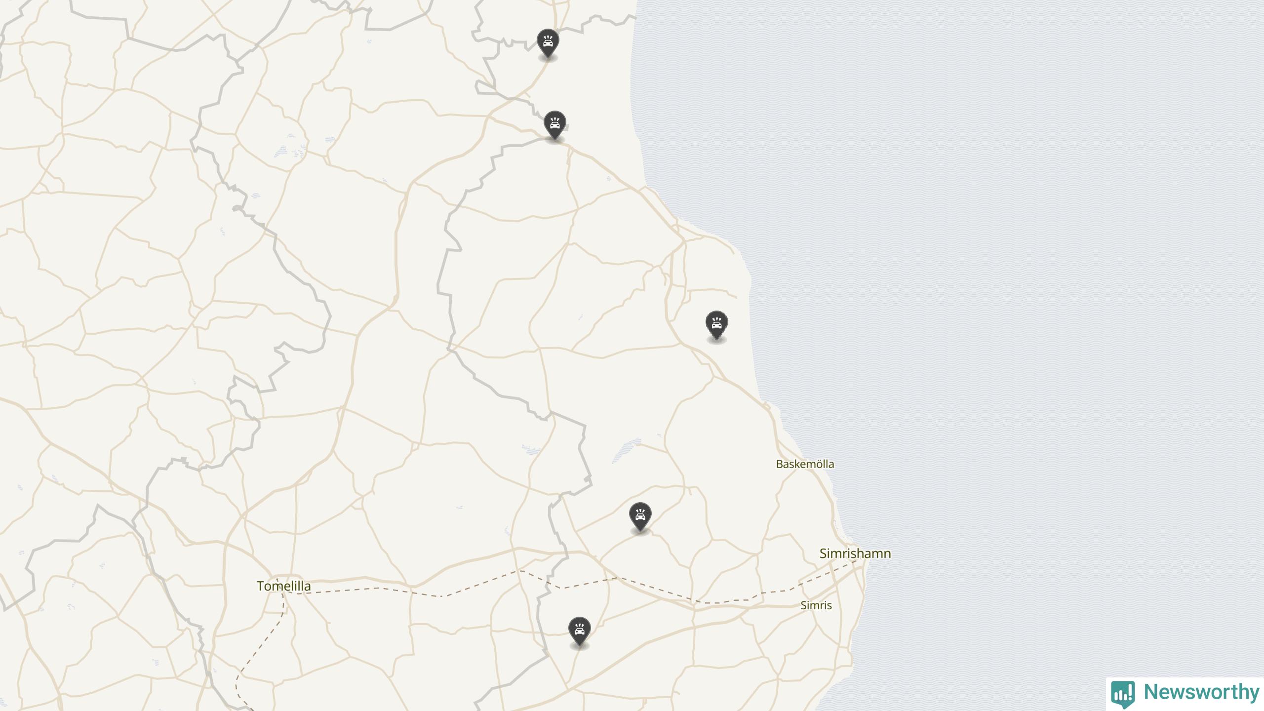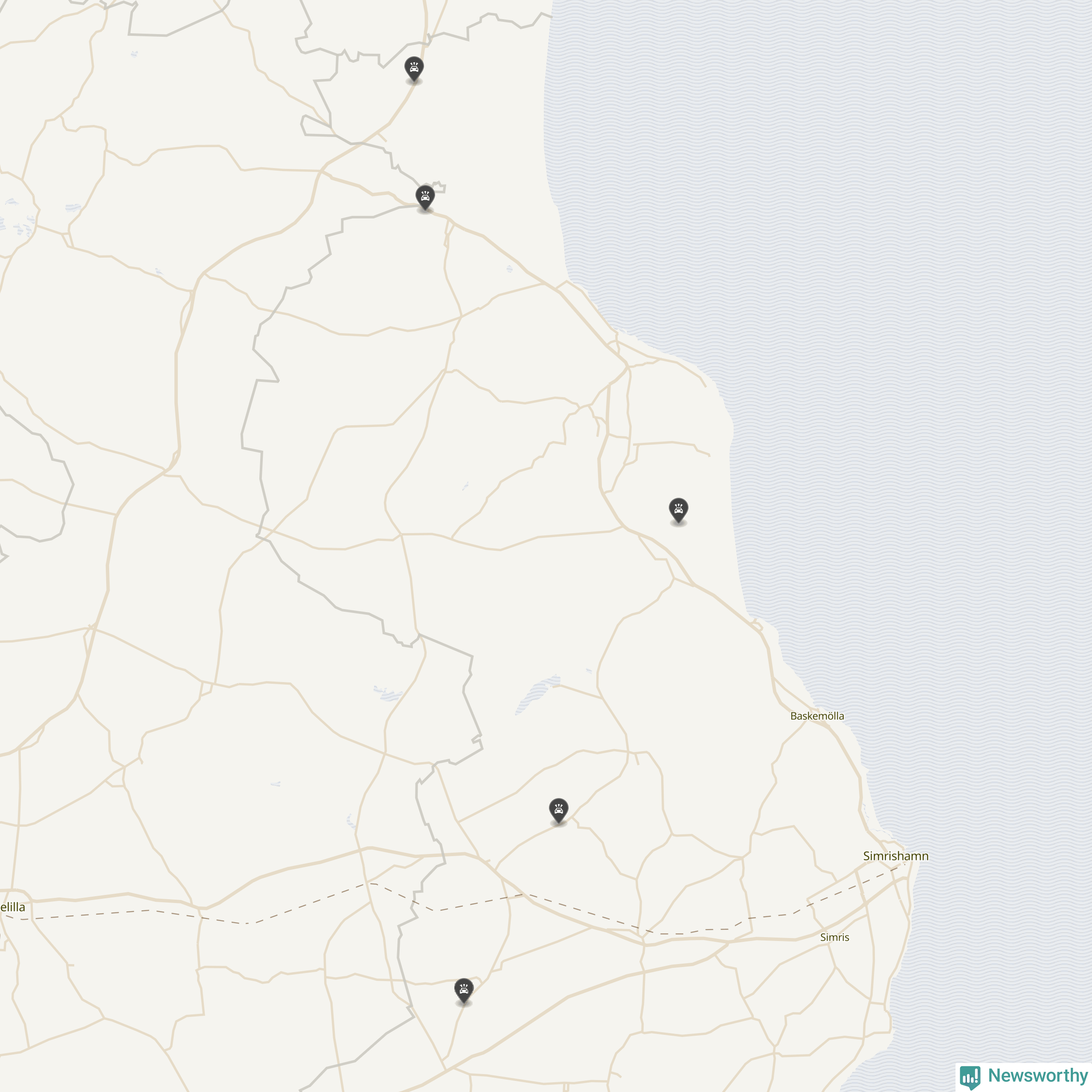 Karta: Förra veckans viltolyckor i Simrishamn