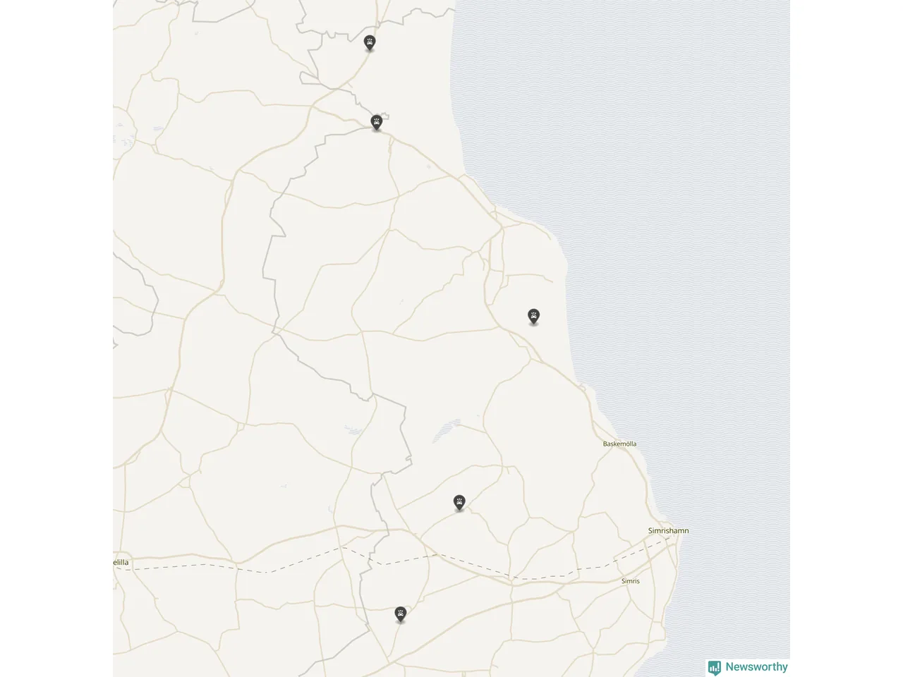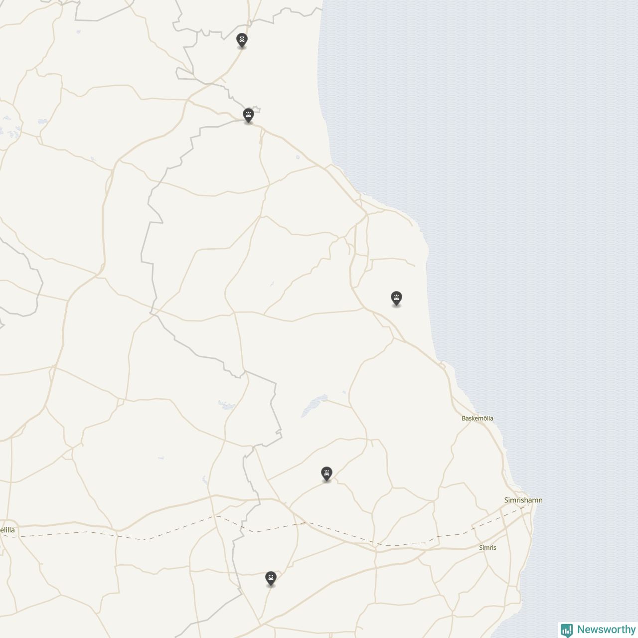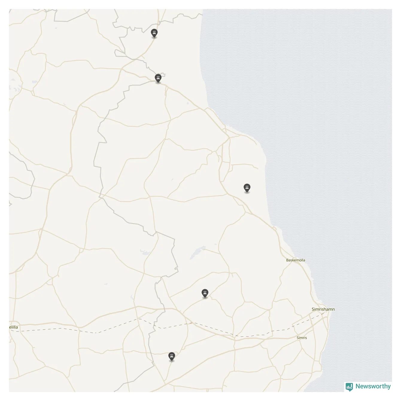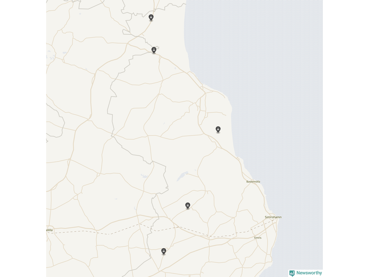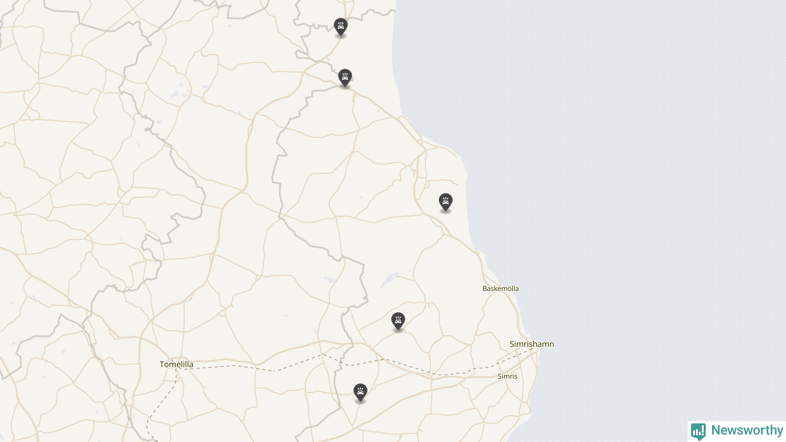 Karta: Förra veckans viltolyckor i Simrishamn