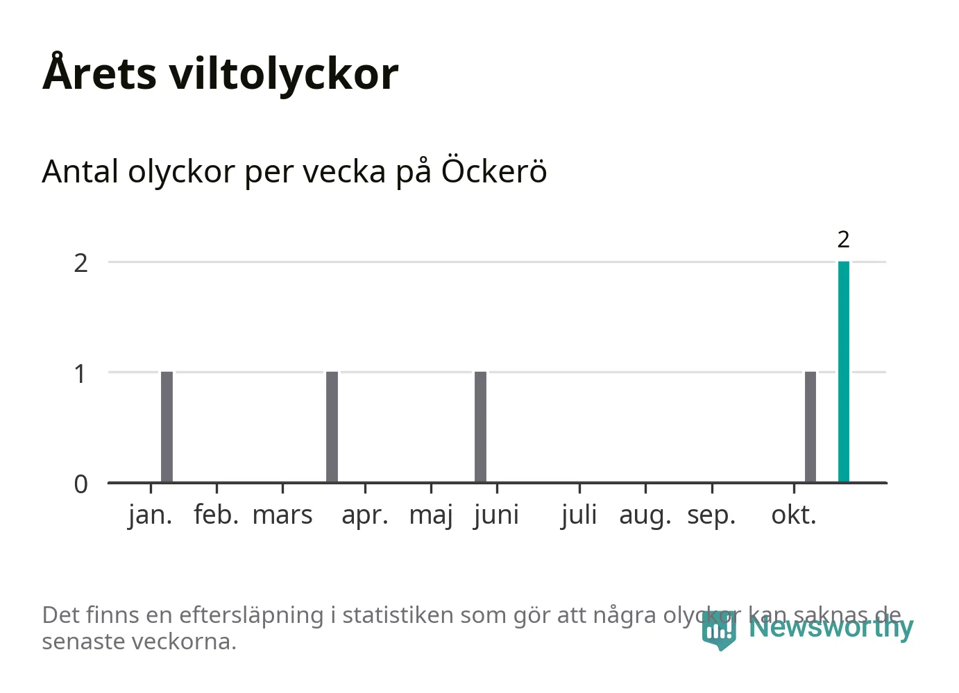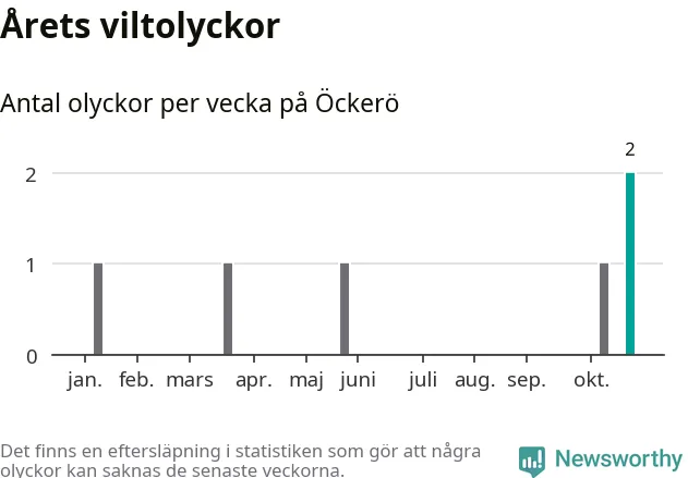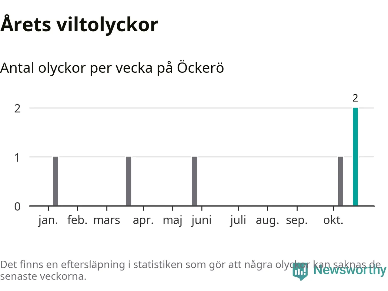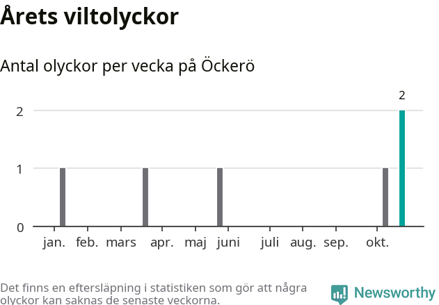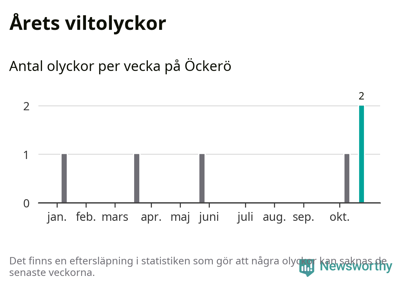 Hittills har två viltolyckor rapporterats in i Öckerö kommun från vecka 44. Se listan här.