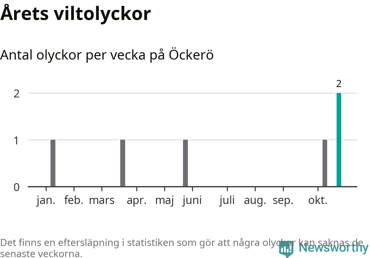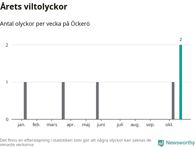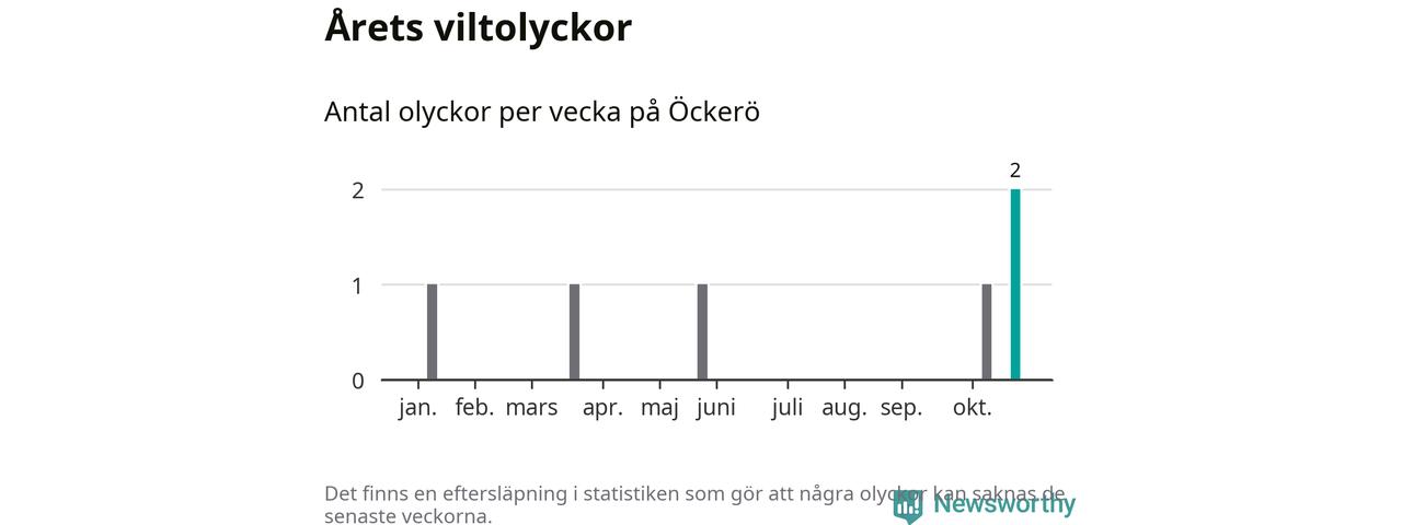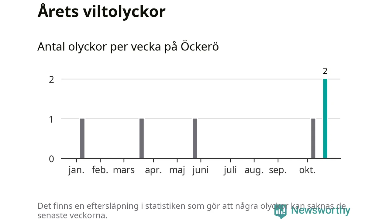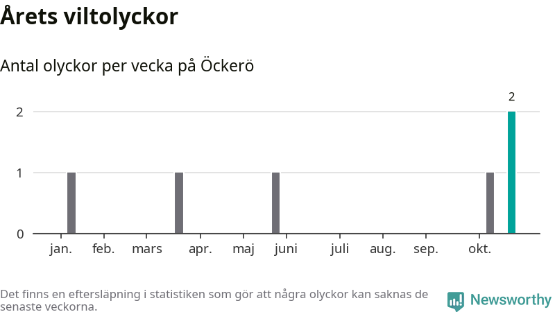 Hittills har två viltolyckor rapporterats in i Öckerö kommun från vecka 44. Se listan här.