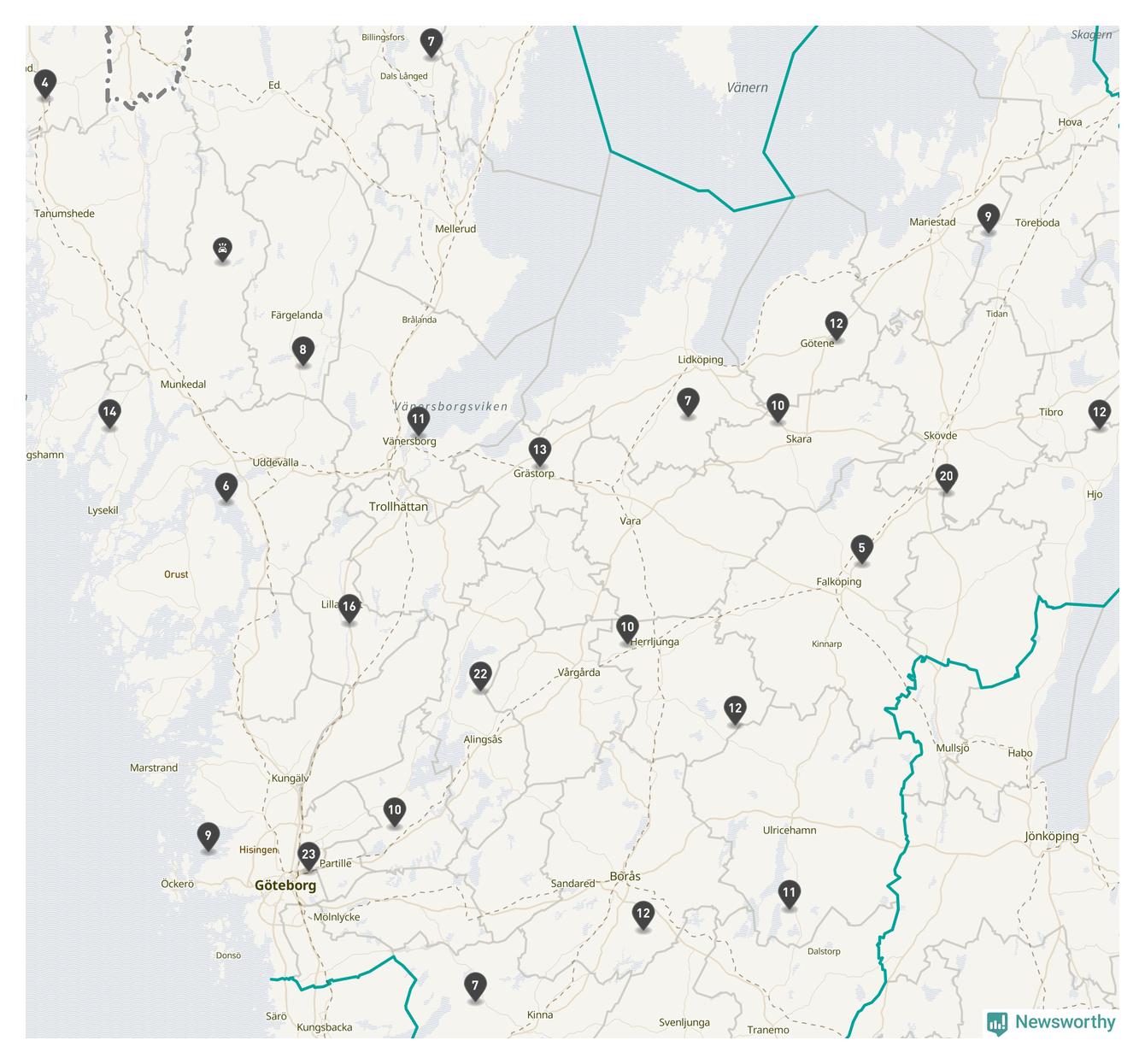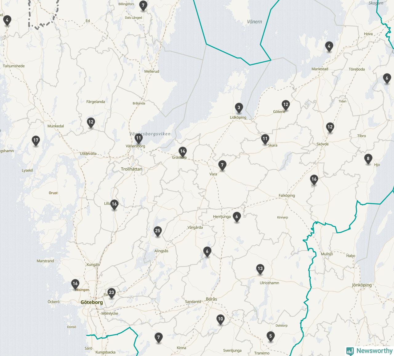 Karta: Förra veckans viltolyckor i Västra Götaland