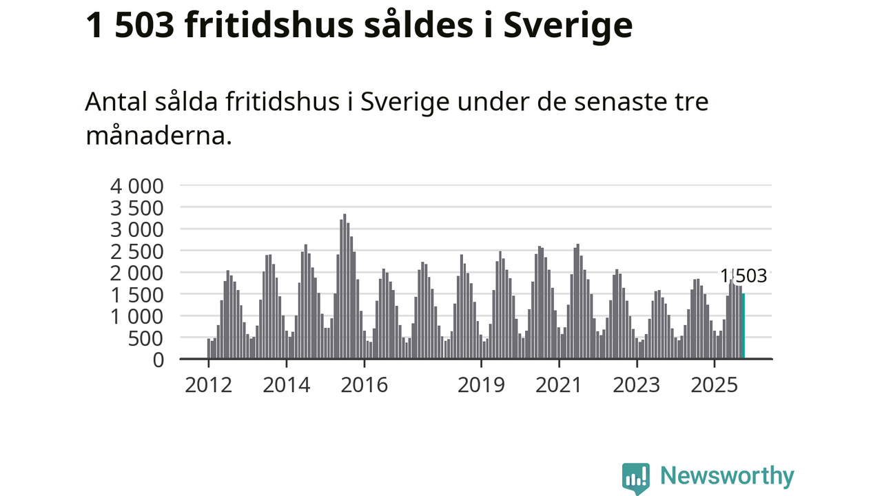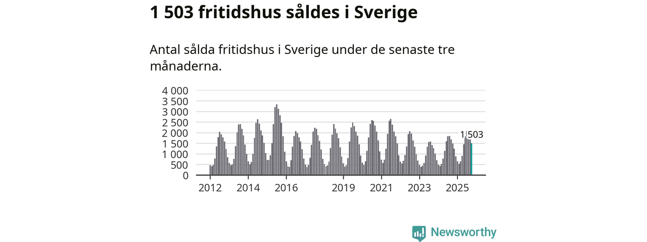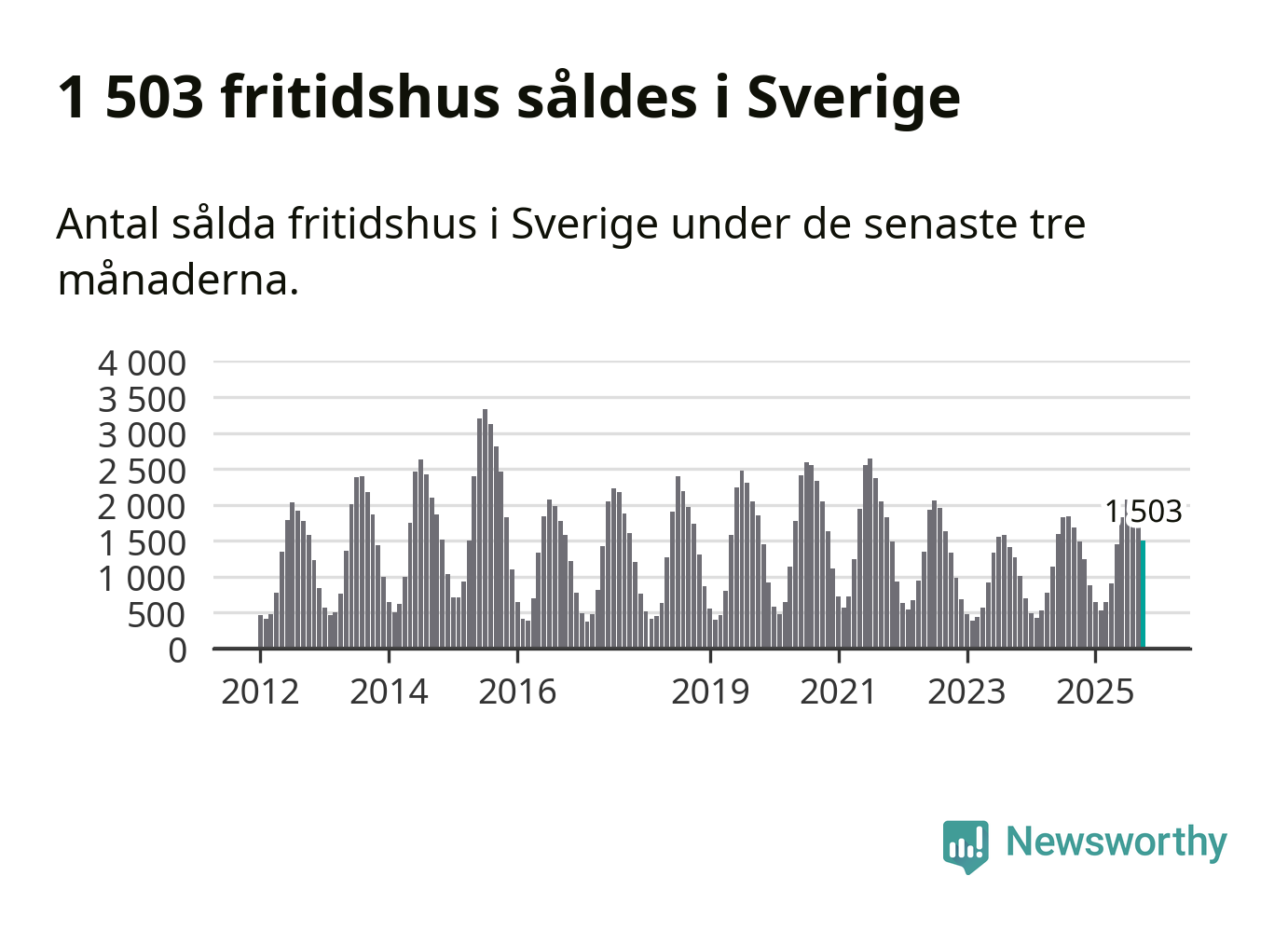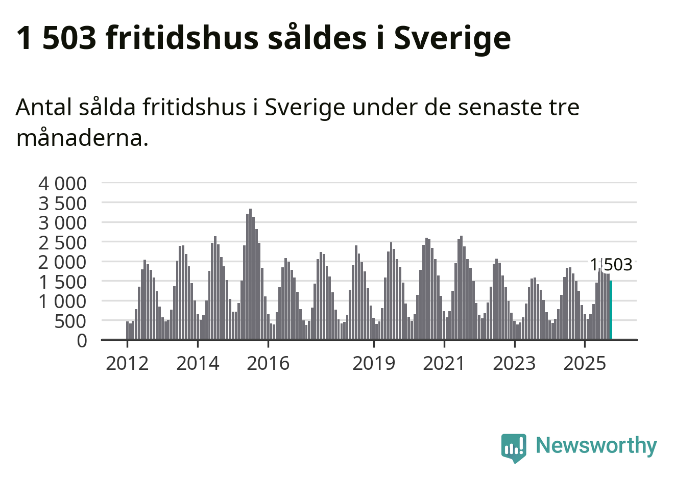 Sammanlagt såldes 1 503 fritidshus i Sverige mellan augusti och oktober till ett genomsnittligt pris på 2,4 miljoner kronor. I fjol gjordes 1 487 affärer vid den här tiden på året.