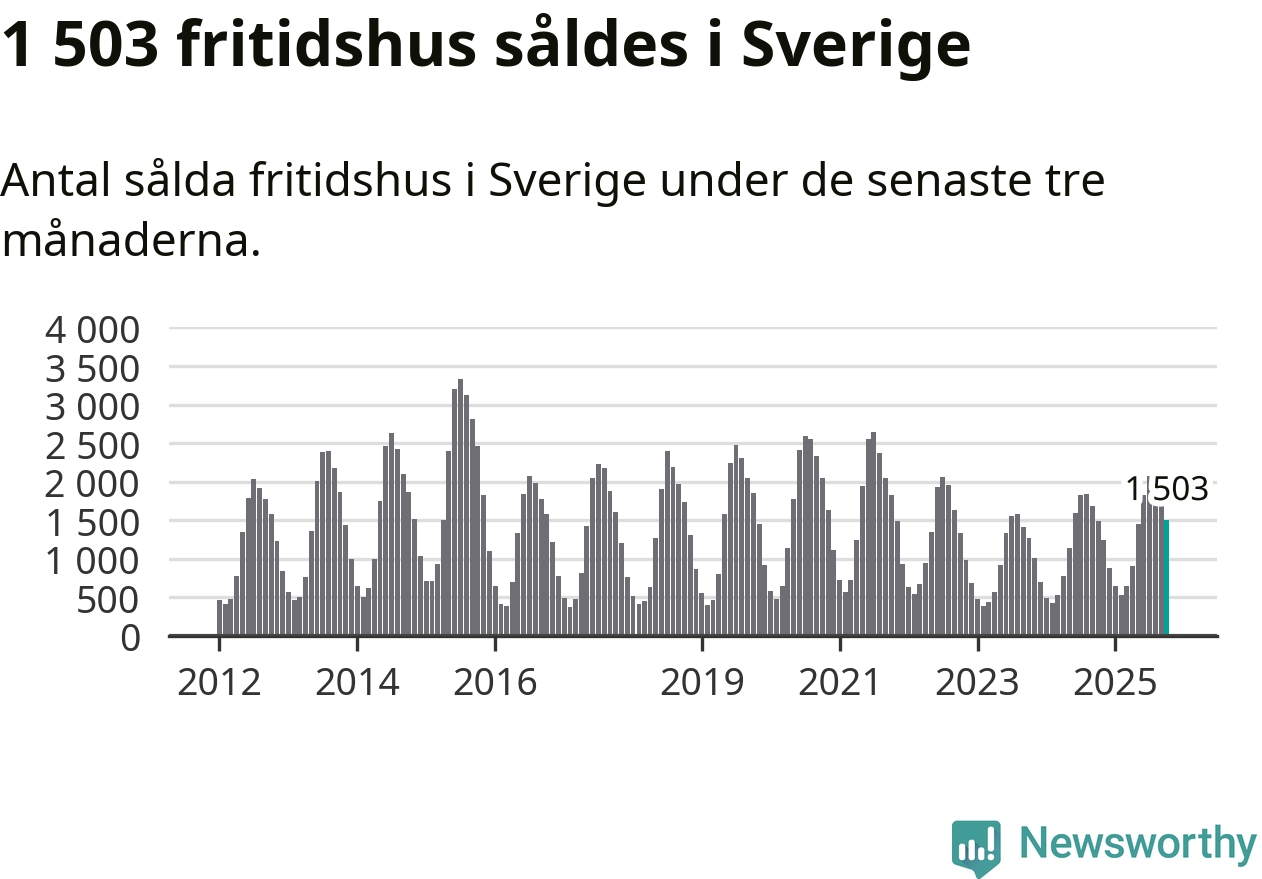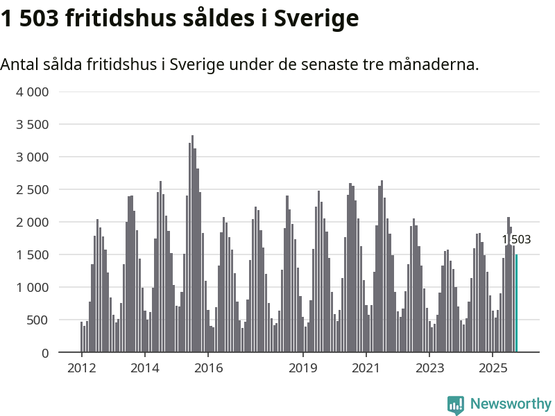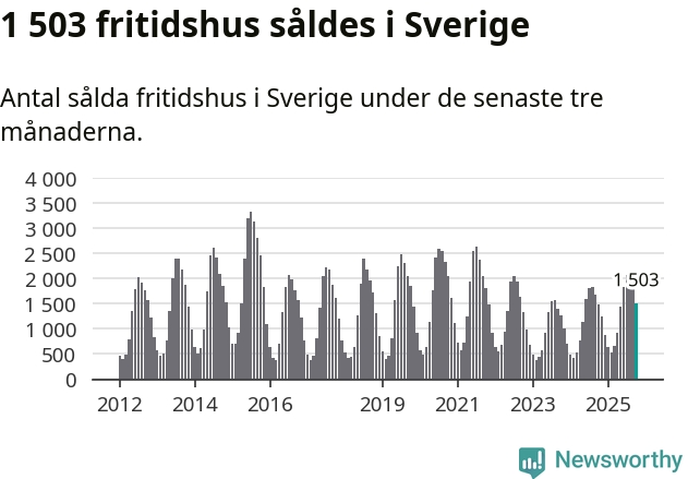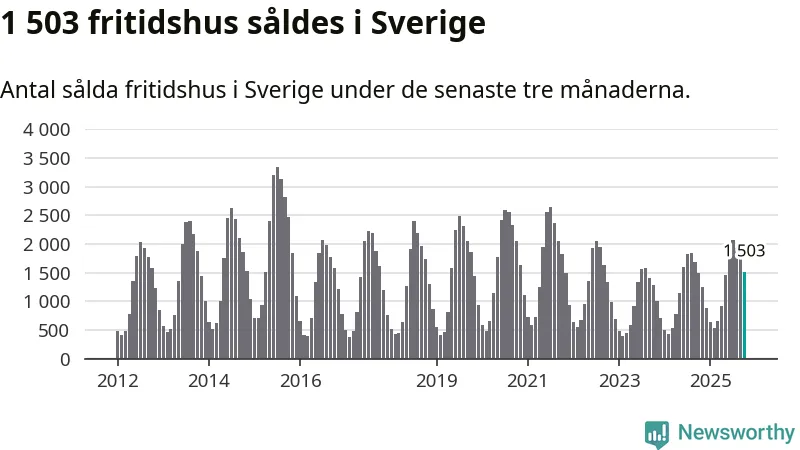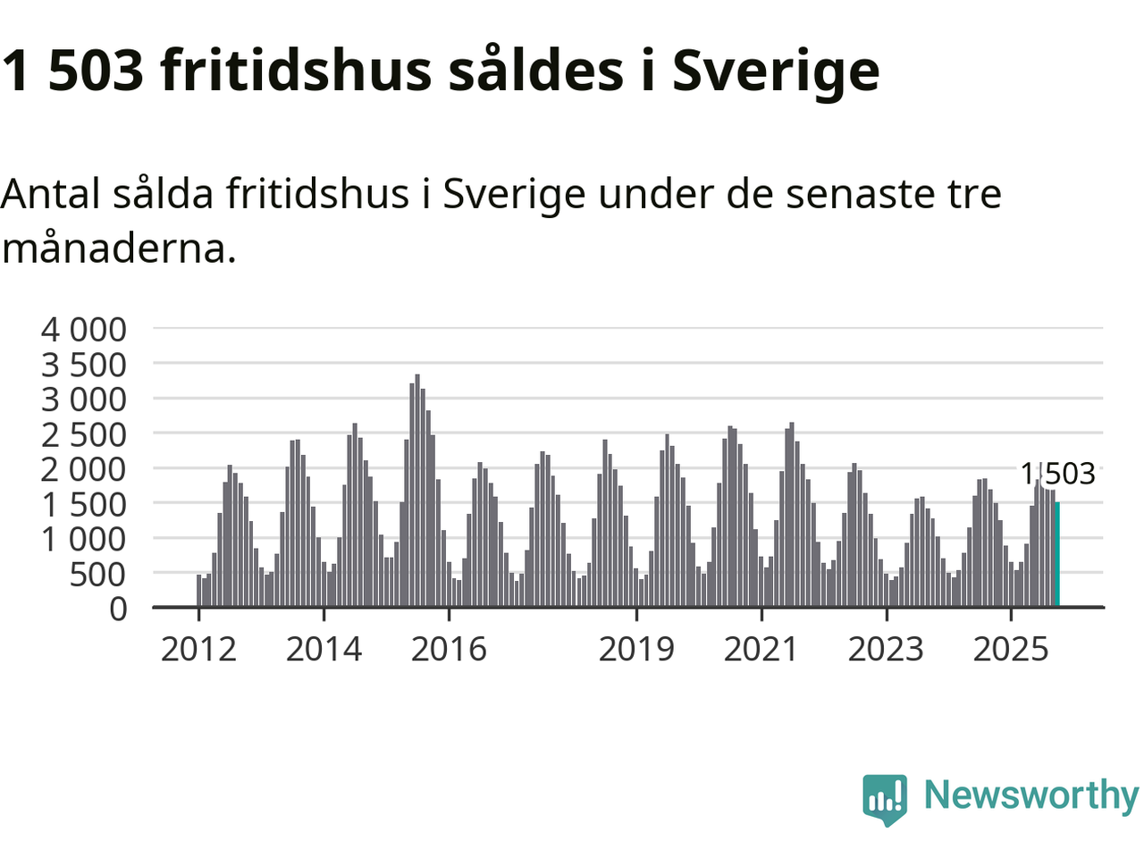 Sammanlagt såldes 1 503 fritidshus i Sverige mellan augusti och oktober till ett genomsnittligt pris på 2,4 miljoner kronor. I fjol gjordes 1 487 affärer vid den här tiden på året.