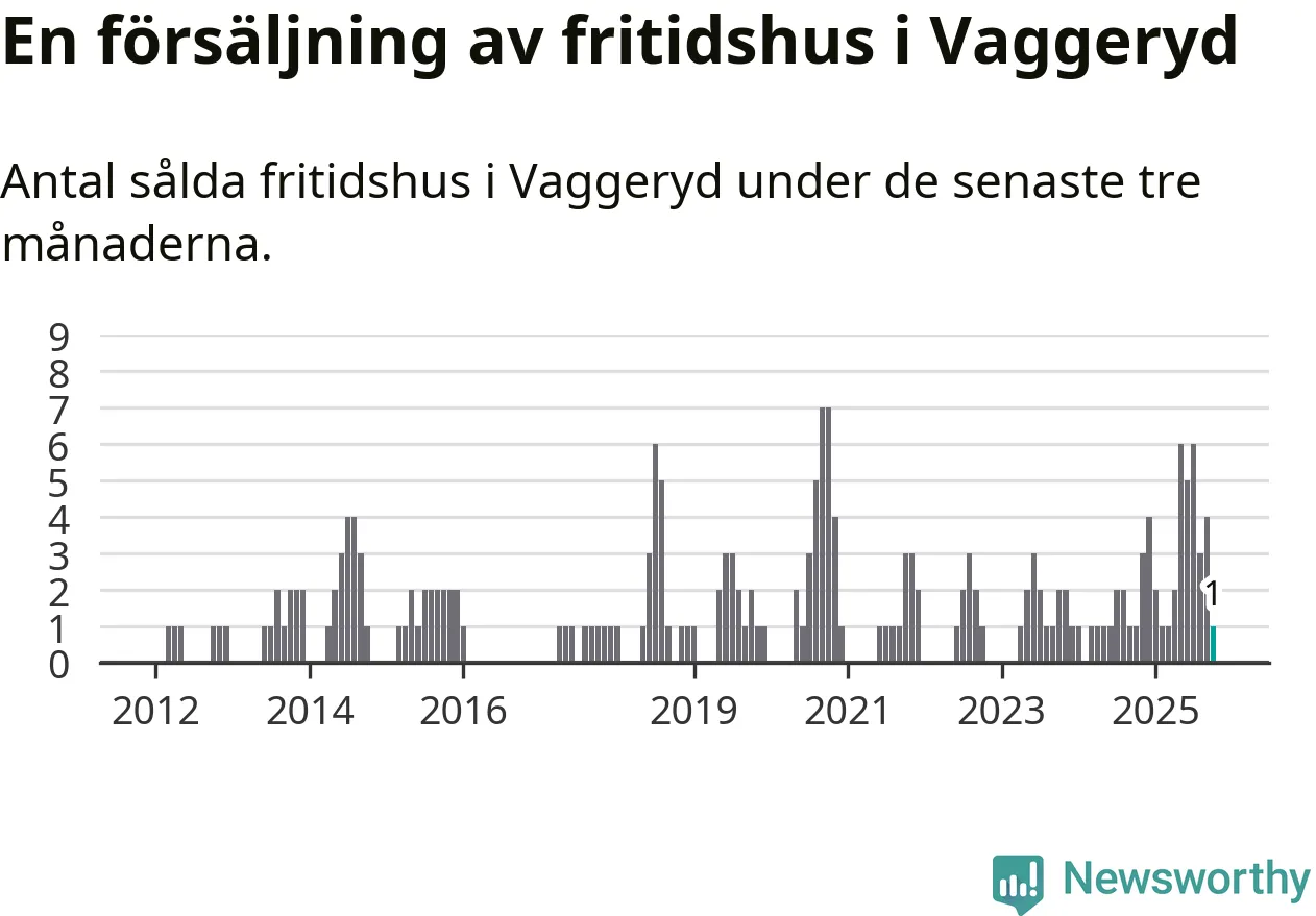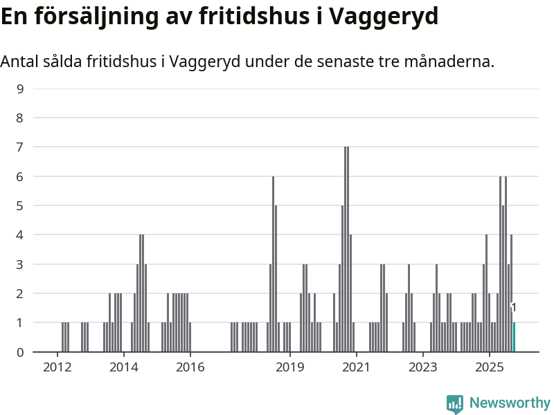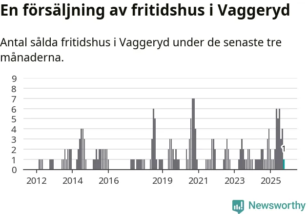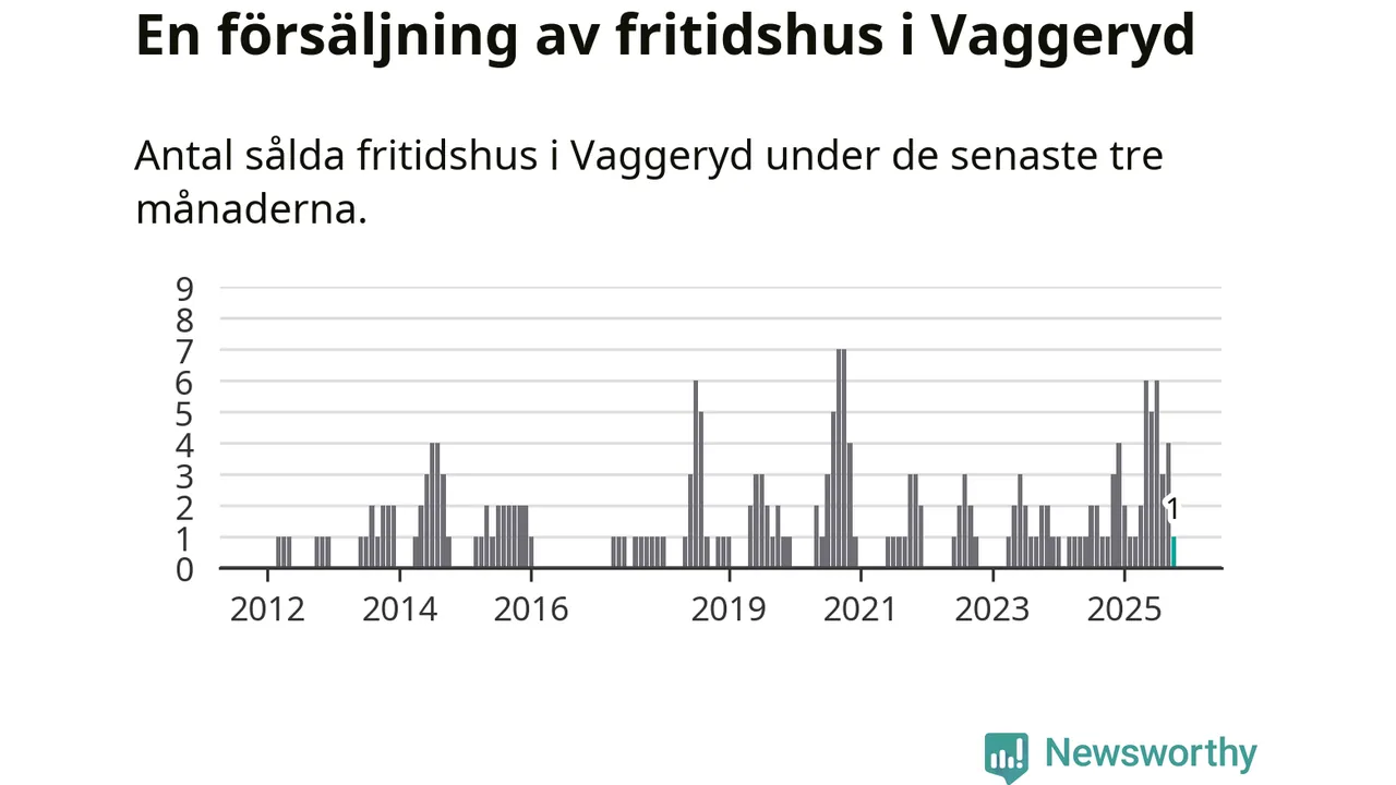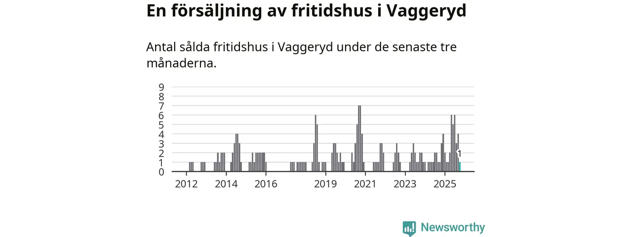 Mellan augusti och oktober gjordes sammanlagt en affär med fritidshus i Vaggeryds kommun. Det är lika många affärer som vid motsvarande tid i fjol.