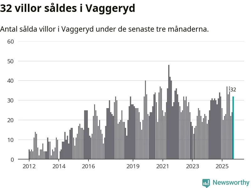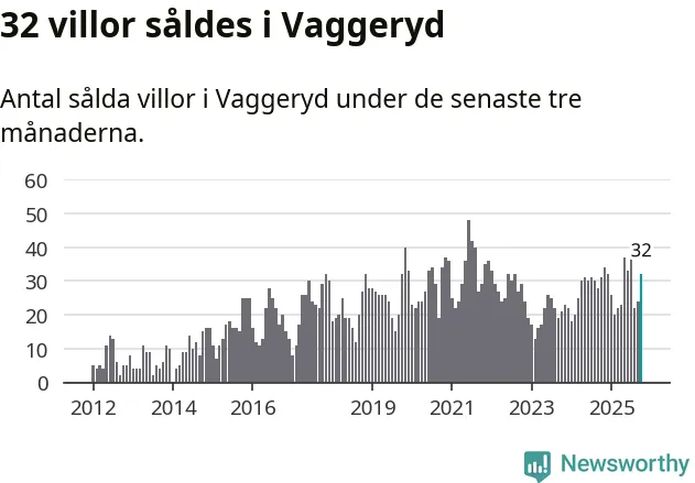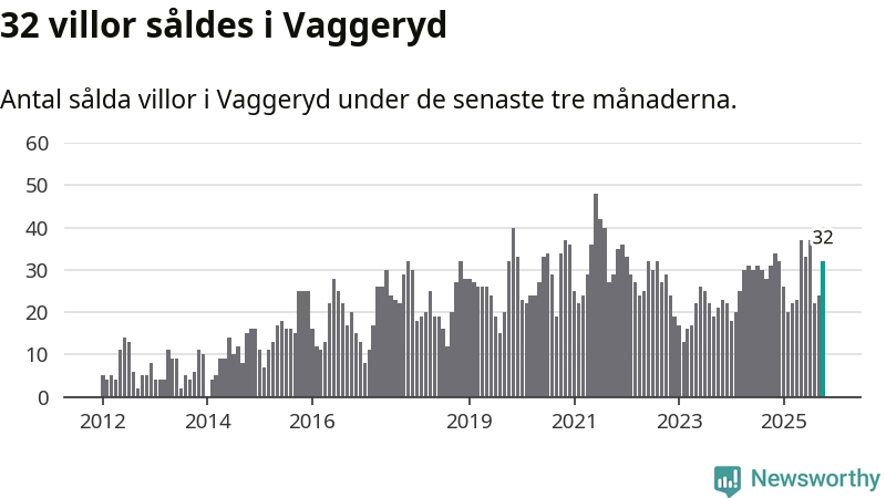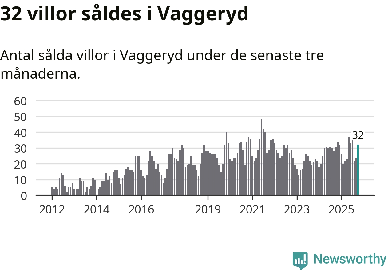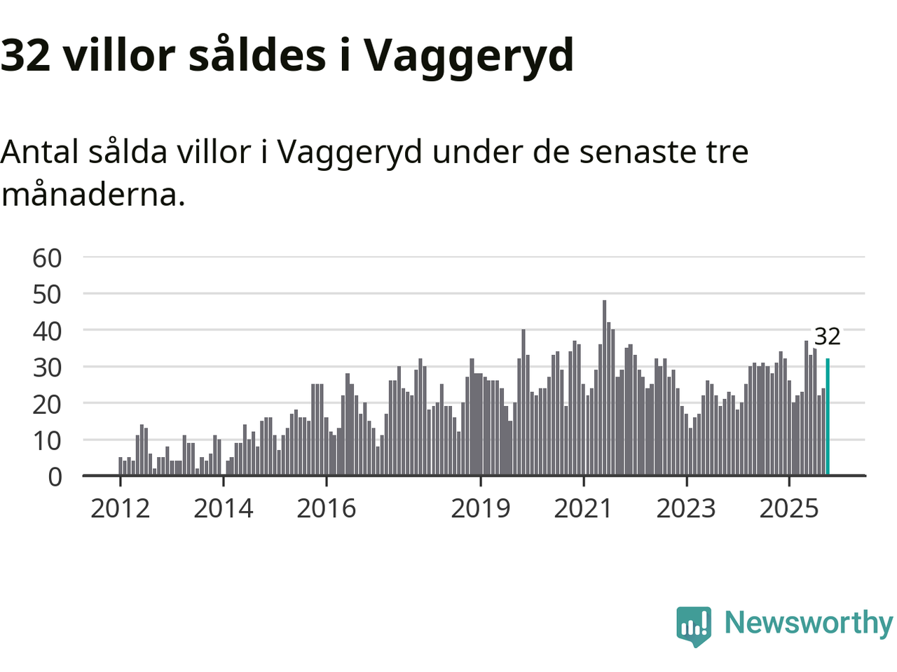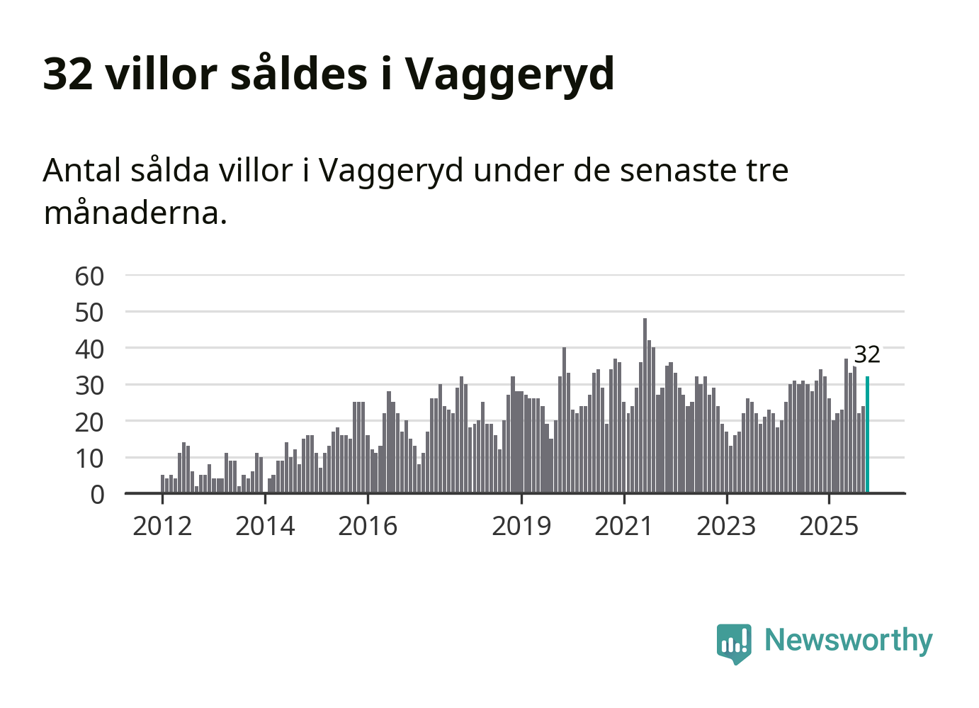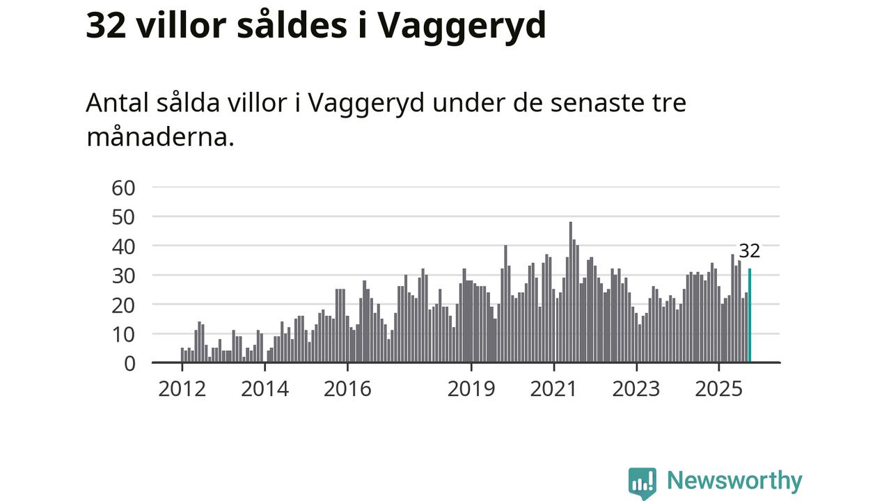 Mellan augusti och oktober gjordes sammanlagt 32 affärer med villor i Vaggeryds kommun. Det kan jämföras med 31 vid motsvarande tid i fjol.