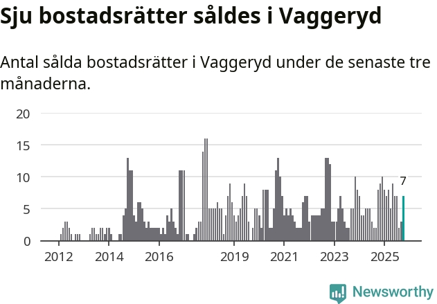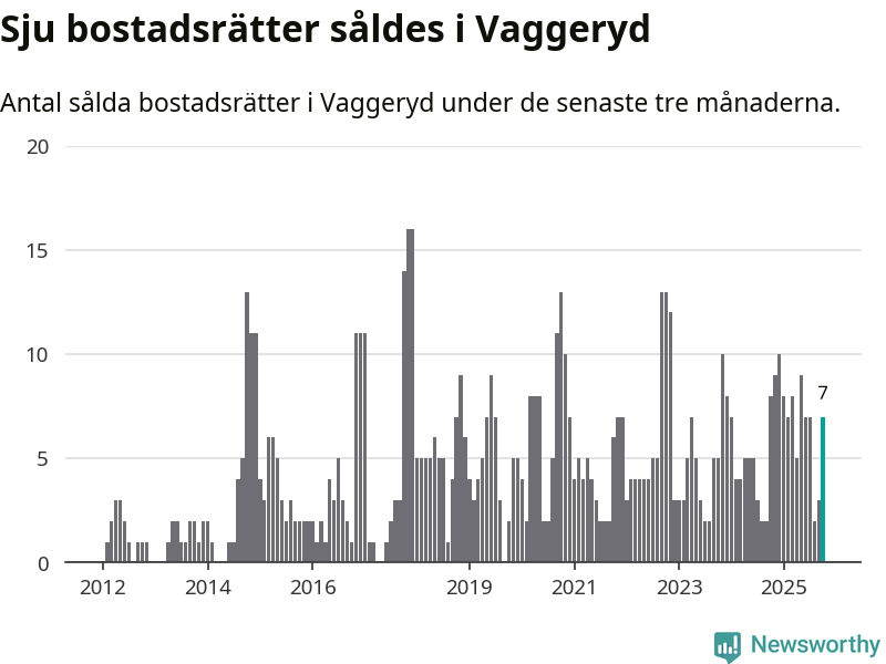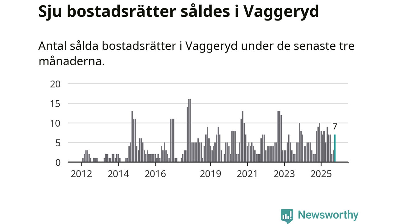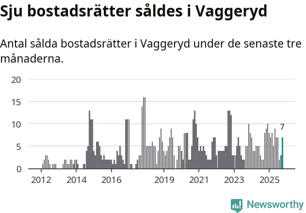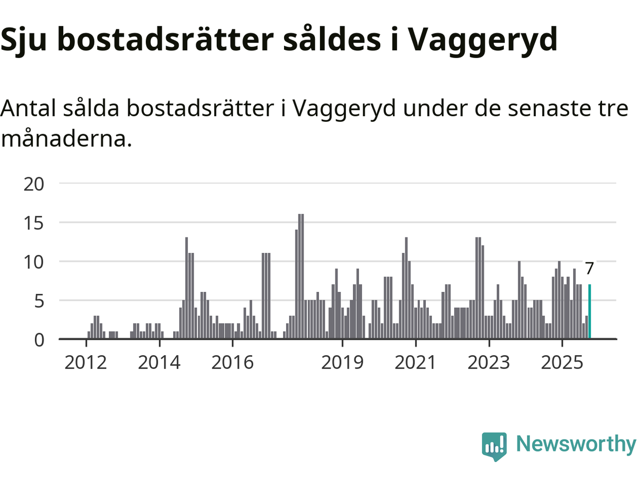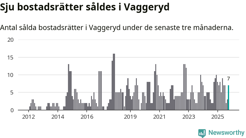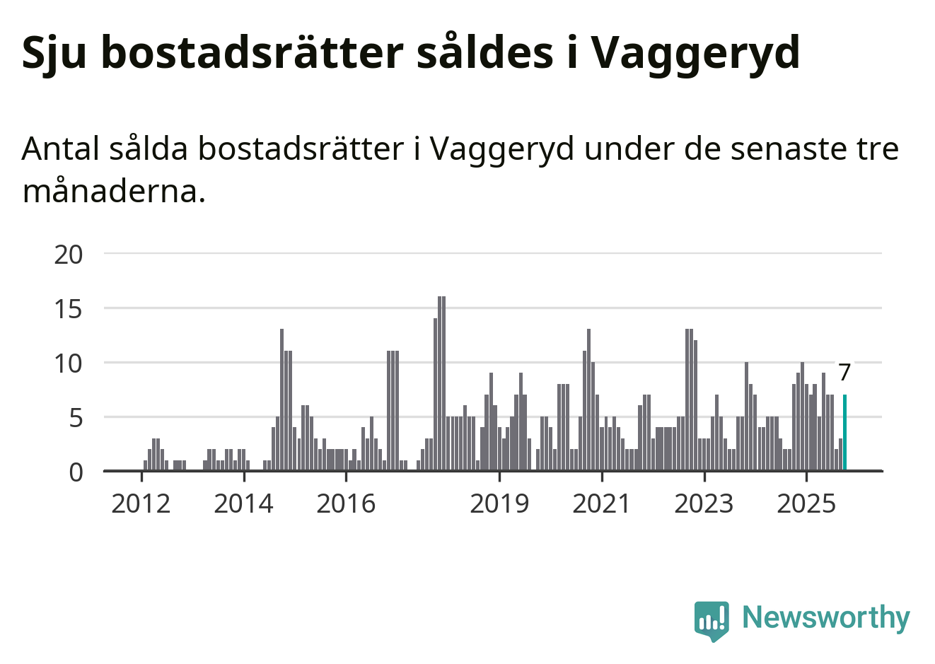 Mellan augusti och oktober gjordes sammanlagt sju affärer med bostadsrätter i Vaggeryds kommun. Det kan jämföras med åtta vid motsvarande tid i fjol.