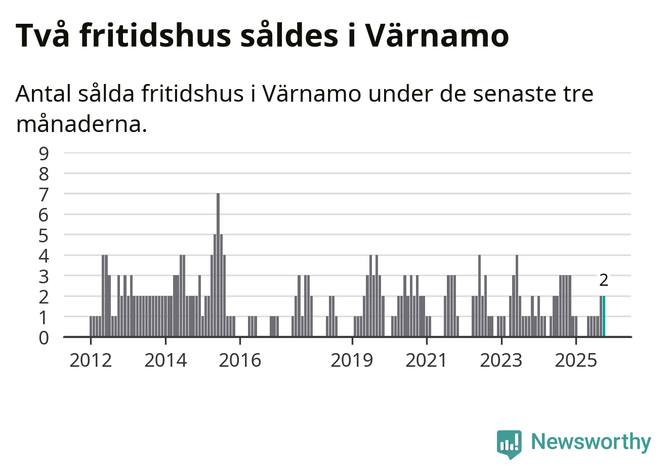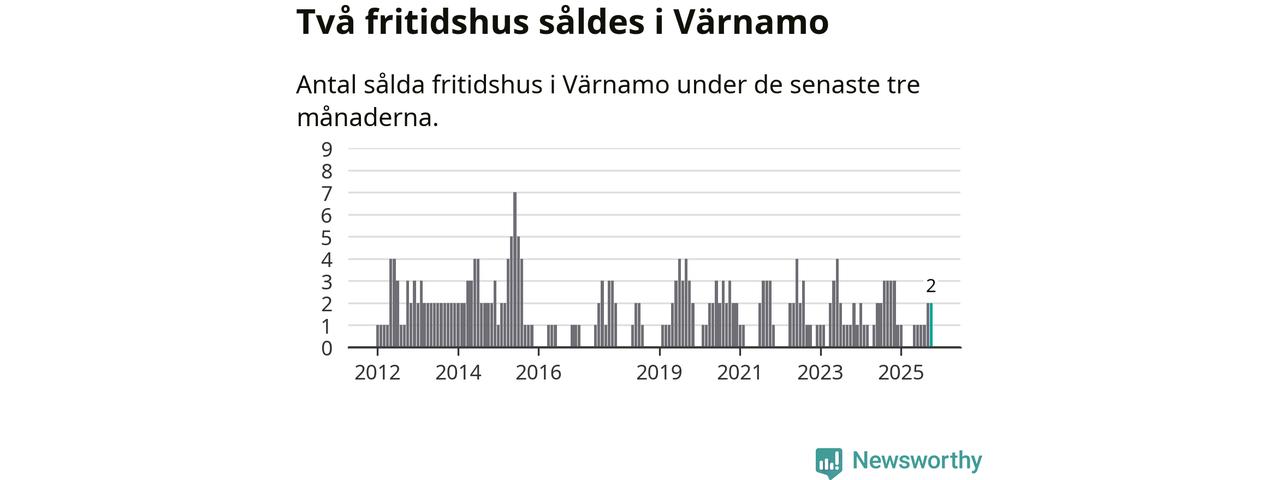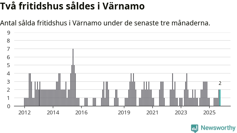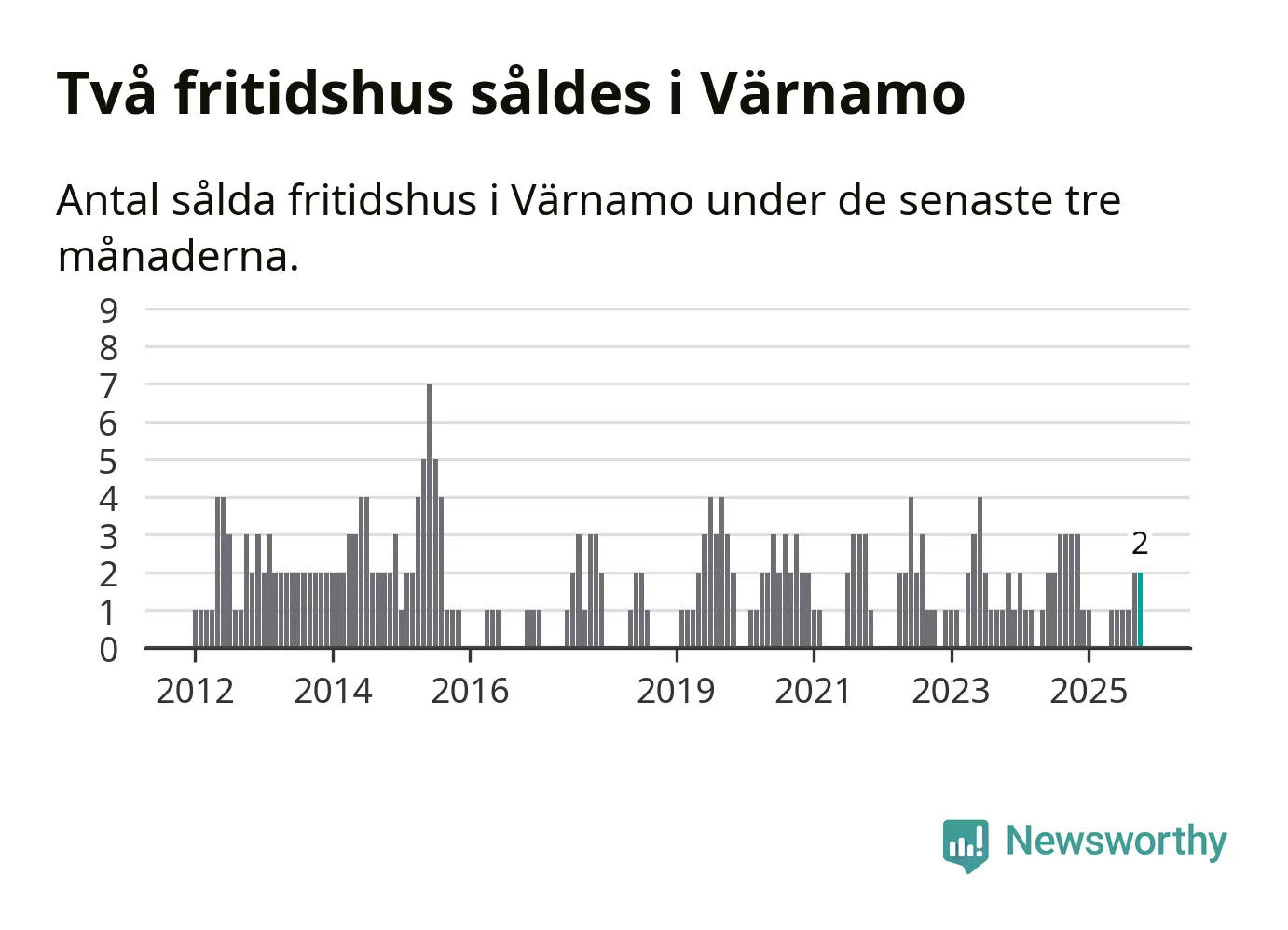 Mellan augusti och oktober gjordes sammanlagt två affärer med fritidshus i Värnamo kommun. Det kan jämföras med tre vid motsvarande tid i fjol.
