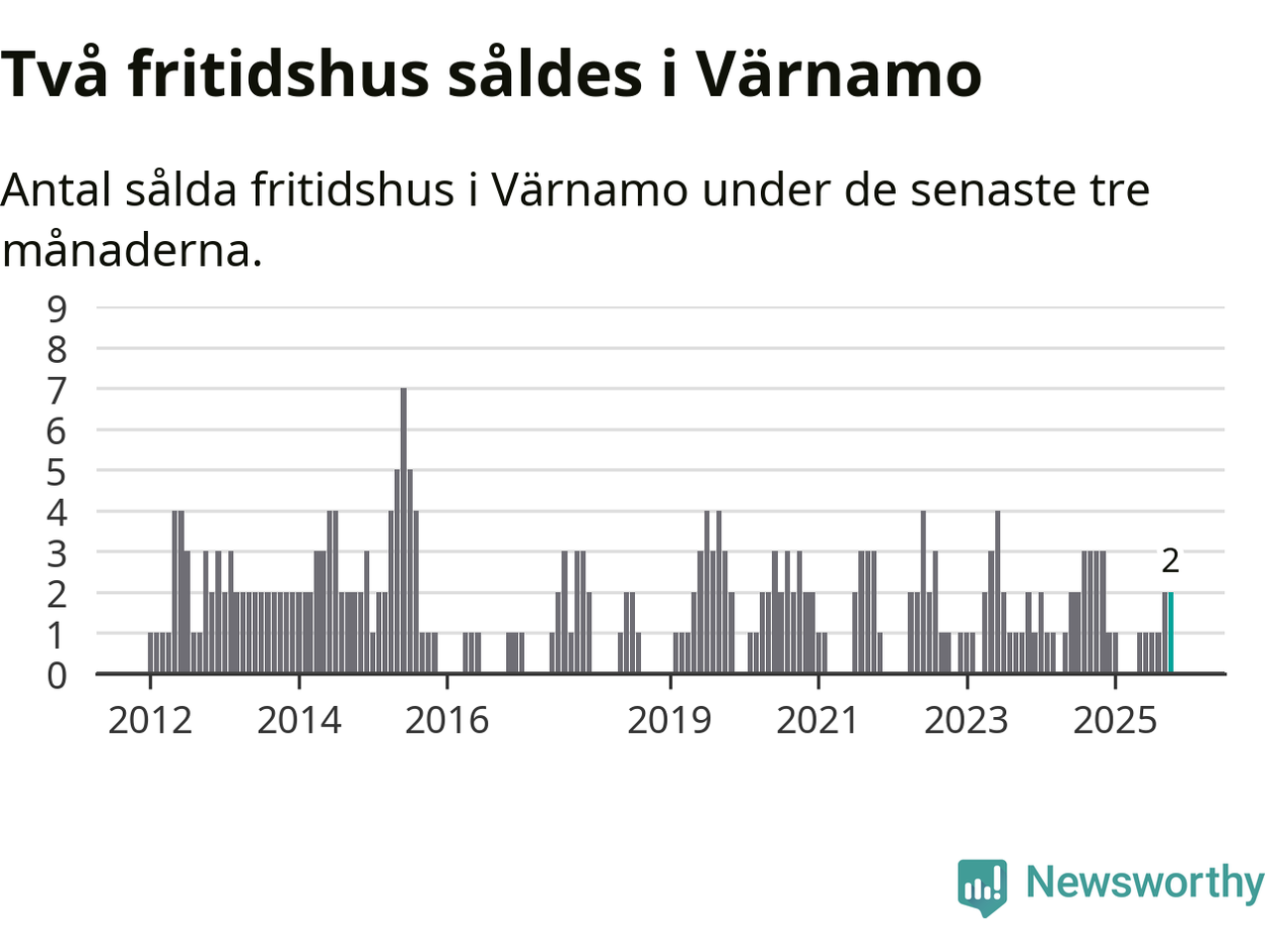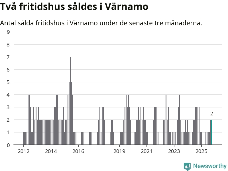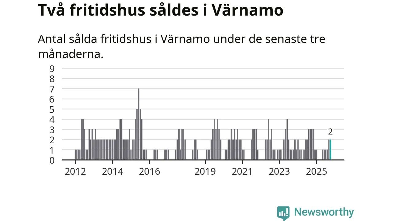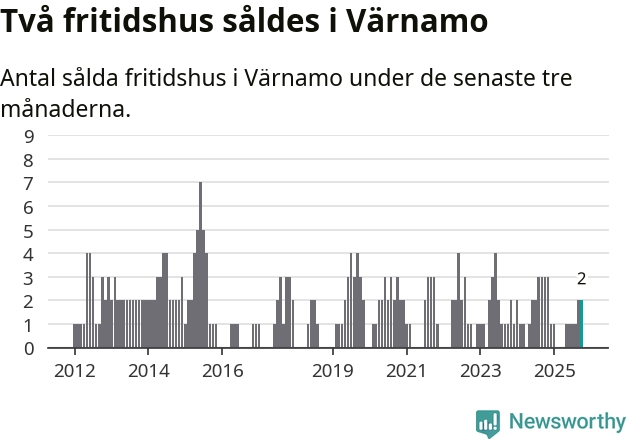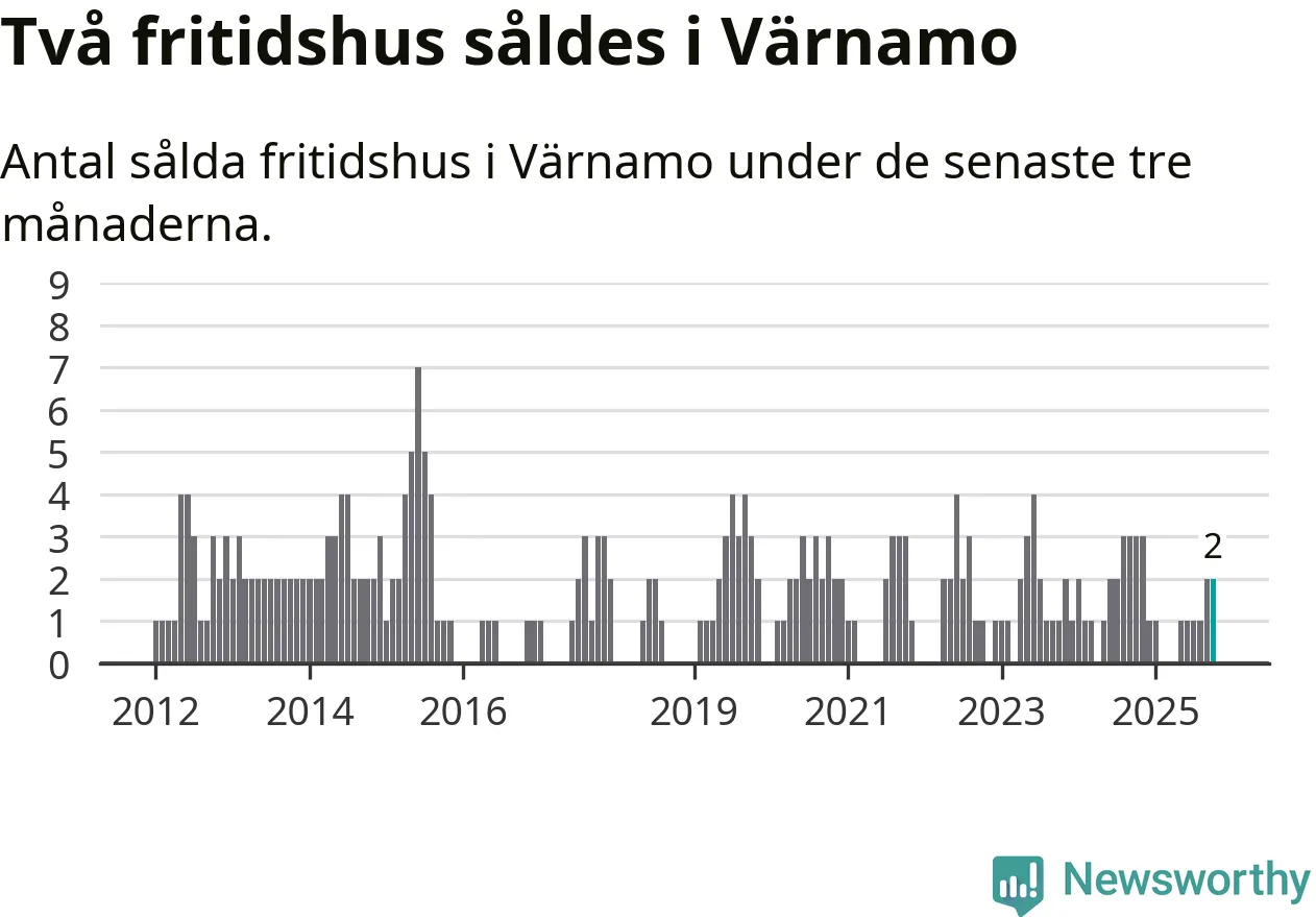 Mellan augusti och oktober gjordes sammanlagt två affärer med fritidshus i Värnamo kommun. Det kan jämföras med tre vid motsvarande tid i fjol.