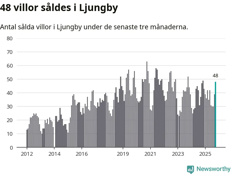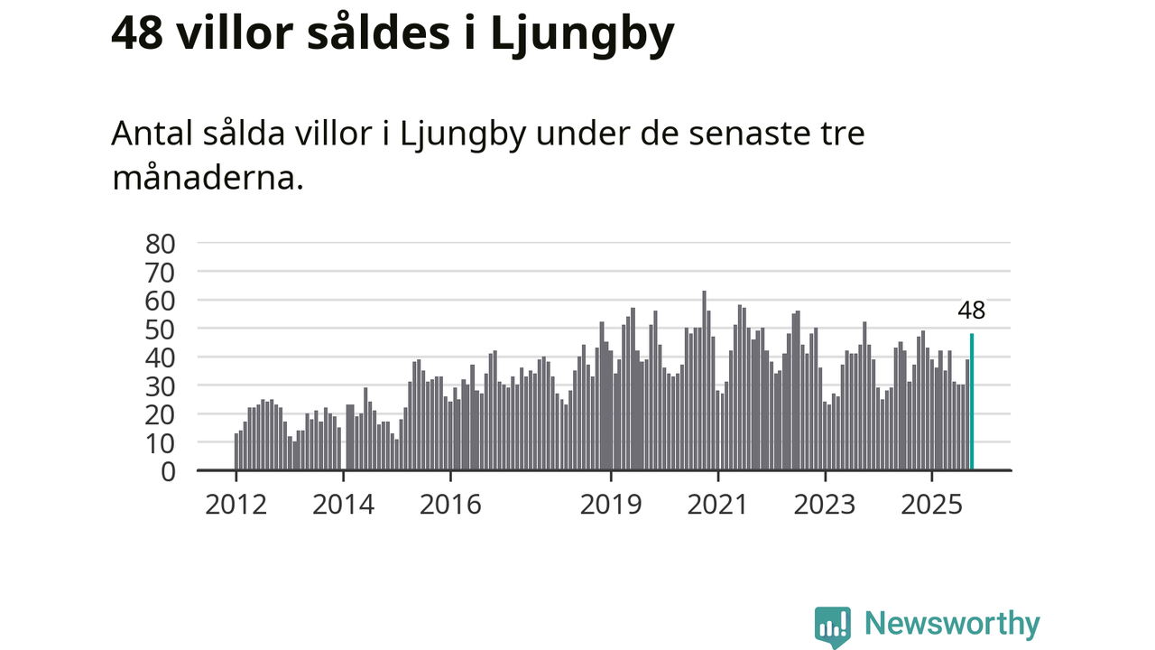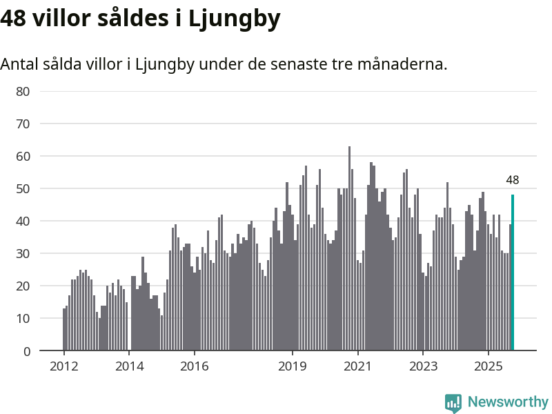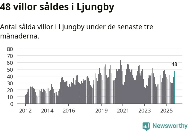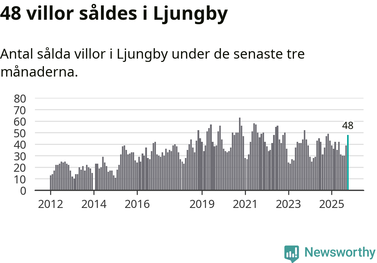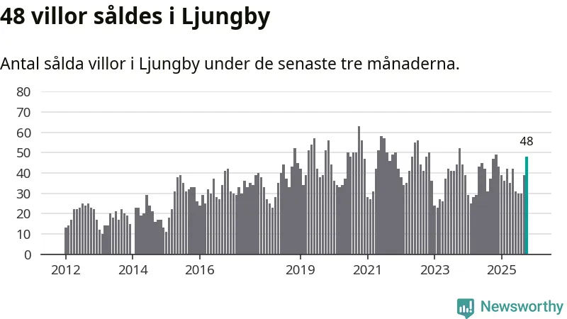 Sammanlagt såldes 48 villor i Ljungby kommun mellan augusti och oktober till ett genomsnittligt pris på 2,0 miljoner kronor. I fjol gjordes 47 affärer vid den här tiden på året.