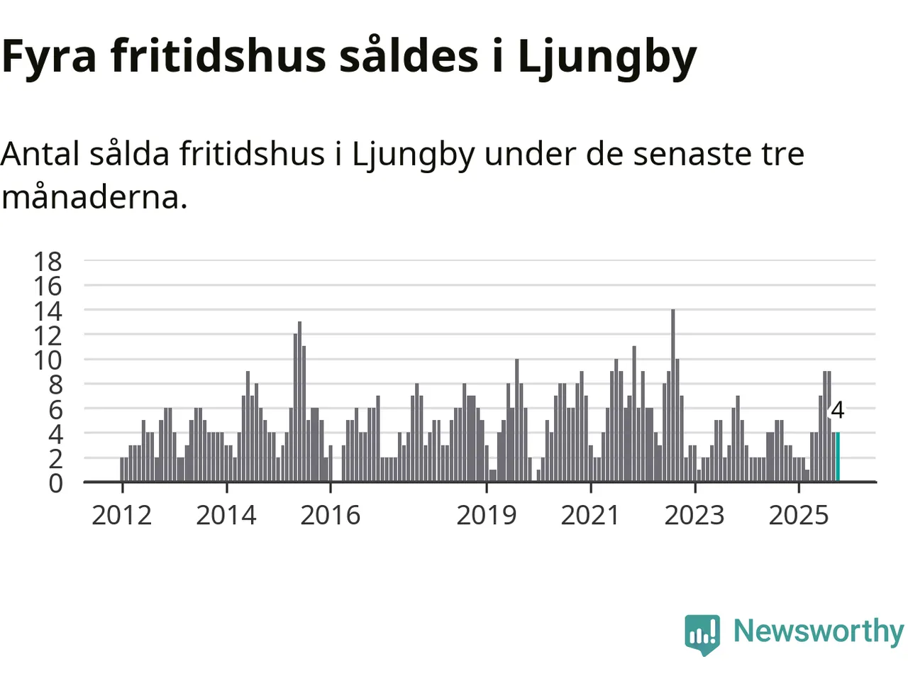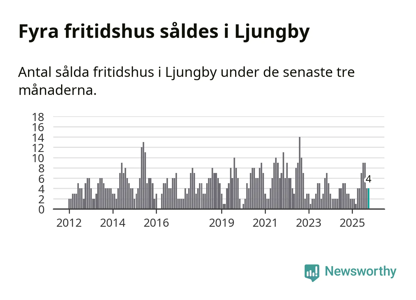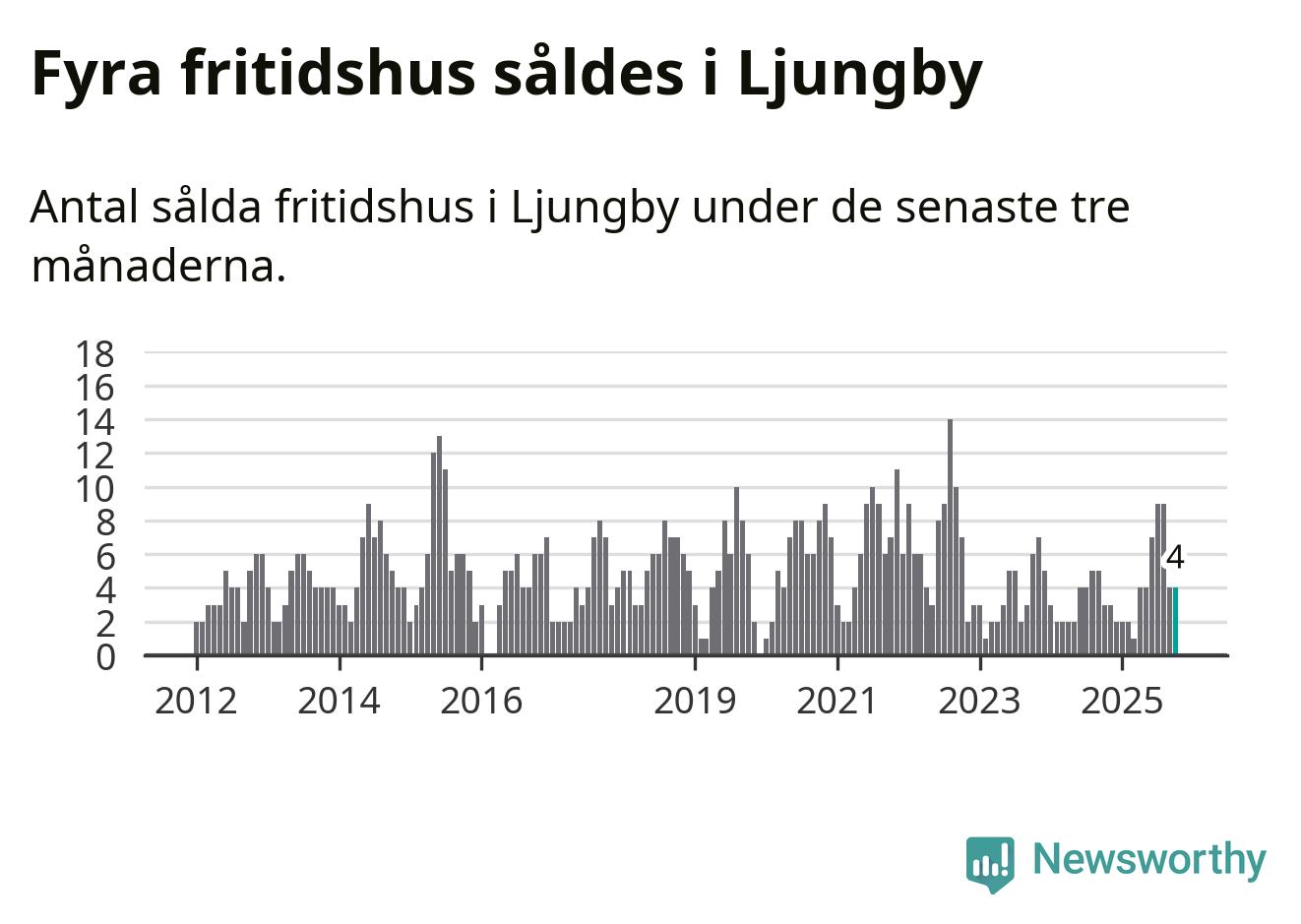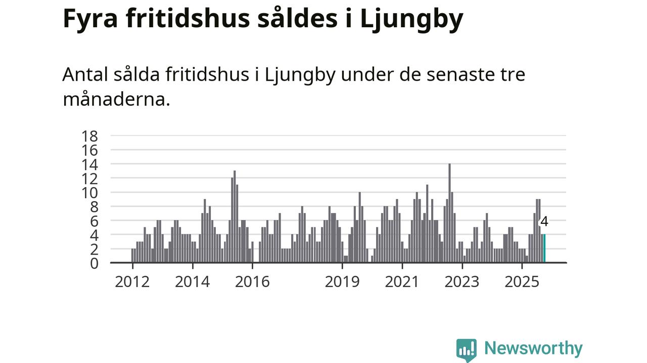 Mellan augusti och oktober gjordes sammanlagt fyra affärer med fritidshus i Ljungby kommun. Det kan jämföras med tre vid motsvarande tid i fjol.