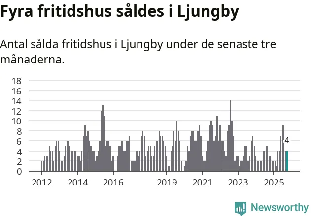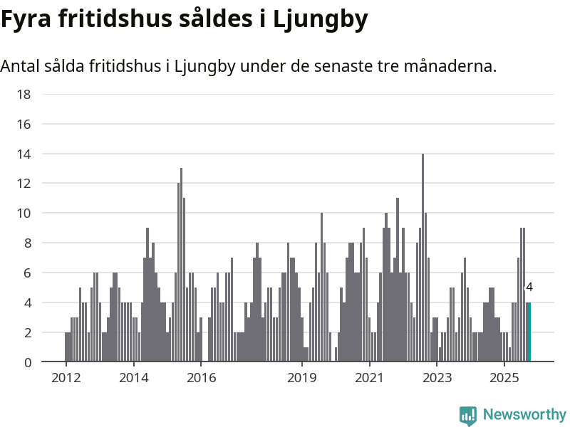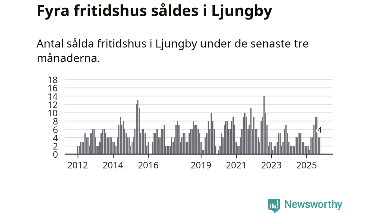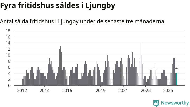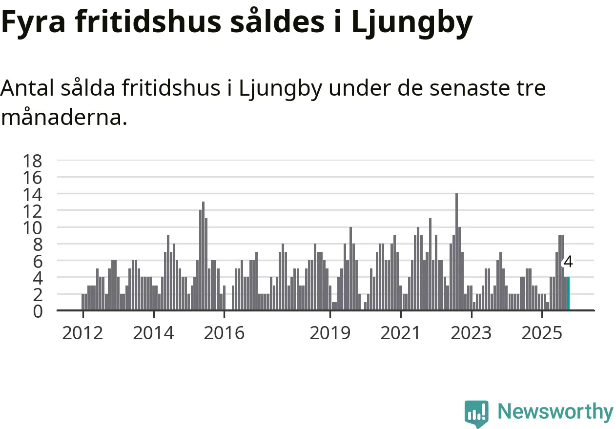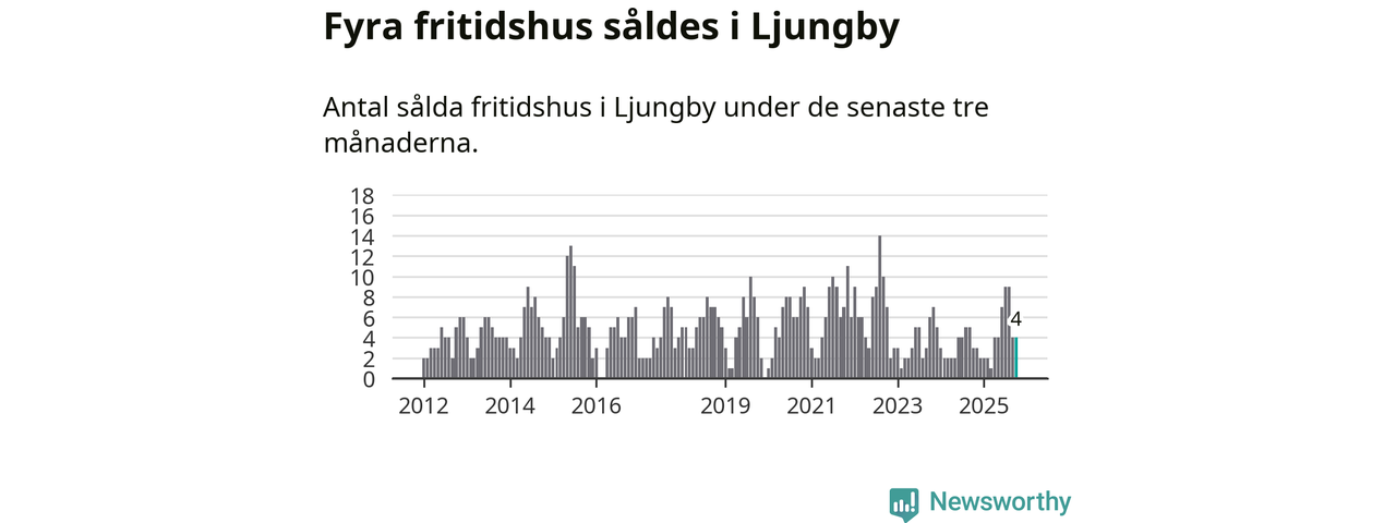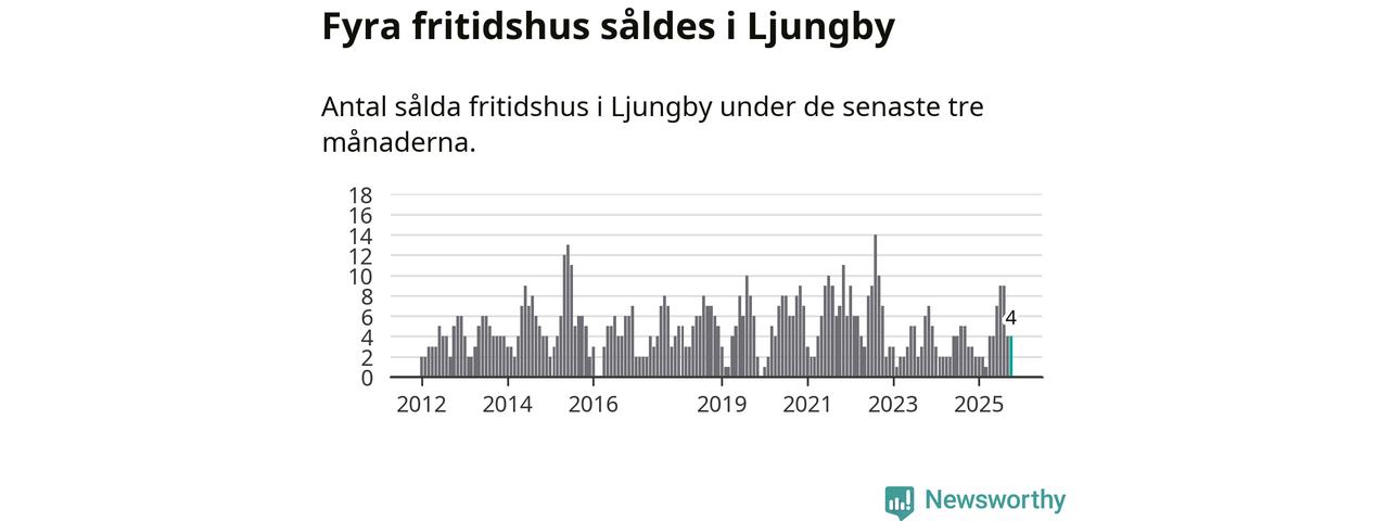 Mellan augusti och oktober gjordes sammanlagt fyra affärer med fritidshus i Ljungby kommun. Det kan jämföras med tre vid motsvarande tid i fjol.
