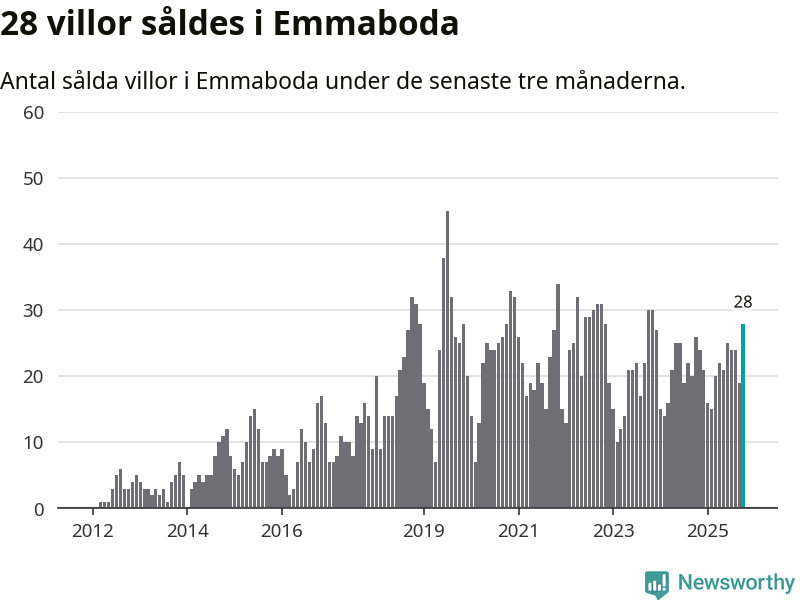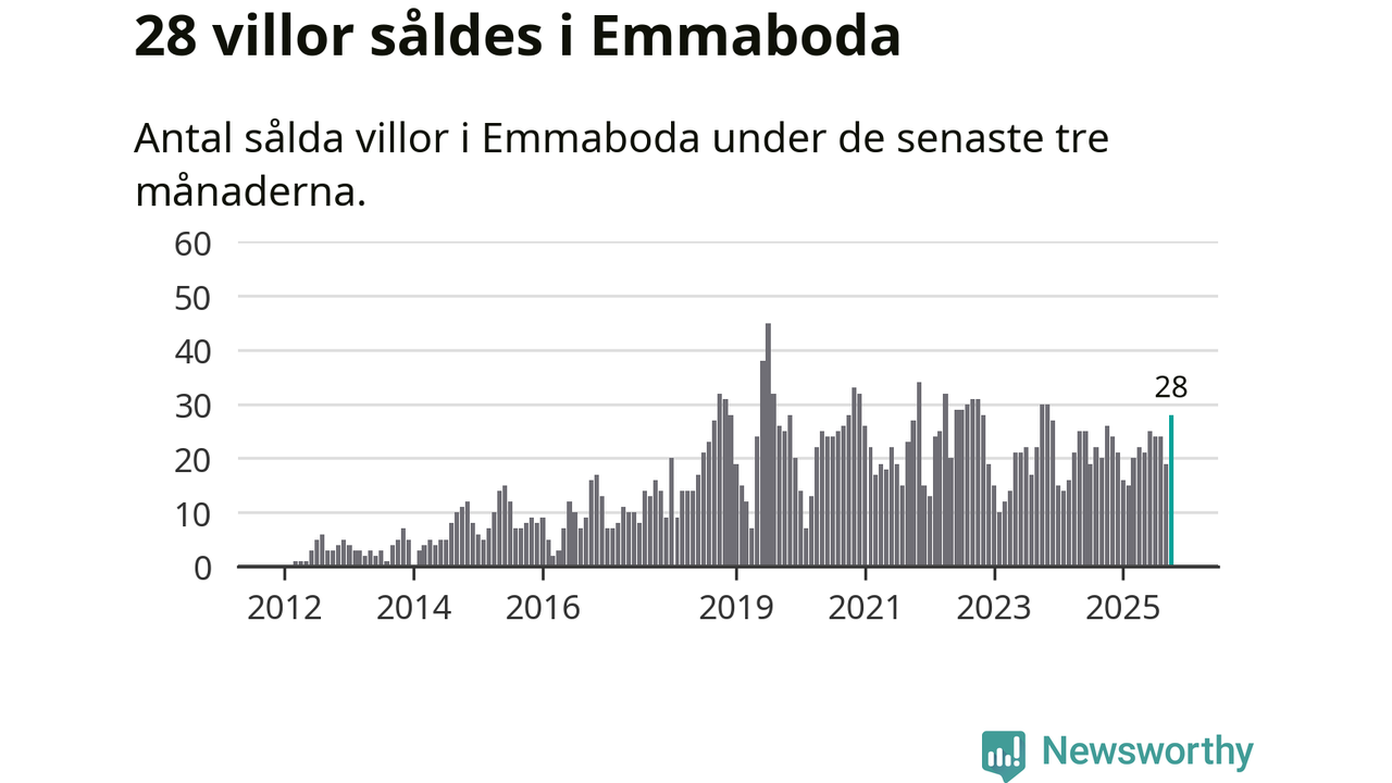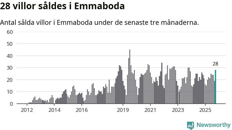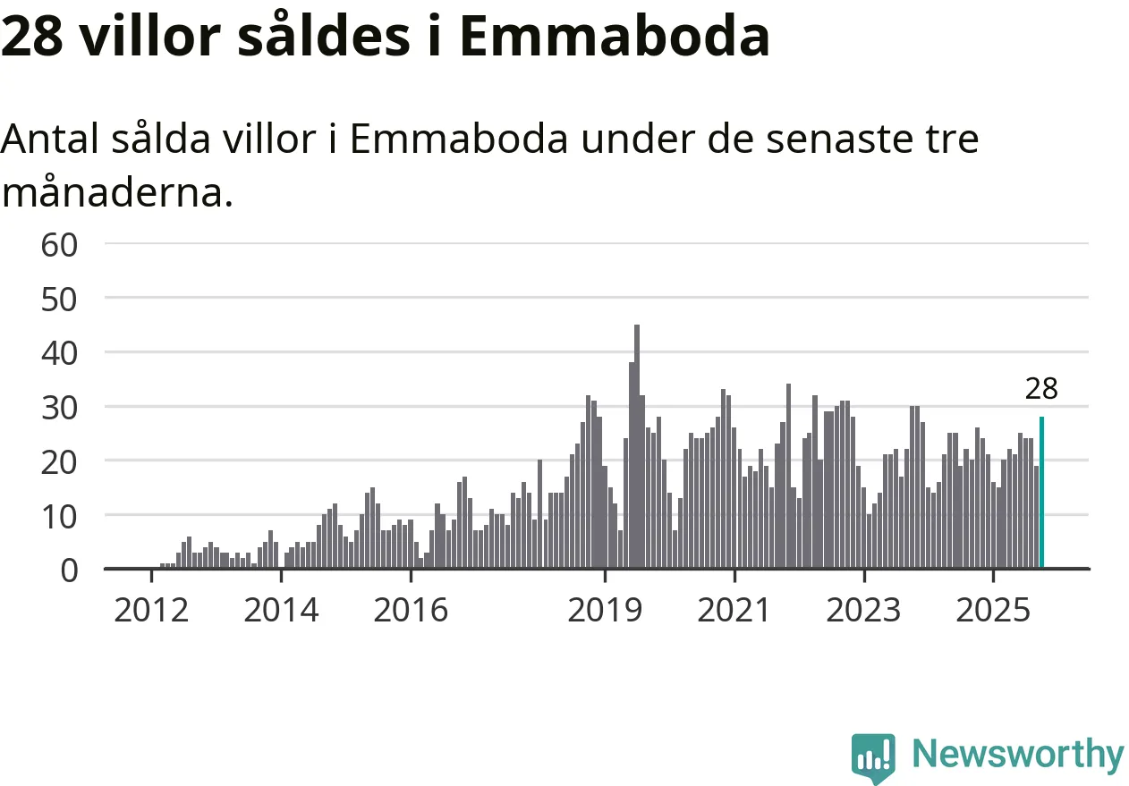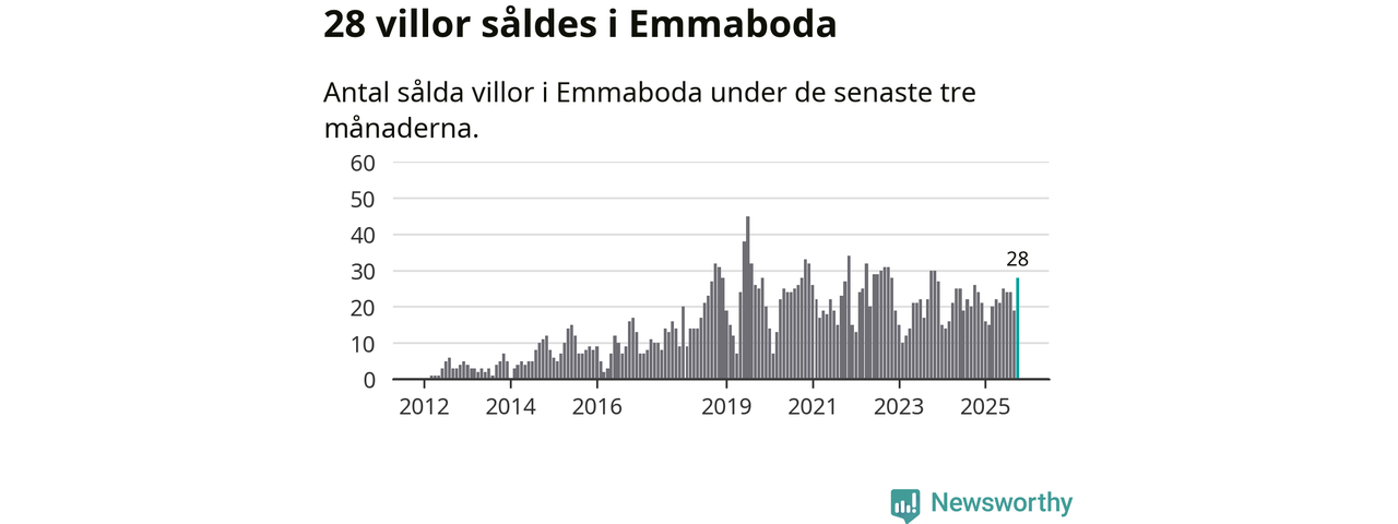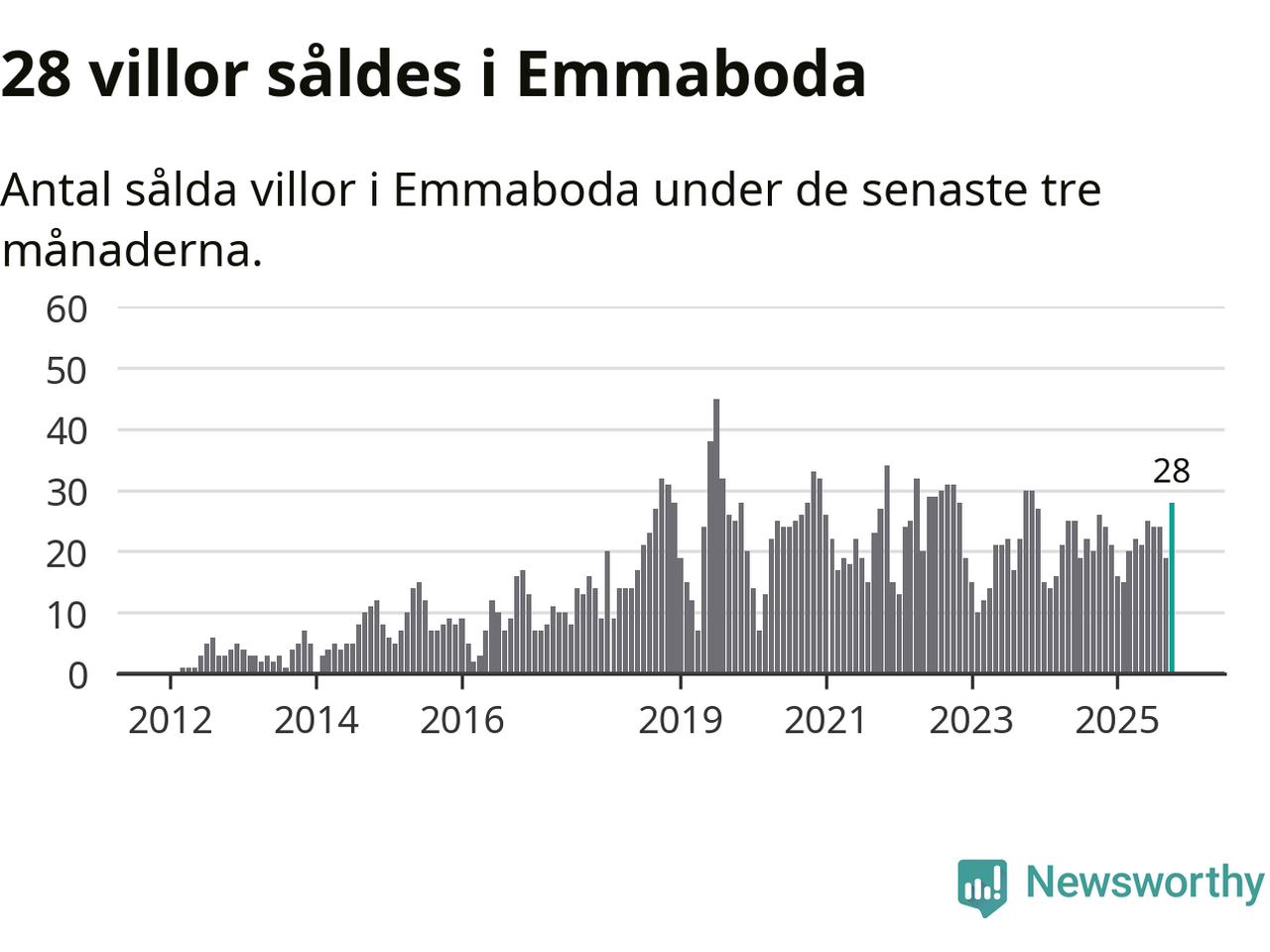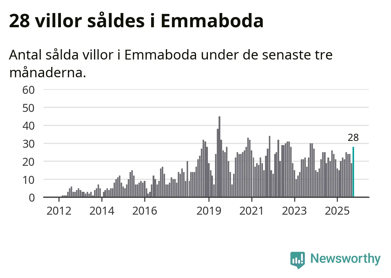 Mellan augusti och oktober gjordes sammanlagt 28 affärer med villor i Emmaboda kommun. Det kan jämföras med 26 vid motsvarande tid i fjol.