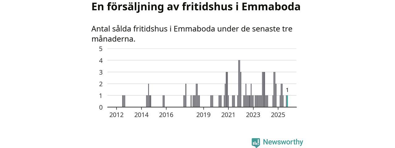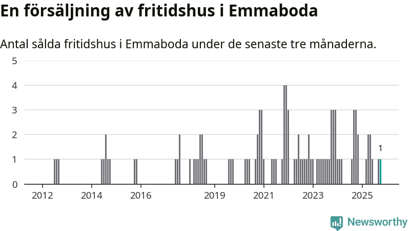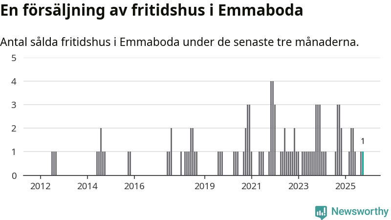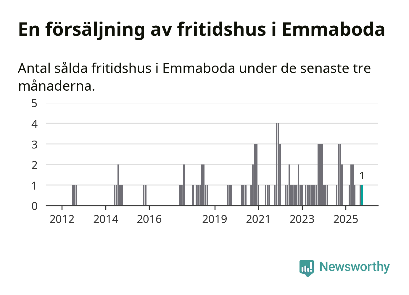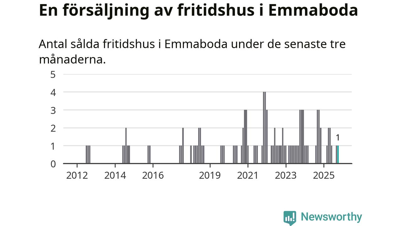 Mellan augusti och oktober gjordes sammanlagt en affär med fritidshus i Emmaboda kommun. Det kan jämföras med tre vid motsvarande tid i fjol.