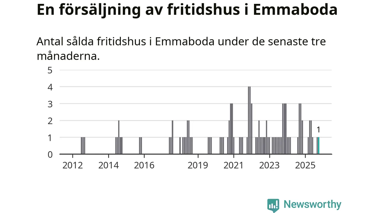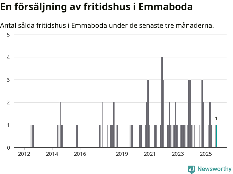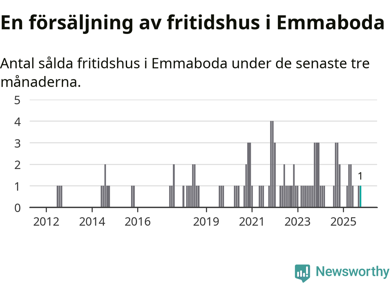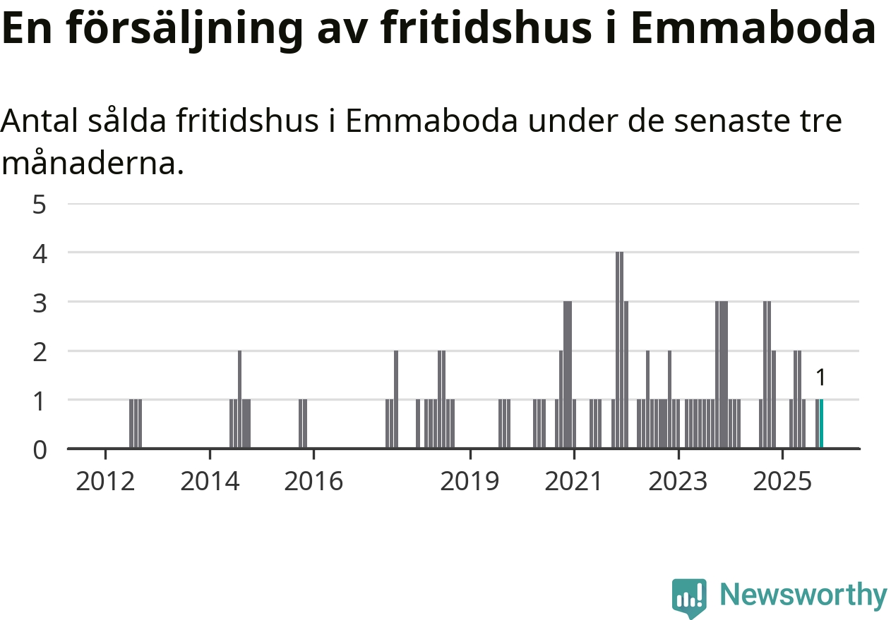 Mellan augusti och oktober gjordes sammanlagt en affär med fritidshus i Emmaboda kommun. Det kan jämföras med tre vid motsvarande tid i fjol.