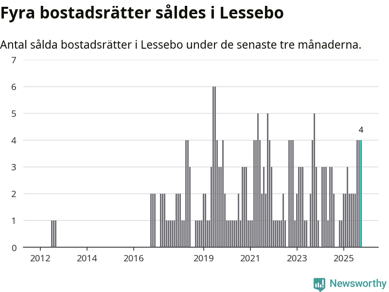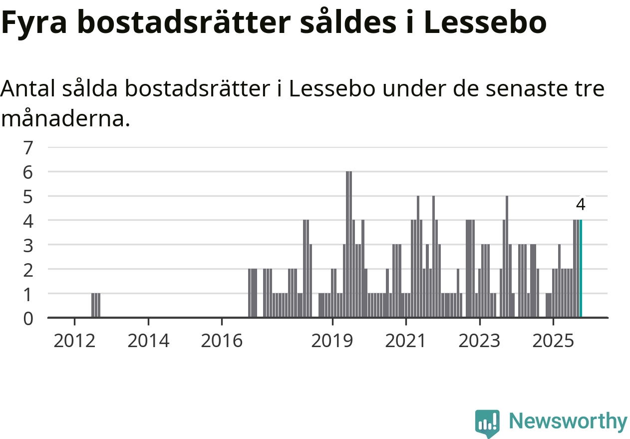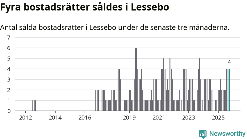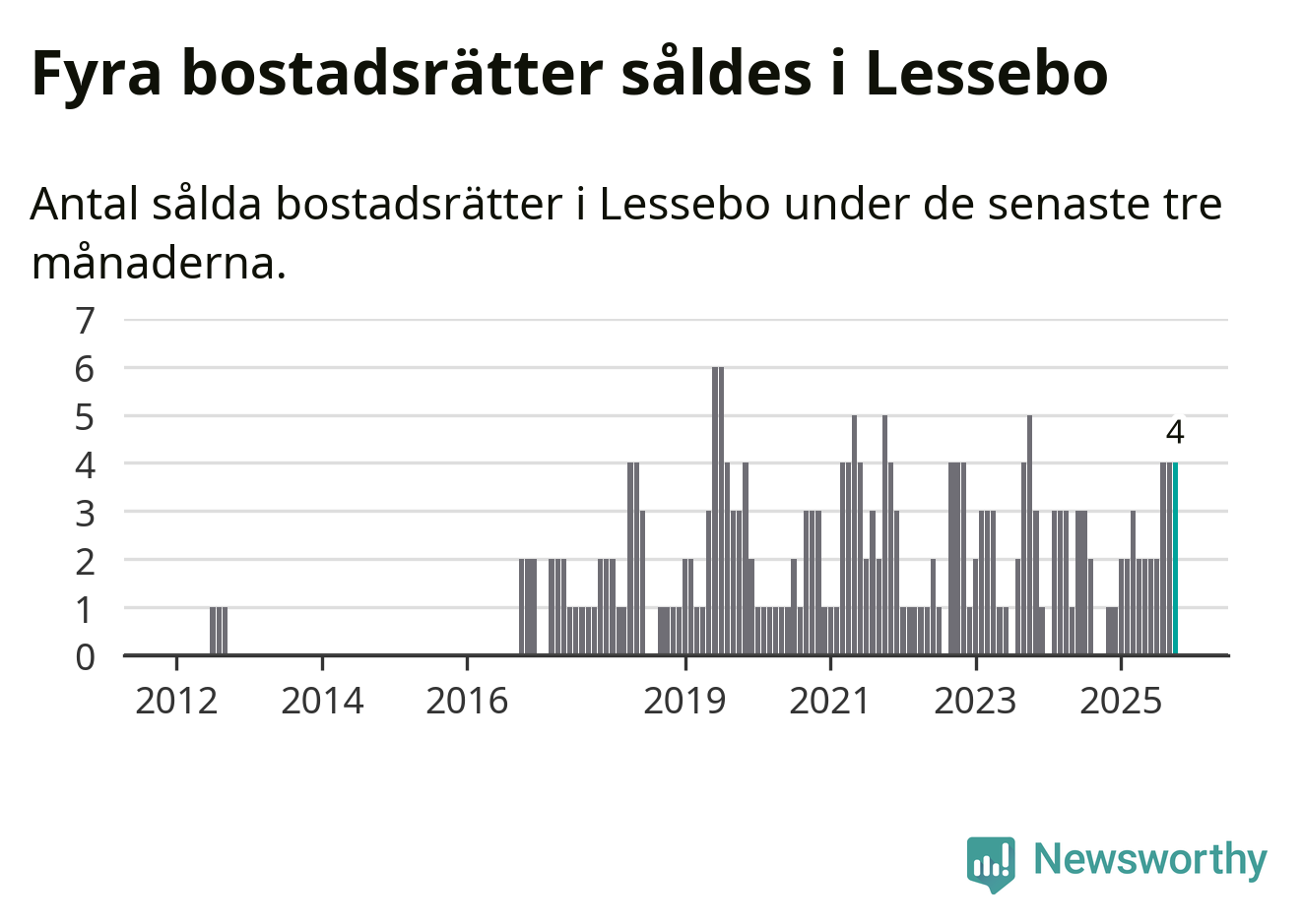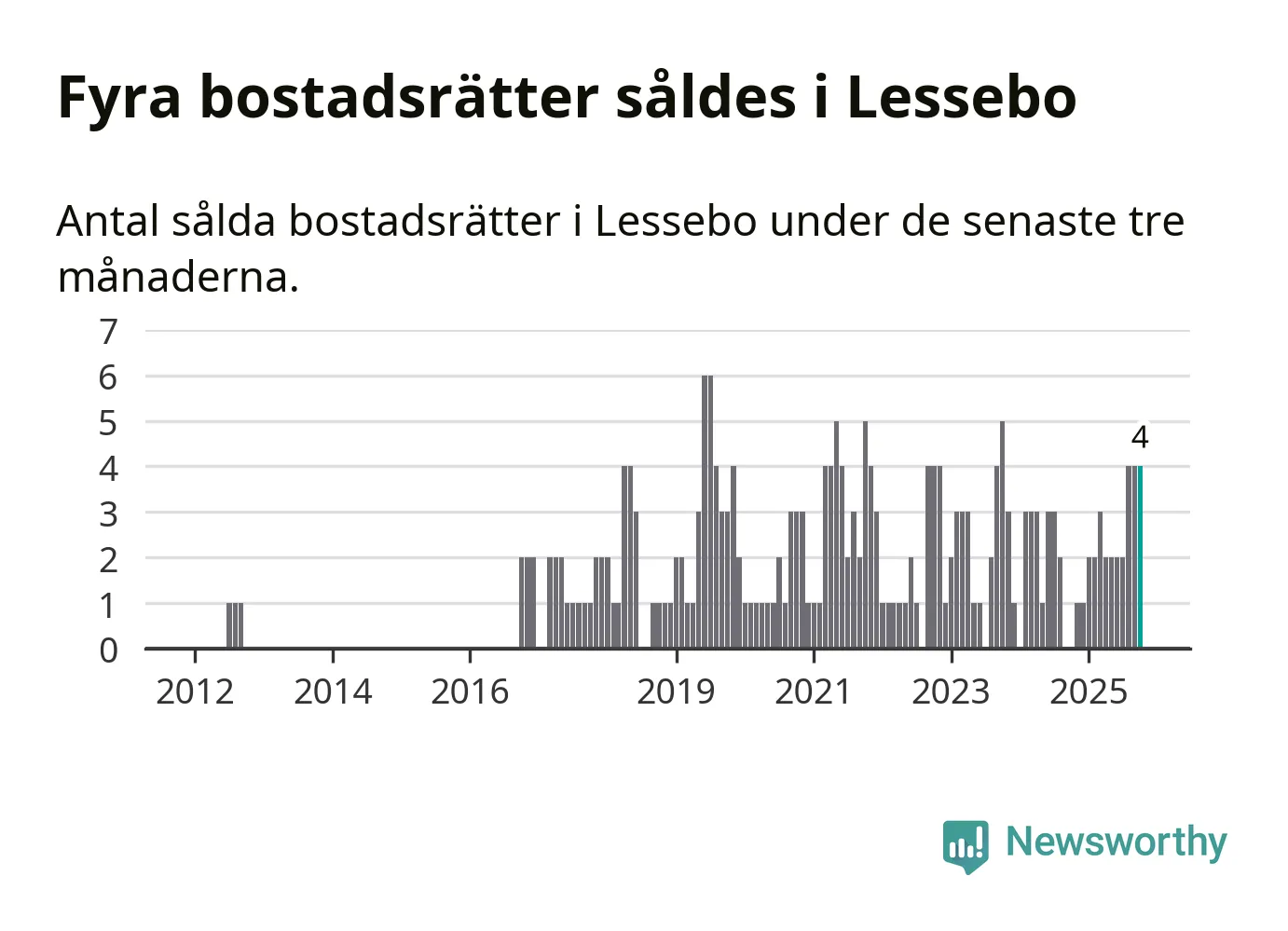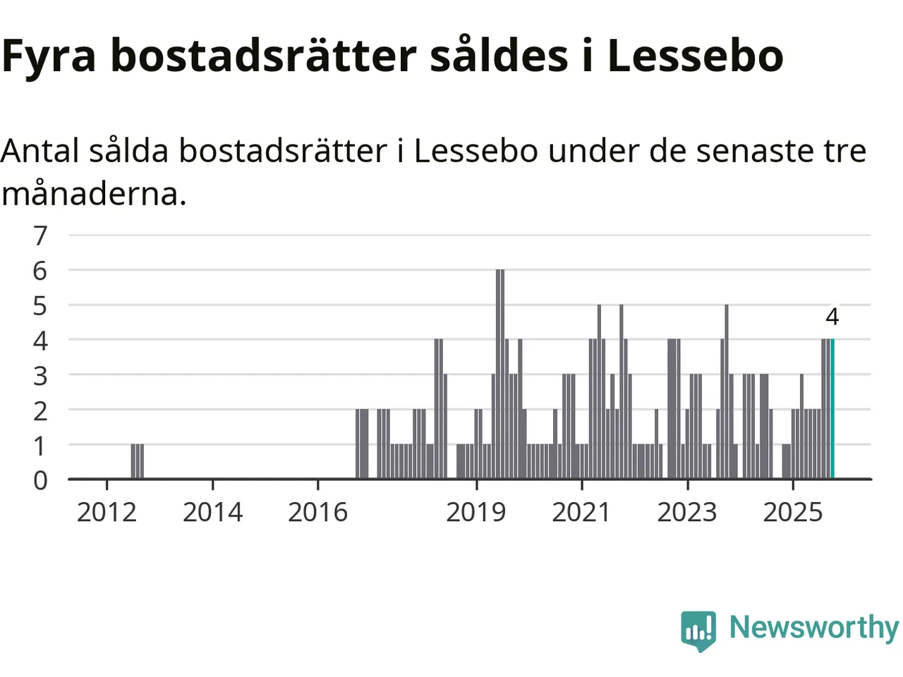 Mellan augusti och oktober gjordes sammanlagt fyra affärer med bostadsrätter i Lessebo kommun.