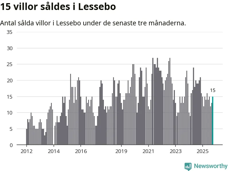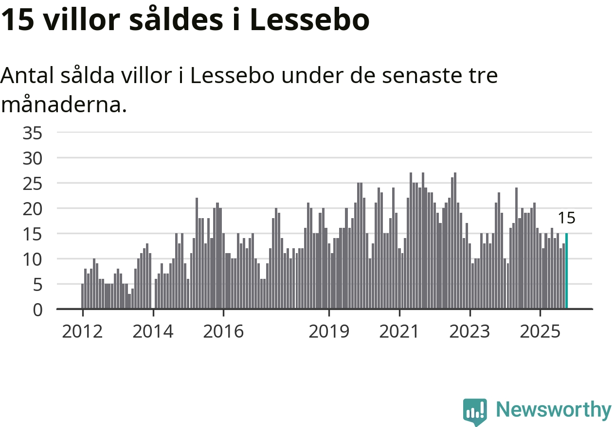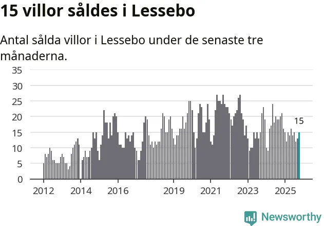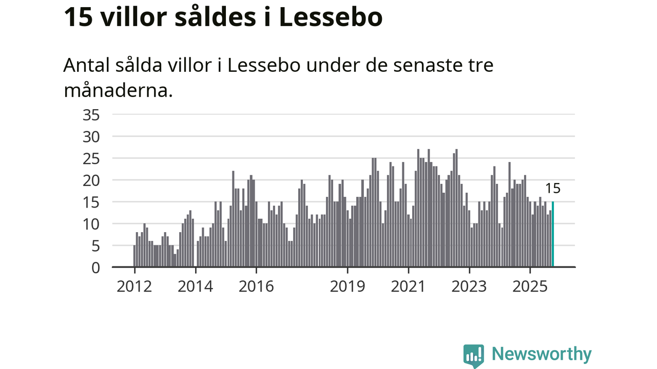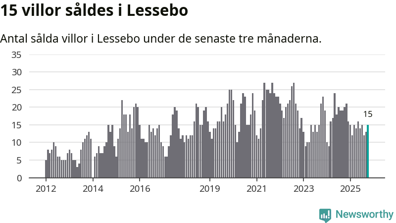 Mellan augusti och oktober gjordes sammanlagt 15 affärer med villor i Lessebo kommun. Det kan jämföras med 20 vid motsvarande tid i fjol.