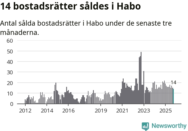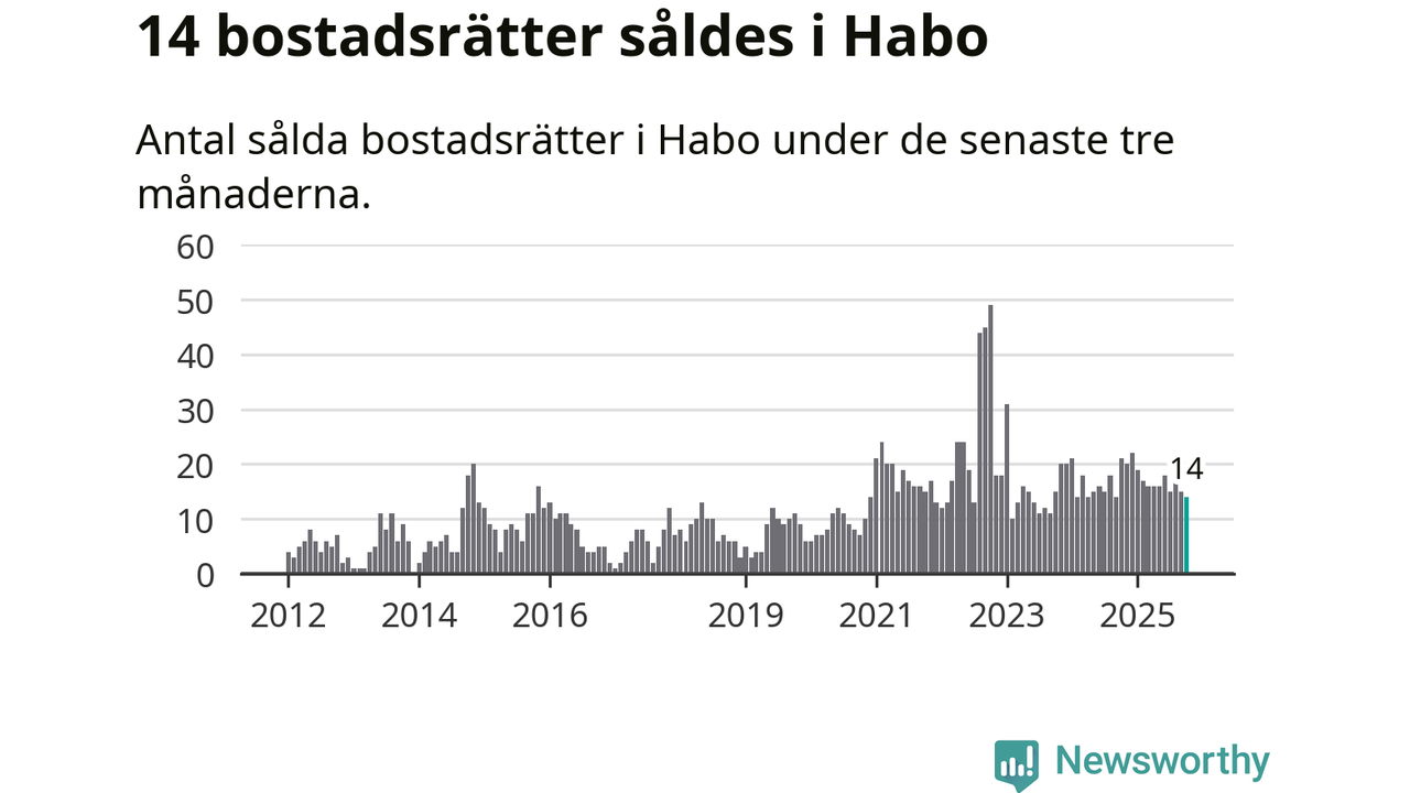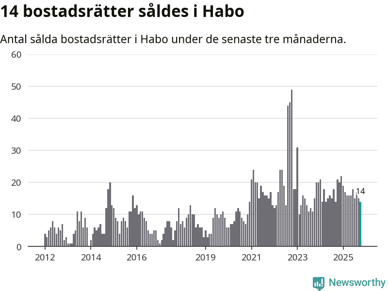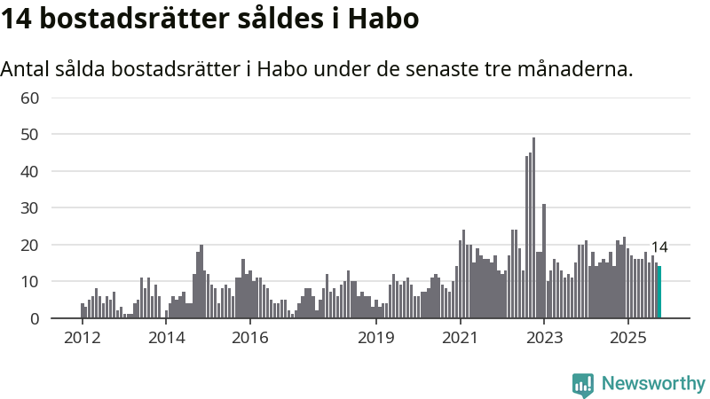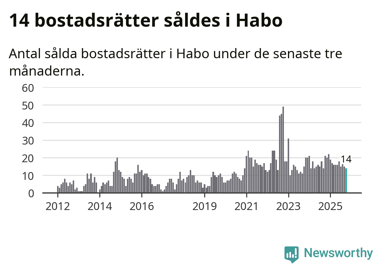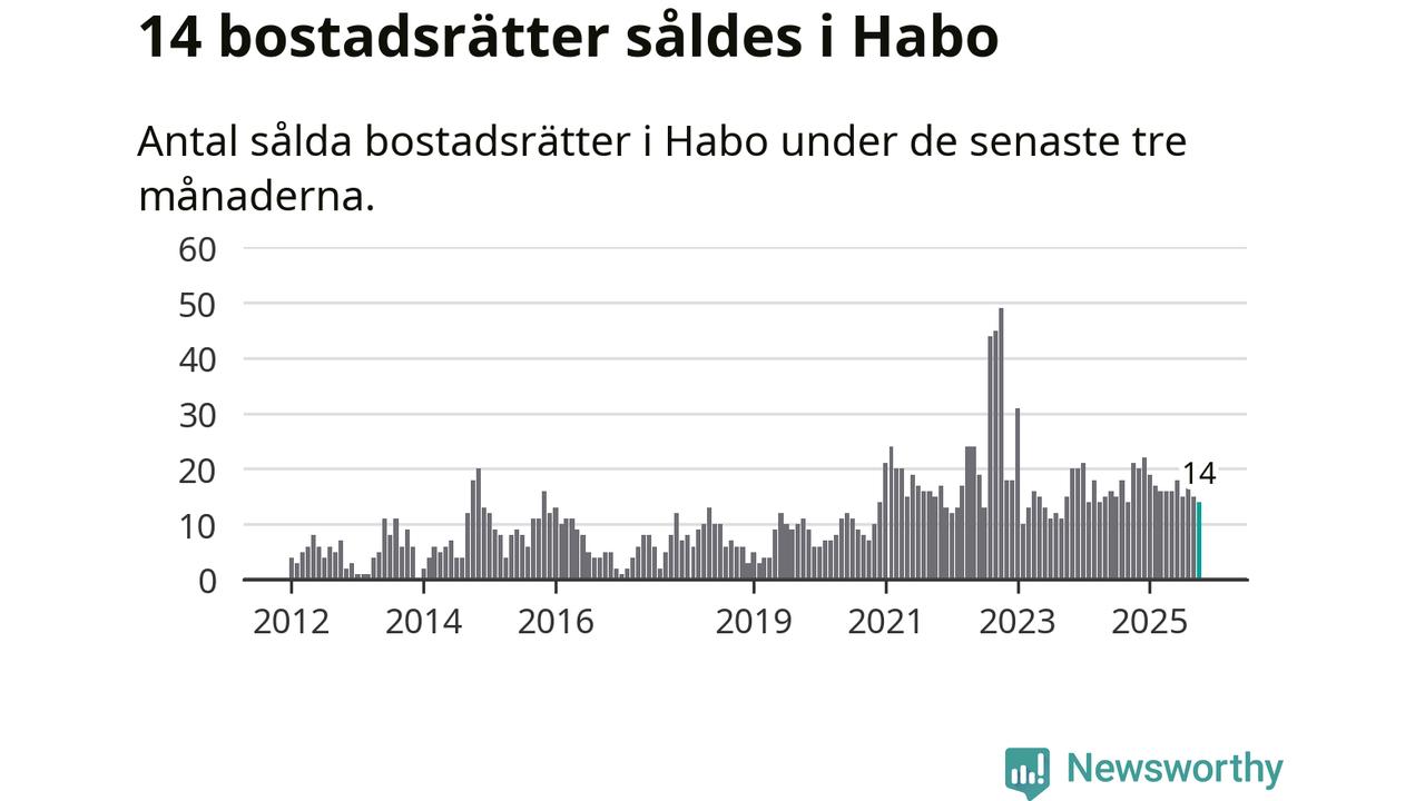 Mellan augusti och oktober gjordes sammanlagt 14 affärer med bostadsrätter i Habo kommun. Det kan jämföras med 21 vid motsvarande tid i fjol.
