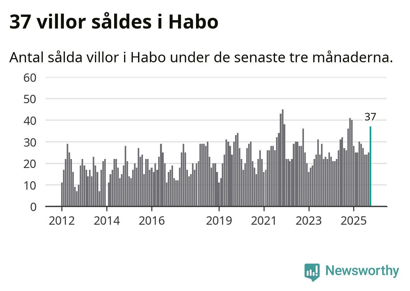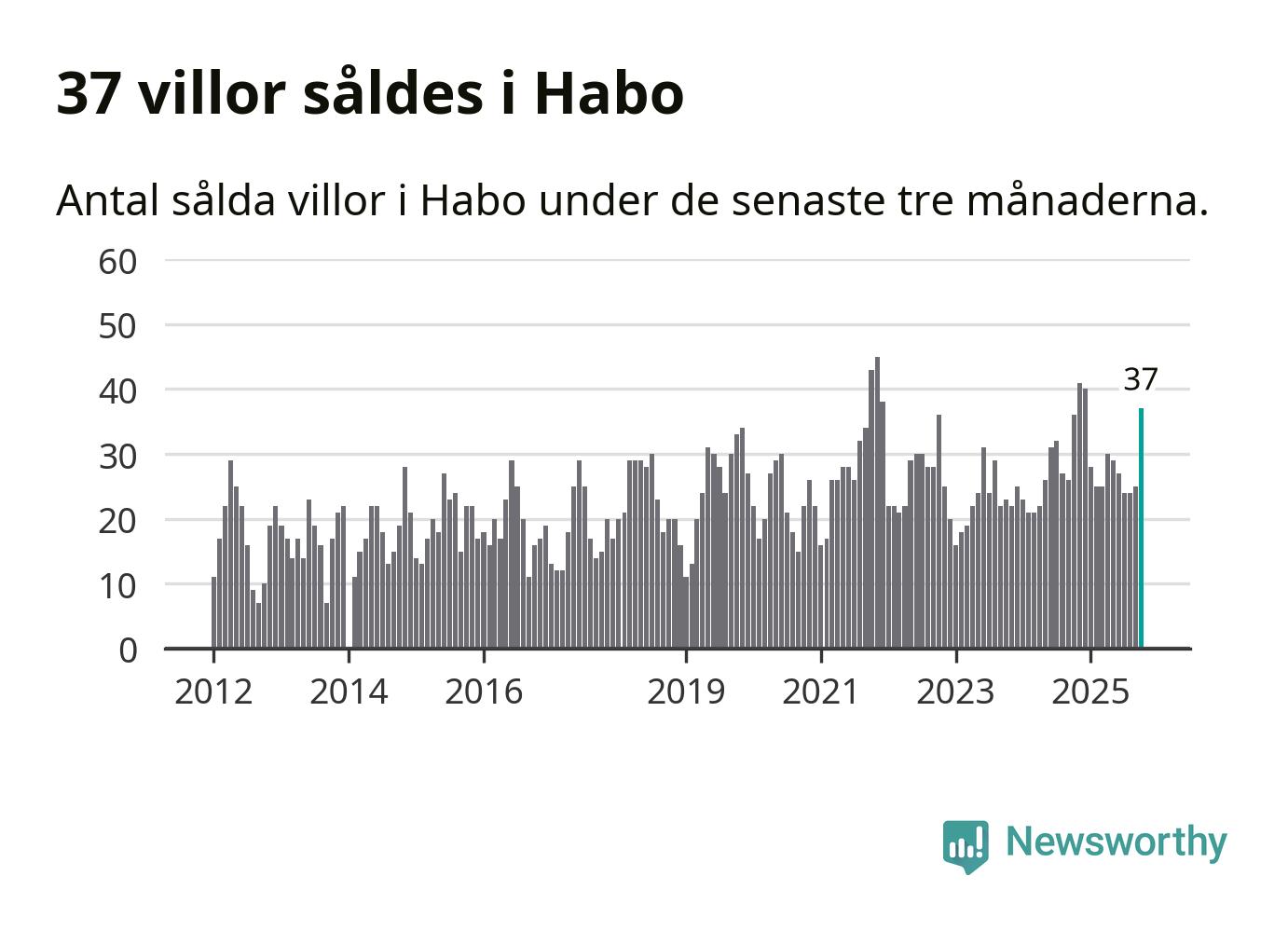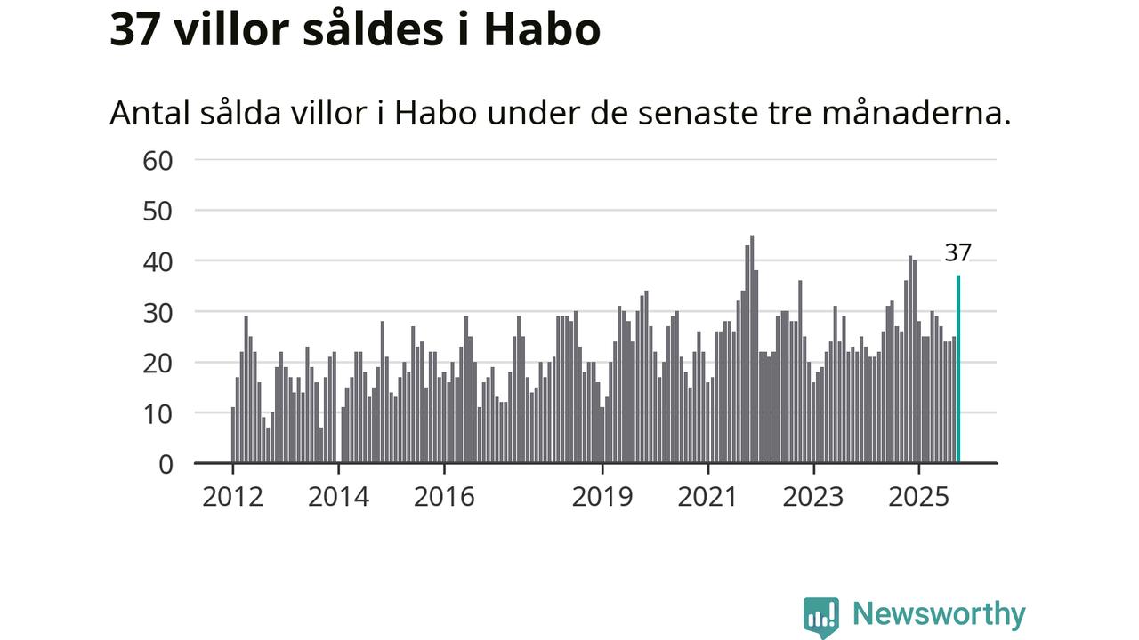 Mellan augusti och oktober gjordes sammanlagt 37 affärer med villor i Habo kommun. Det kan jämföras med 36 vid motsvarande tid i fjol.