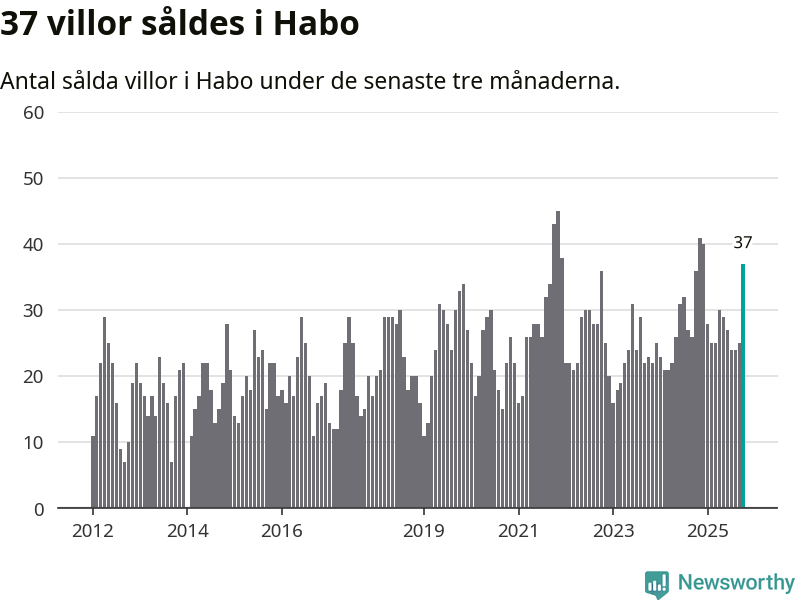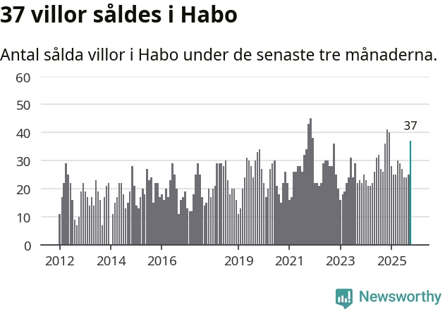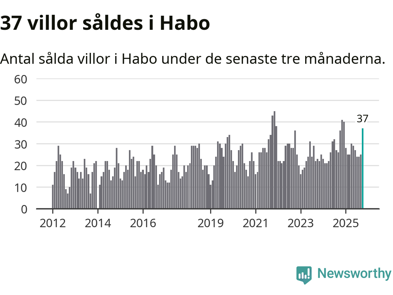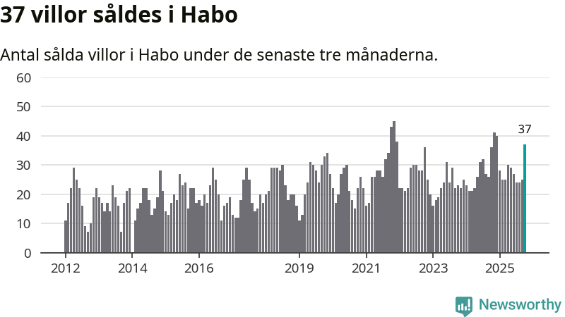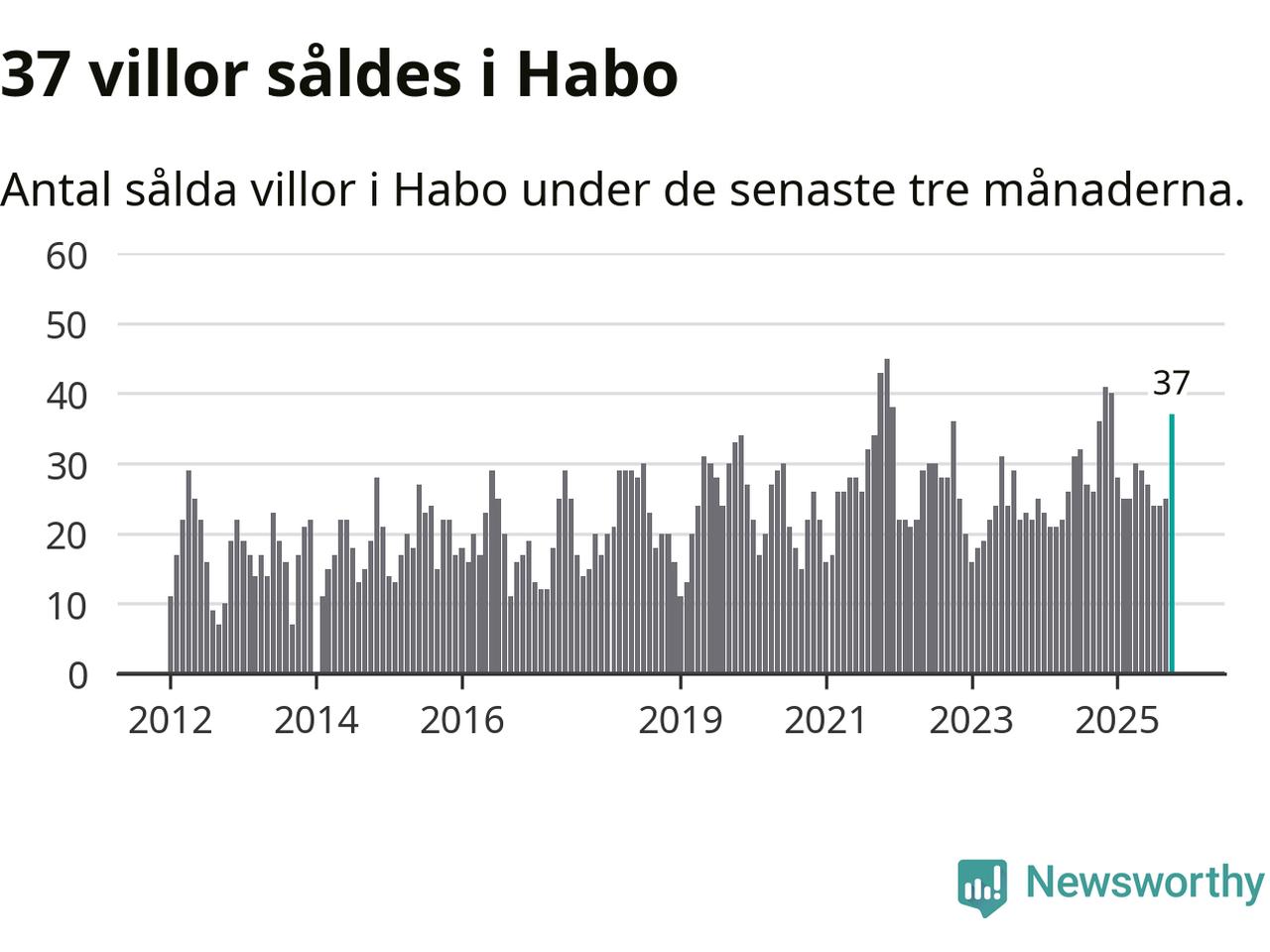 Mellan augusti och oktober gjordes sammanlagt 37 affärer med villor i Habo kommun. Det kan jämföras med 36 vid motsvarande tid i fjol.