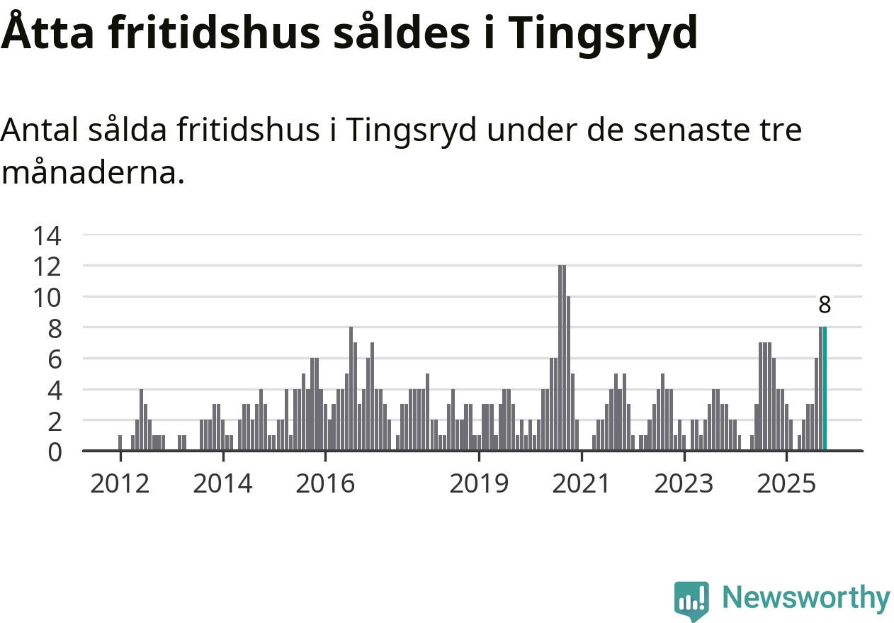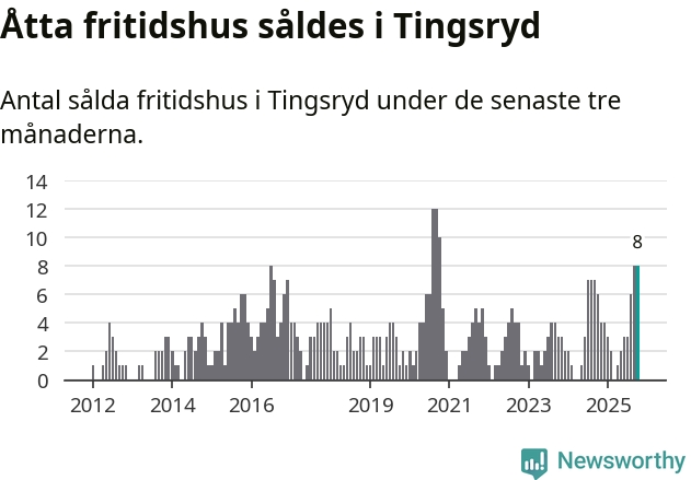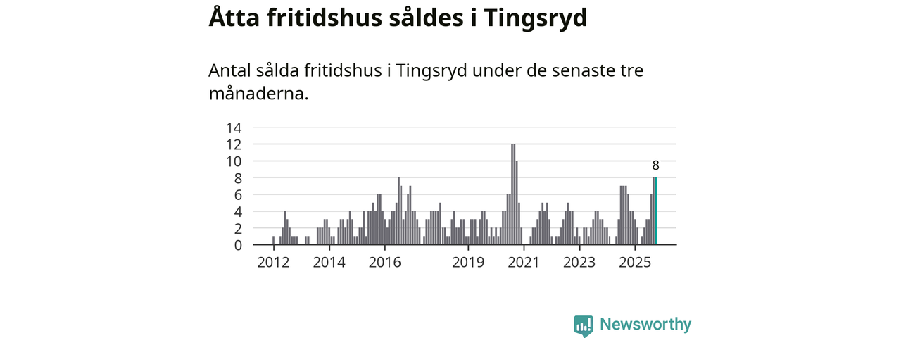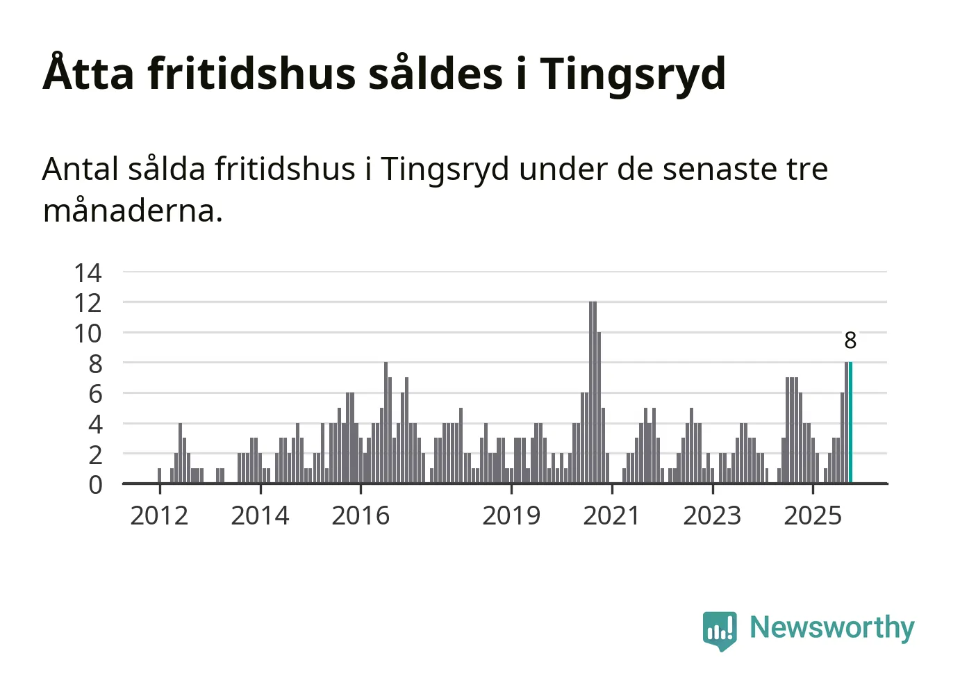 Mellan augusti och oktober gjordes sammanlagt åtta affärer med fritidshus i Tingsryds kommun. Det kan jämföras med sex vid motsvarande tid i fjol.