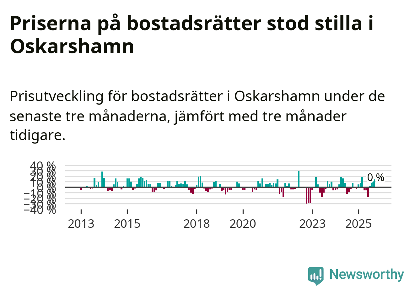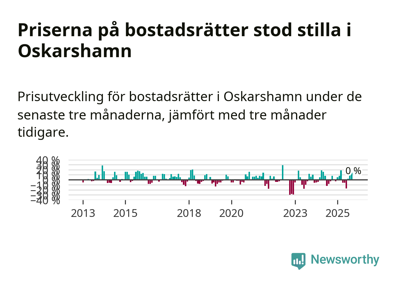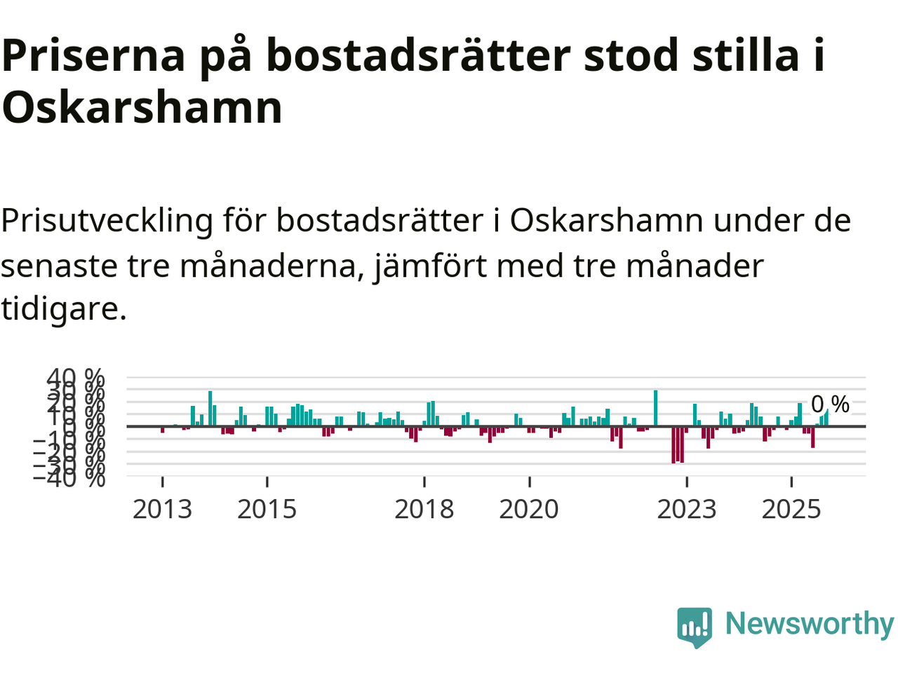 Priserna på bostadsrätter står i stort sett stilla i Oskarshamns kommun. Medelpriset på de på försäljningarna under de senaste tre månaderna låg på samma nivå som för tre månader sedan.