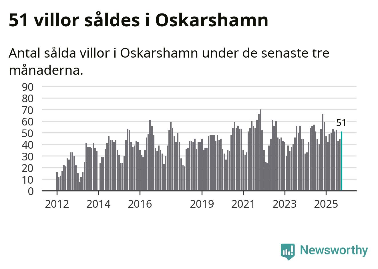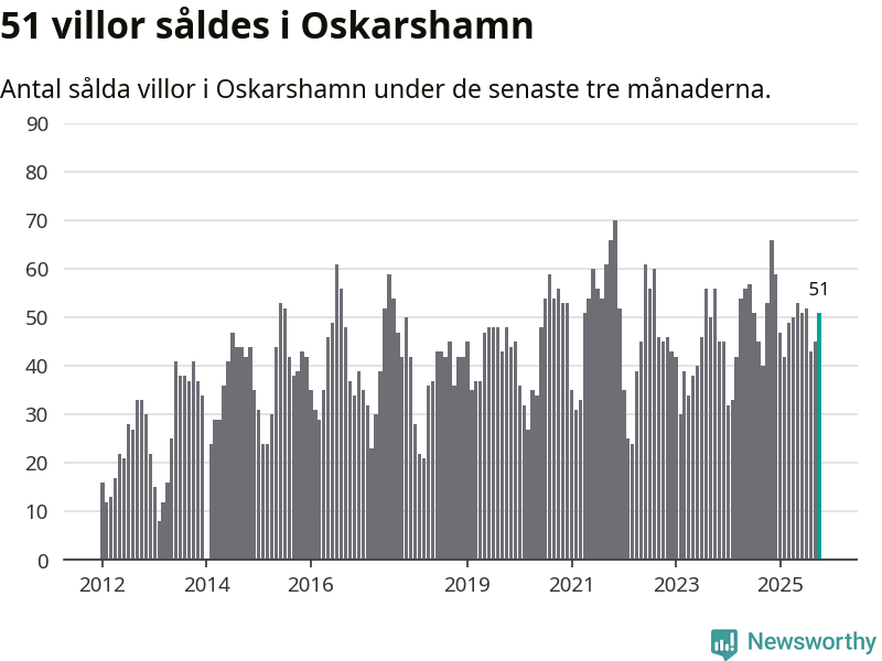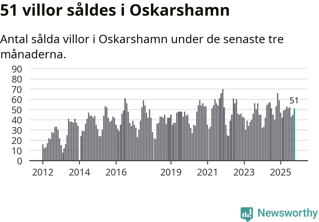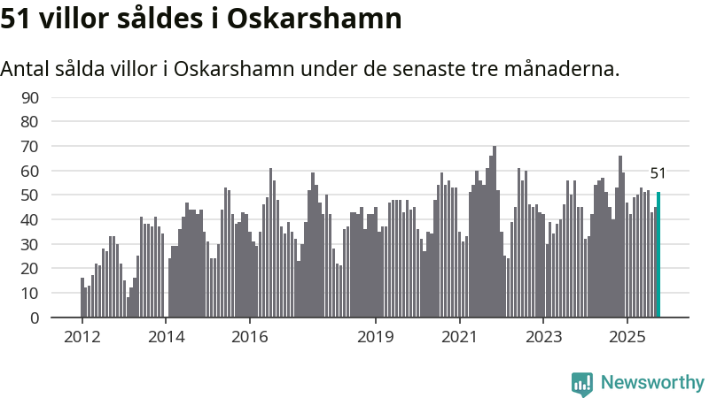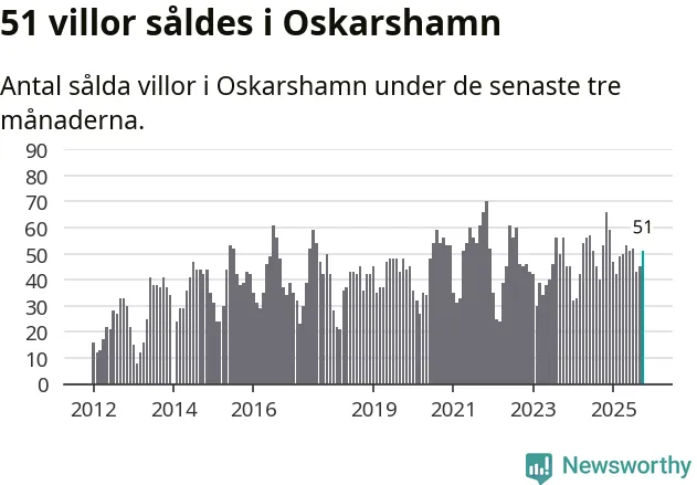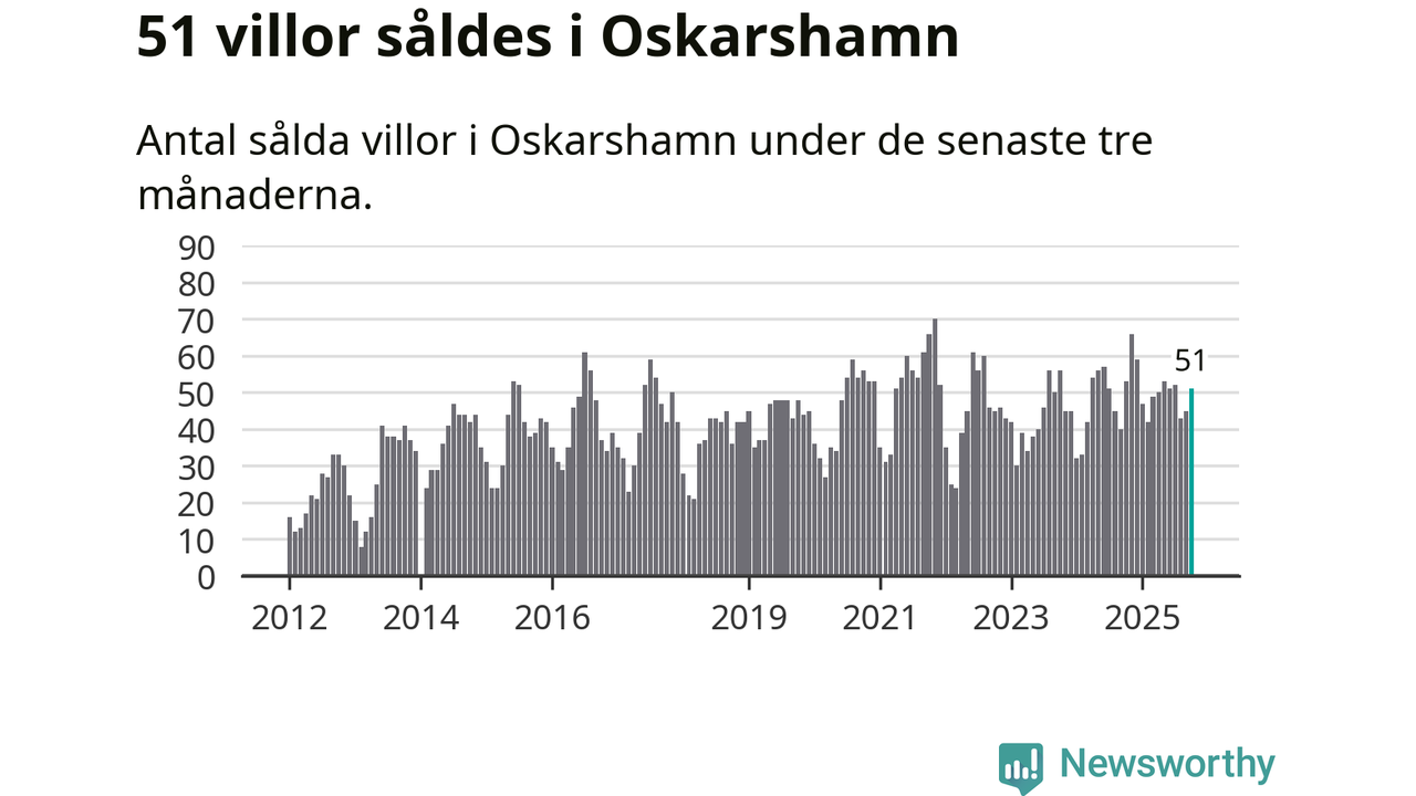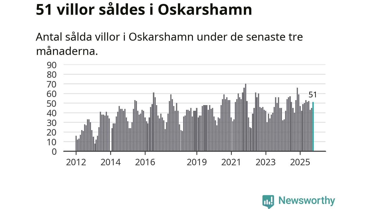 Sammanlagt såldes 51 villor i Oskarshamns kommun mellan augusti och oktober till ett genomsnittligt pris på 2,3 miljoner kronor. I fjol gjordes 53 affärer vid den här tiden på året.