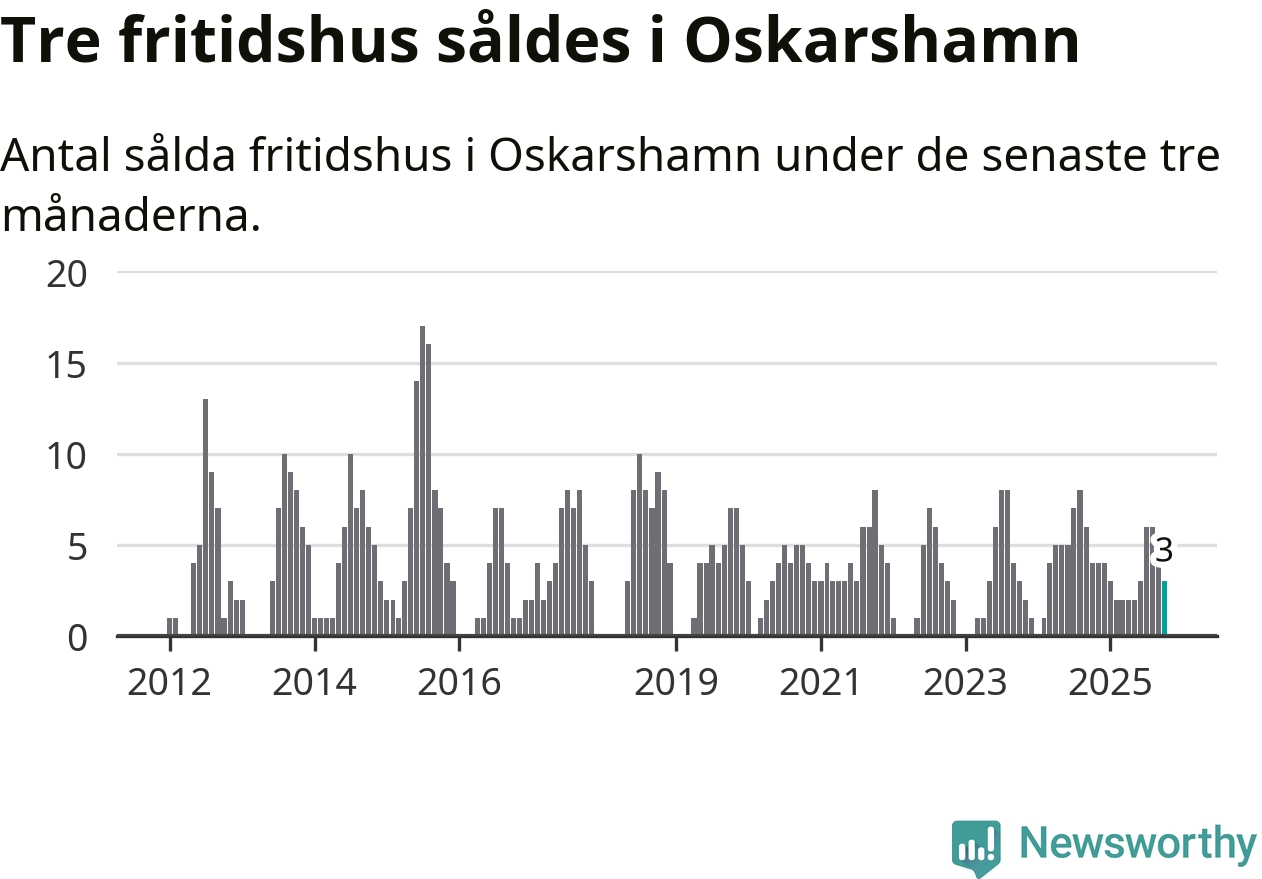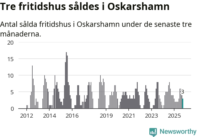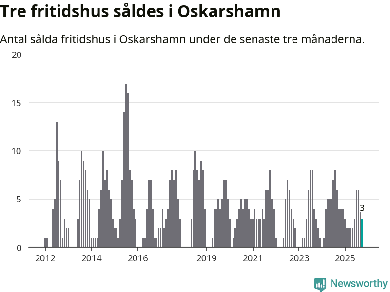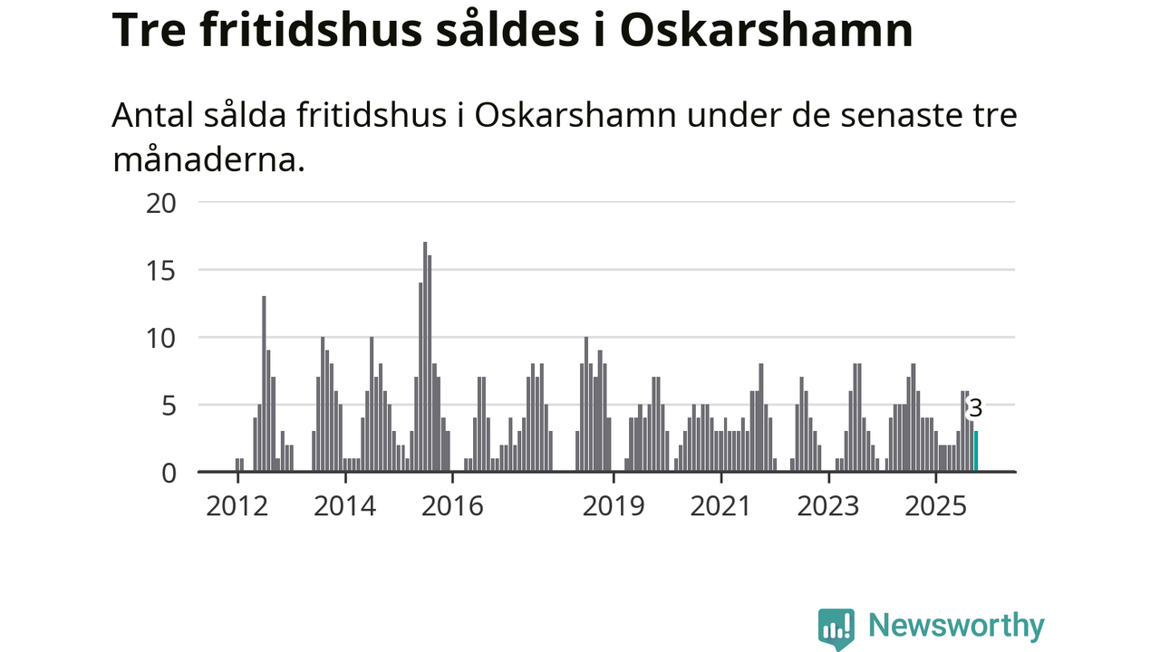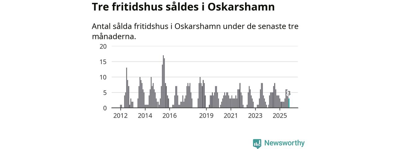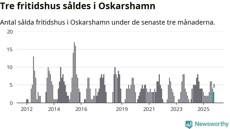 Mellan augusti och oktober gjordes sammanlagt tre affärer med fritidshus i Oskarshamns kommun. Det kan jämföras med fyra vid motsvarande tid i fjol.