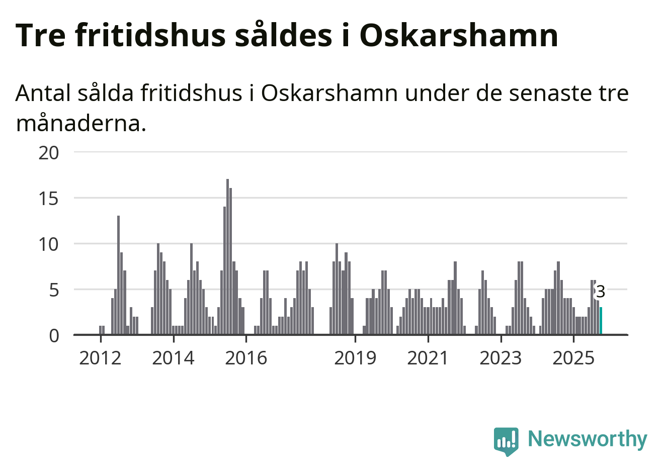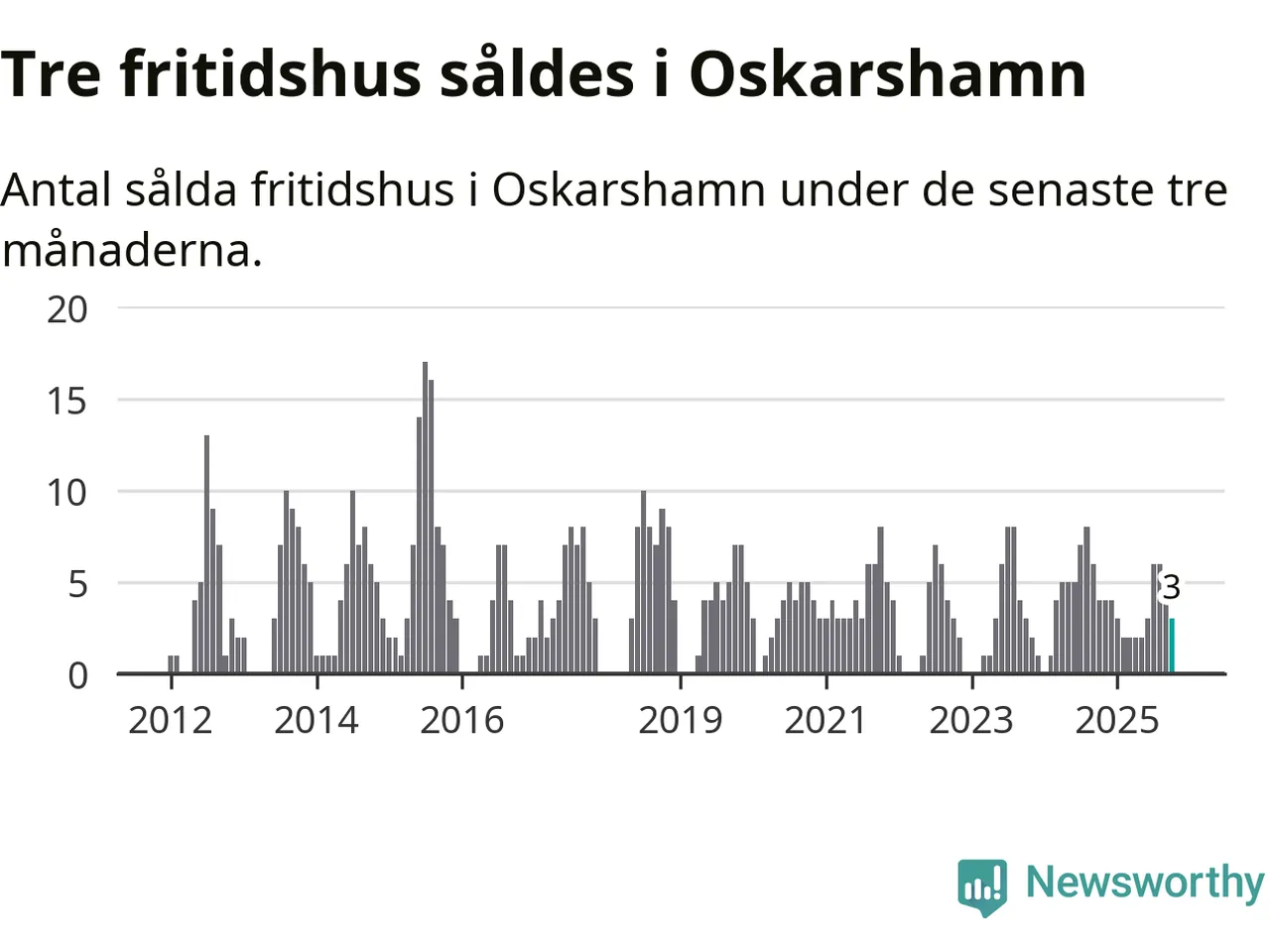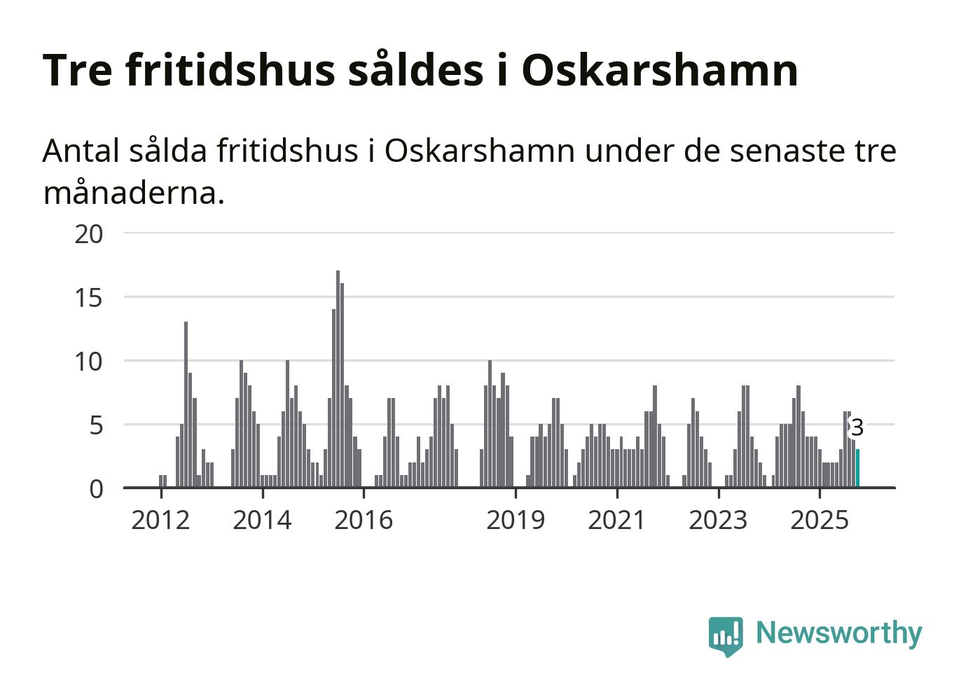 Mellan augusti och oktober gjordes sammanlagt tre affärer med fritidshus i Oskarshamns kommun. Det kan jämföras med fyra vid motsvarande tid i fjol.