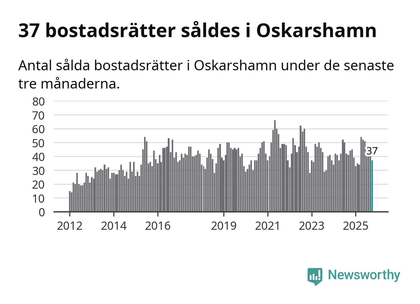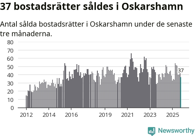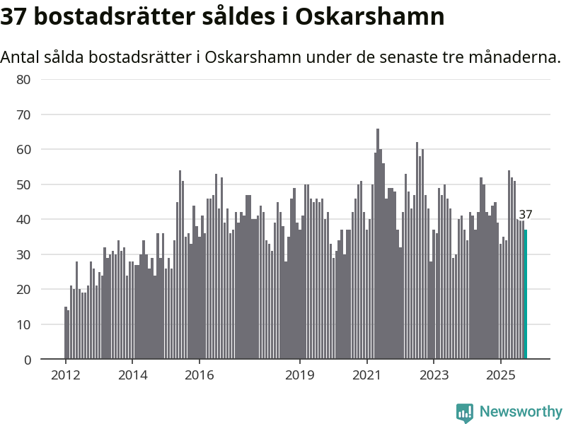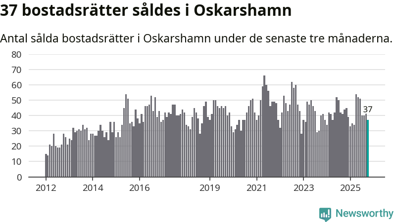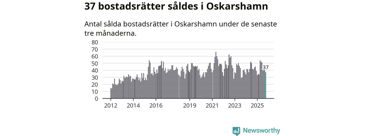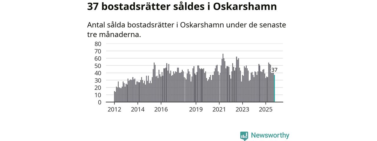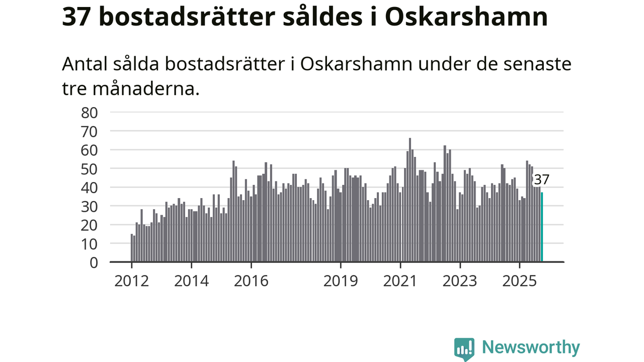 Sammanlagt såldes 37 bostadsrätter i Oskarshamns kommun mellan augusti och oktober till ett genomsnittligt pris på 0,9 miljoner kronor. I fjol gjordes 44 affärer vid den här tiden på året.