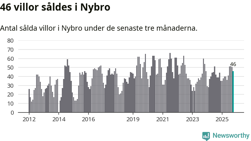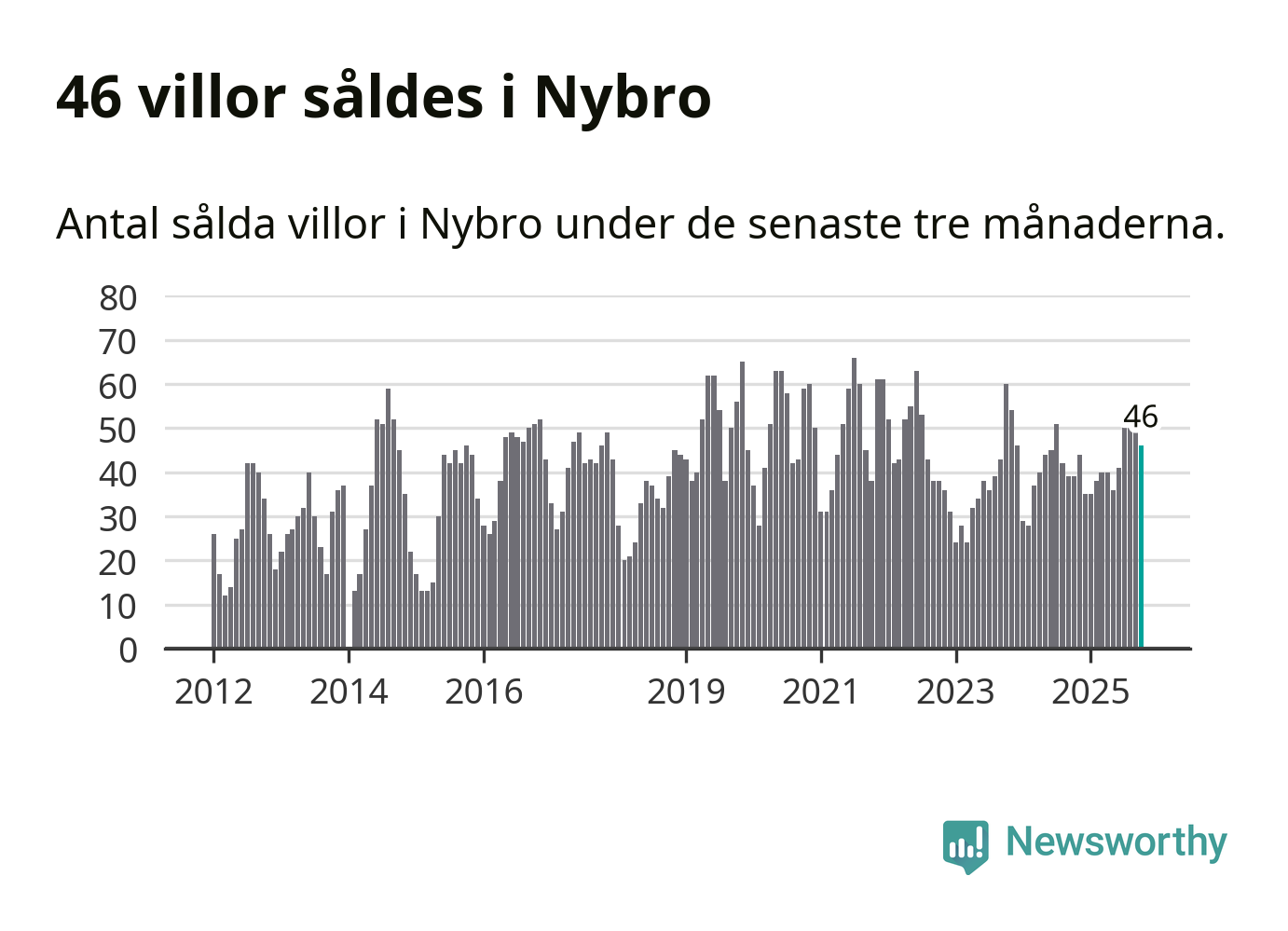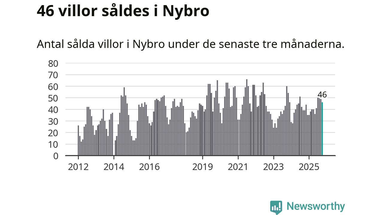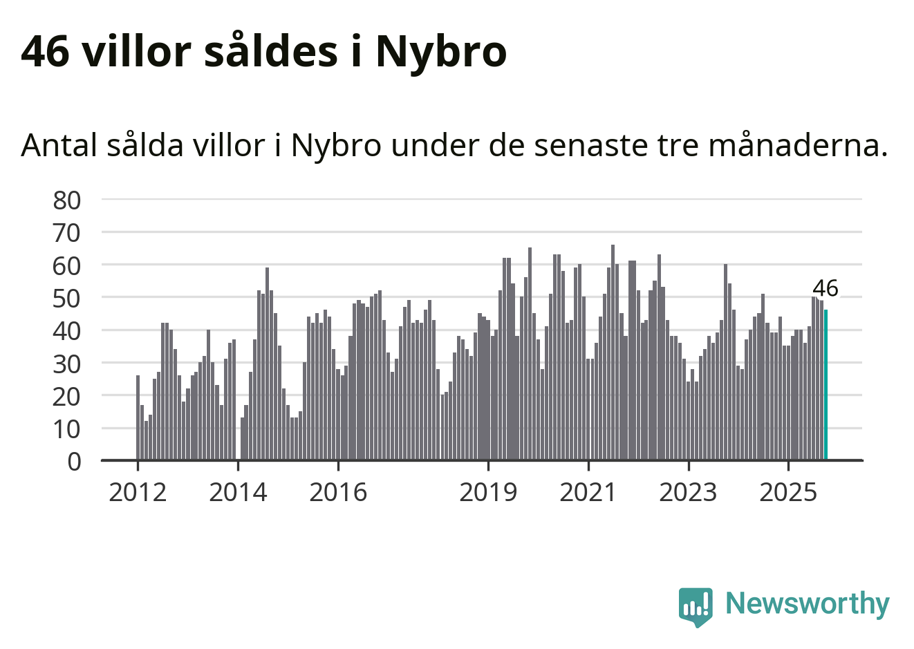 Sammanlagt såldes 46 villor i Nybro kommun mellan augusti och oktober till ett genomsnittligt pris på 1,4 miljoner kronor. I fjol gjordes 39 affärer vid den här tiden på året.