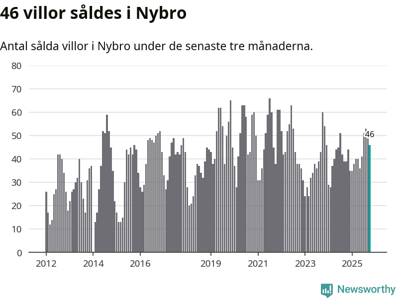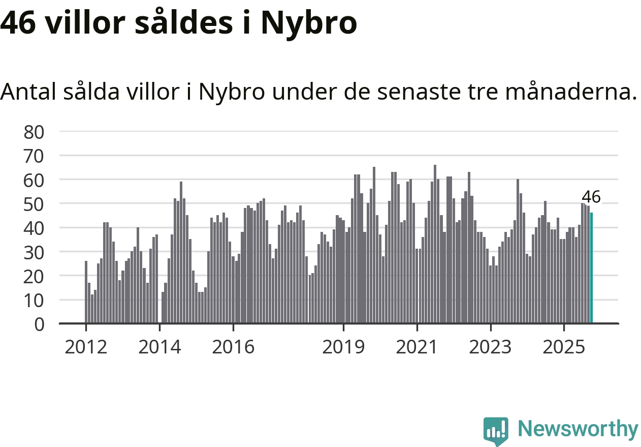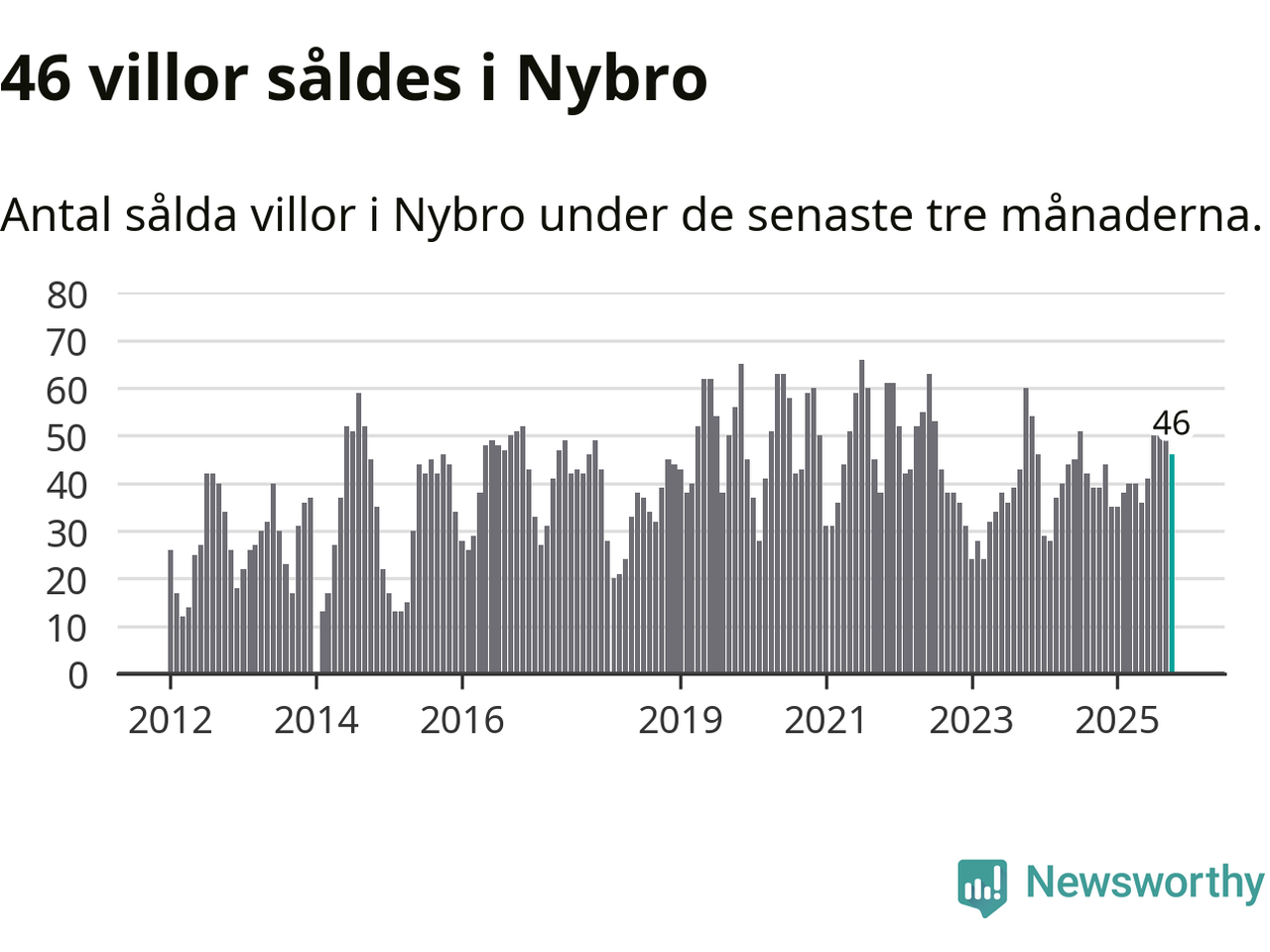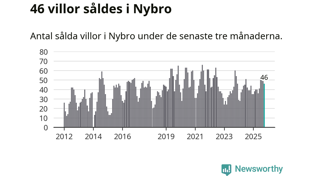 Sammanlagt såldes 46 villor i Nybro kommun mellan augusti och oktober till ett genomsnittligt pris på 1,4 miljoner kronor. I fjol gjordes 39 affärer vid den här tiden på året.