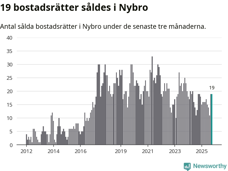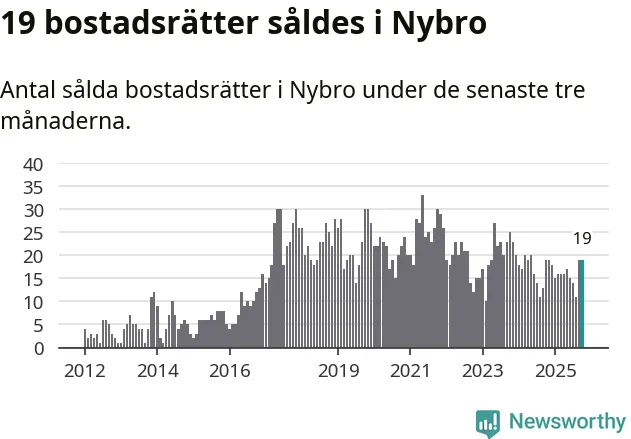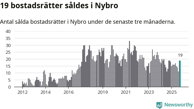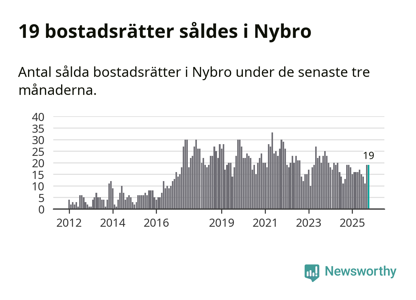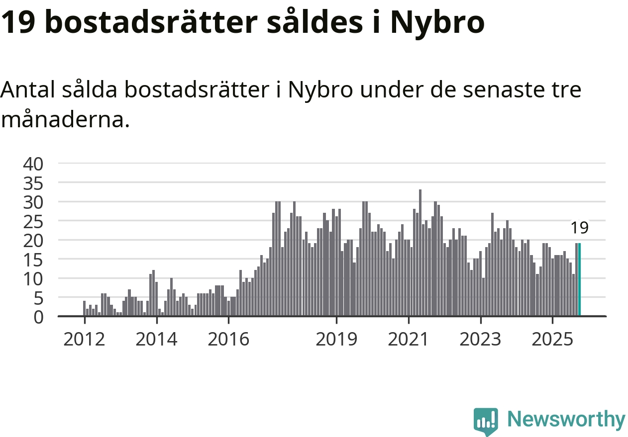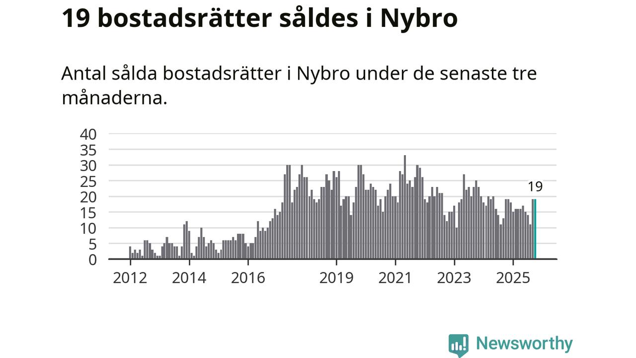 Mellan augusti och oktober gjordes sammanlagt 19 affärer med bostadsrätter i Nybro kommun. Det är lika många affärer som vid motsvarande tid i fjol.