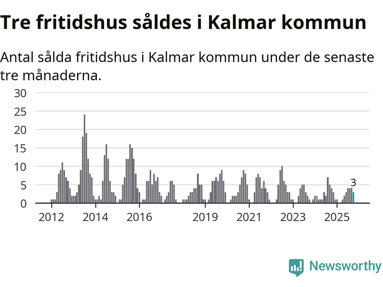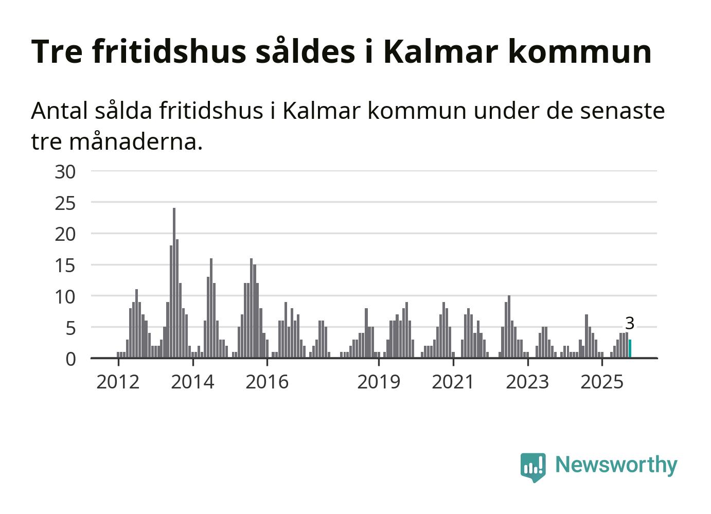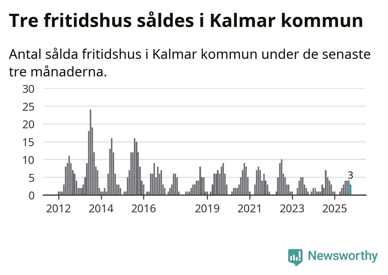 Mellan augusti och oktober gjordes sammanlagt tre affärer med fritidshus i Kalmar kommun. Det kan jämföras med fyra vid motsvarande tid i fjol.