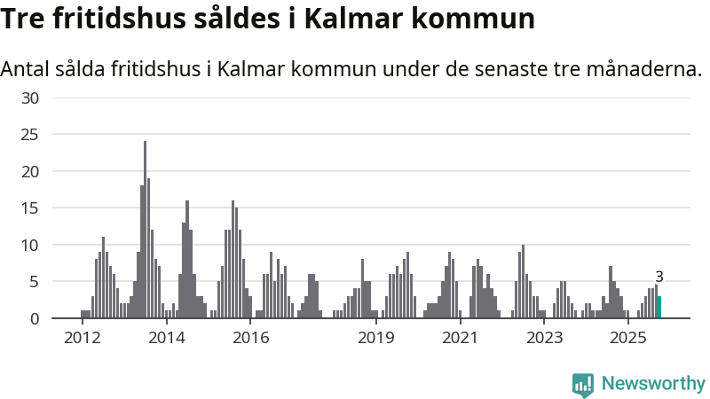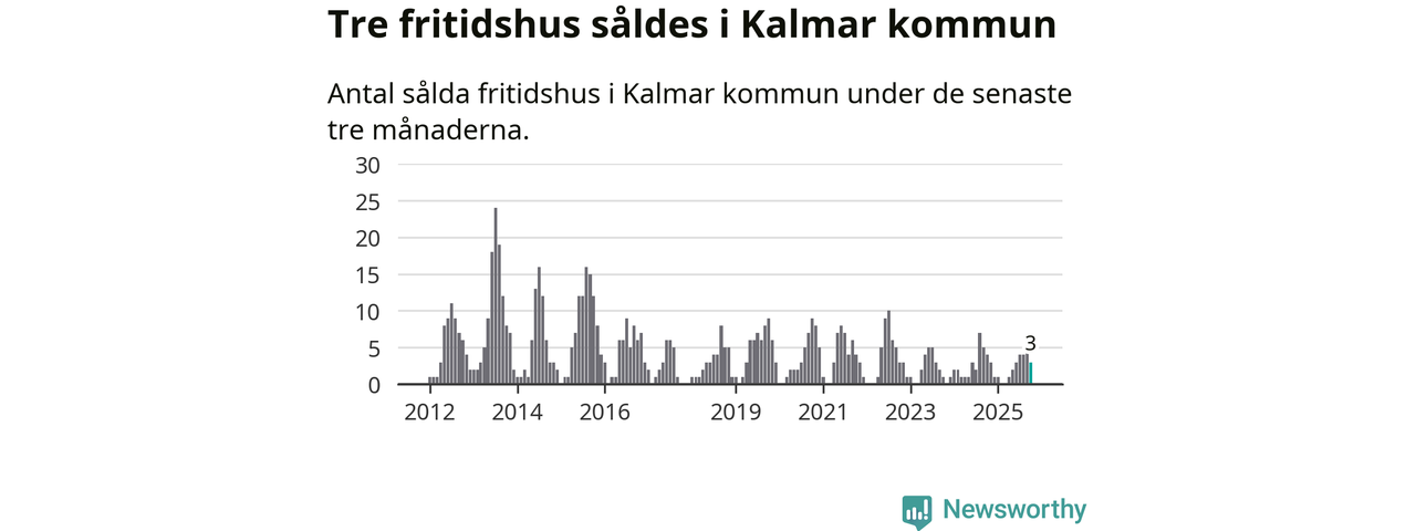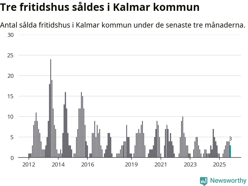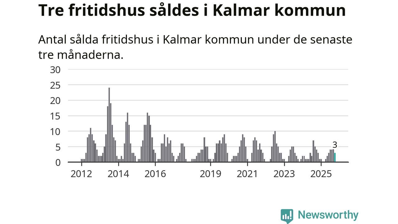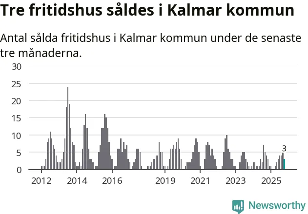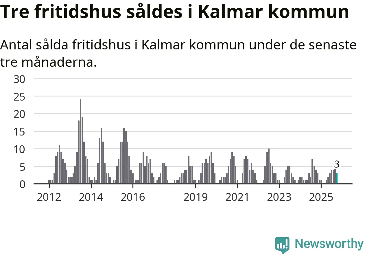 Mellan augusti och oktober gjordes sammanlagt tre affärer med fritidshus i Kalmar kommun. Det kan jämföras med fyra vid motsvarande tid i fjol.