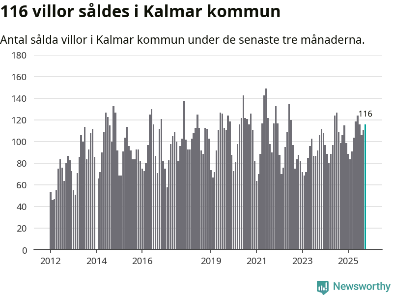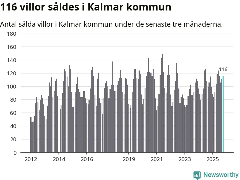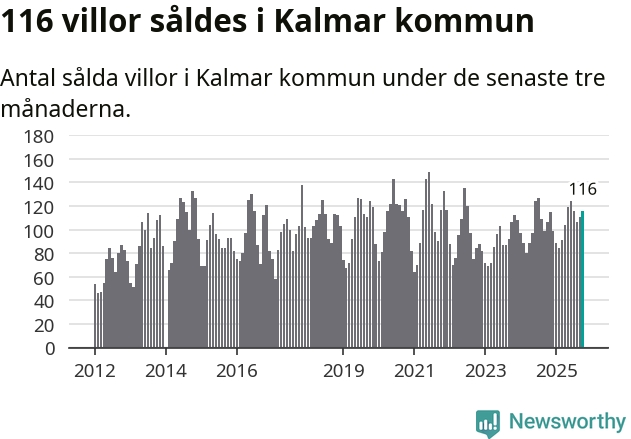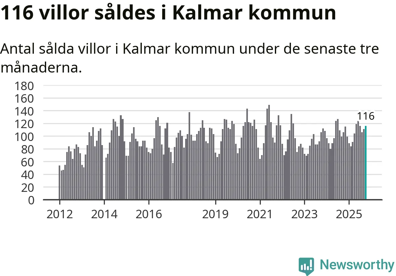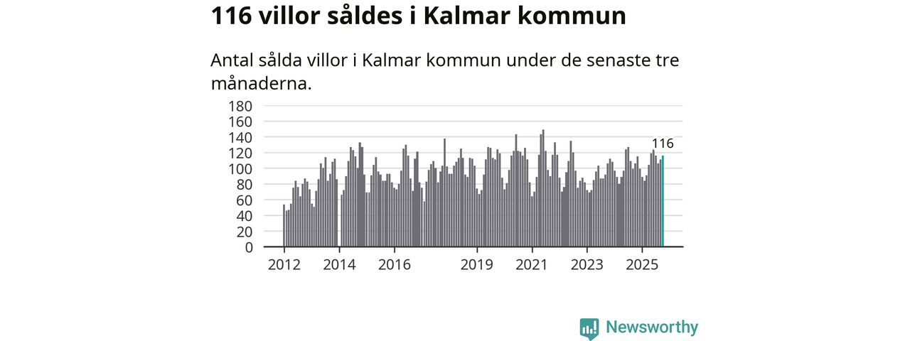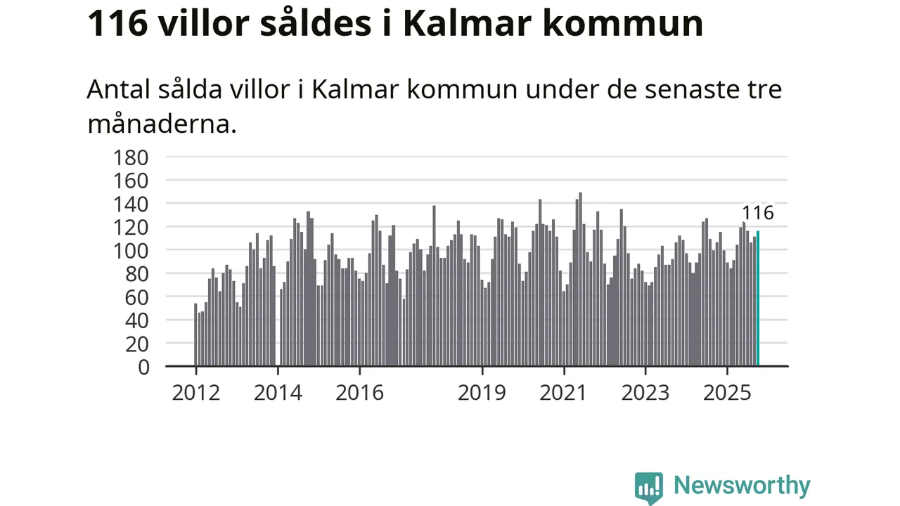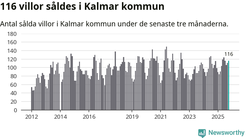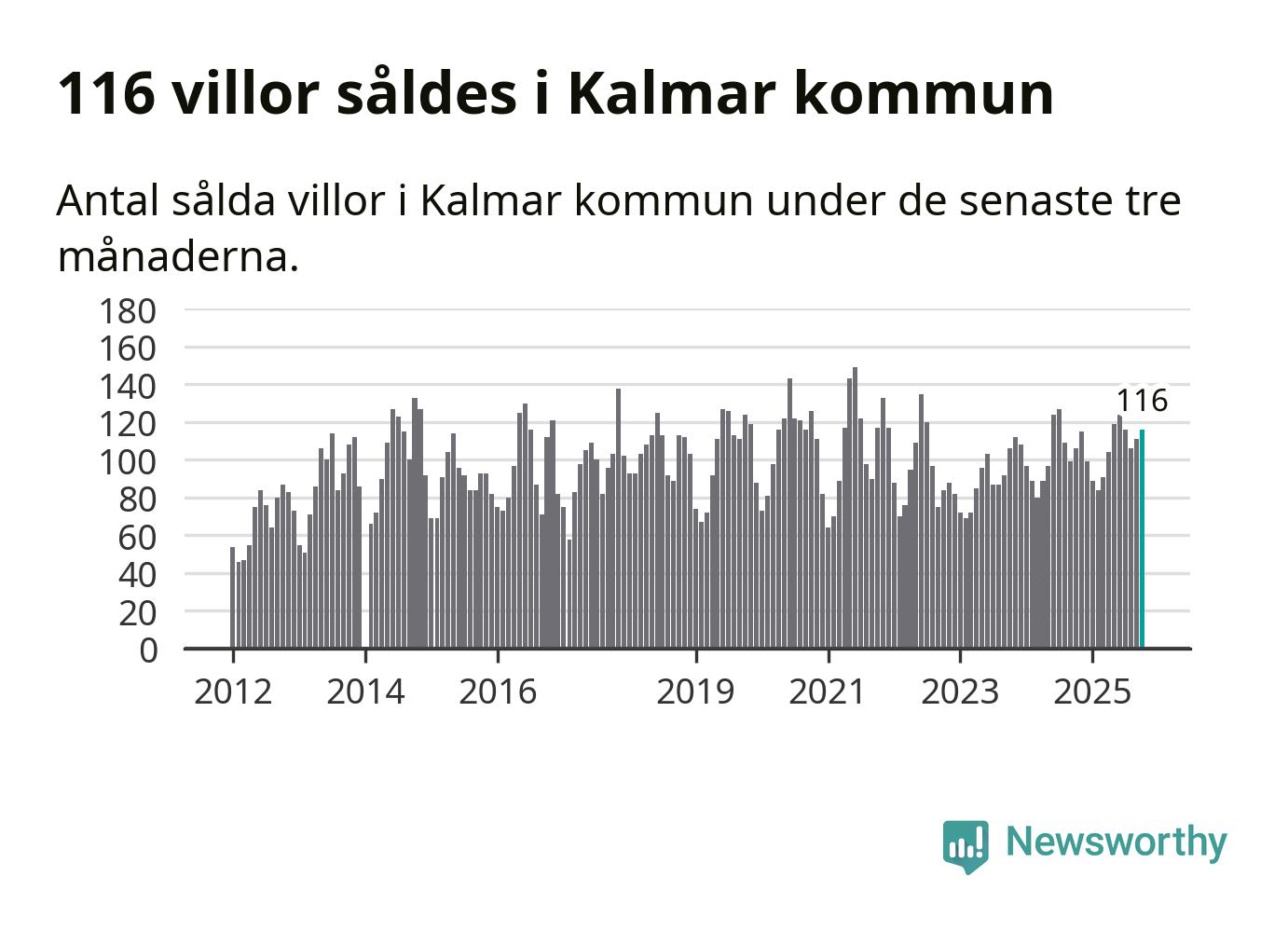 Sammanlagt såldes 116 villor i Kalmar kommun mellan augusti och oktober till ett genomsnittligt pris på 3,4 miljoner kronor. I fjol gjordes 106 affärer vid den här tiden på året.