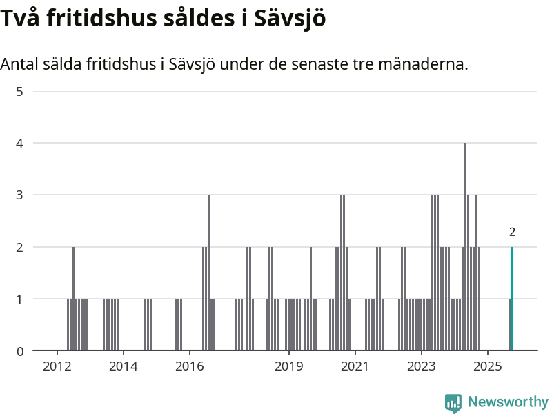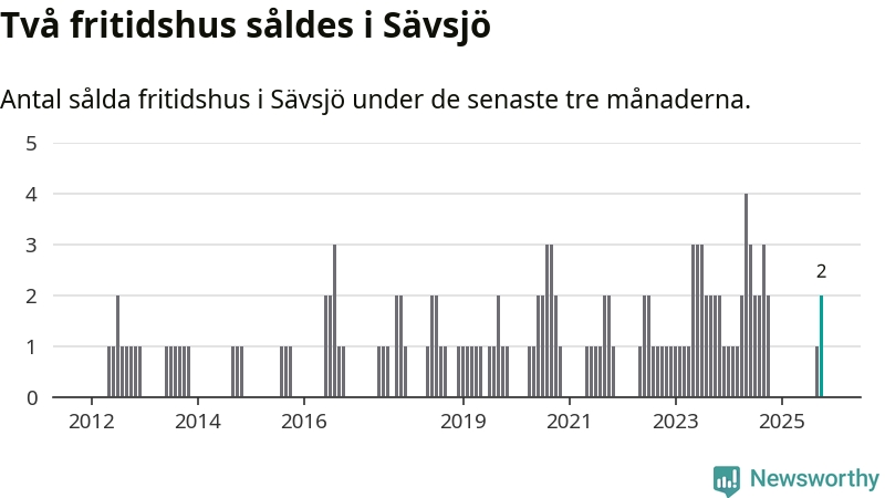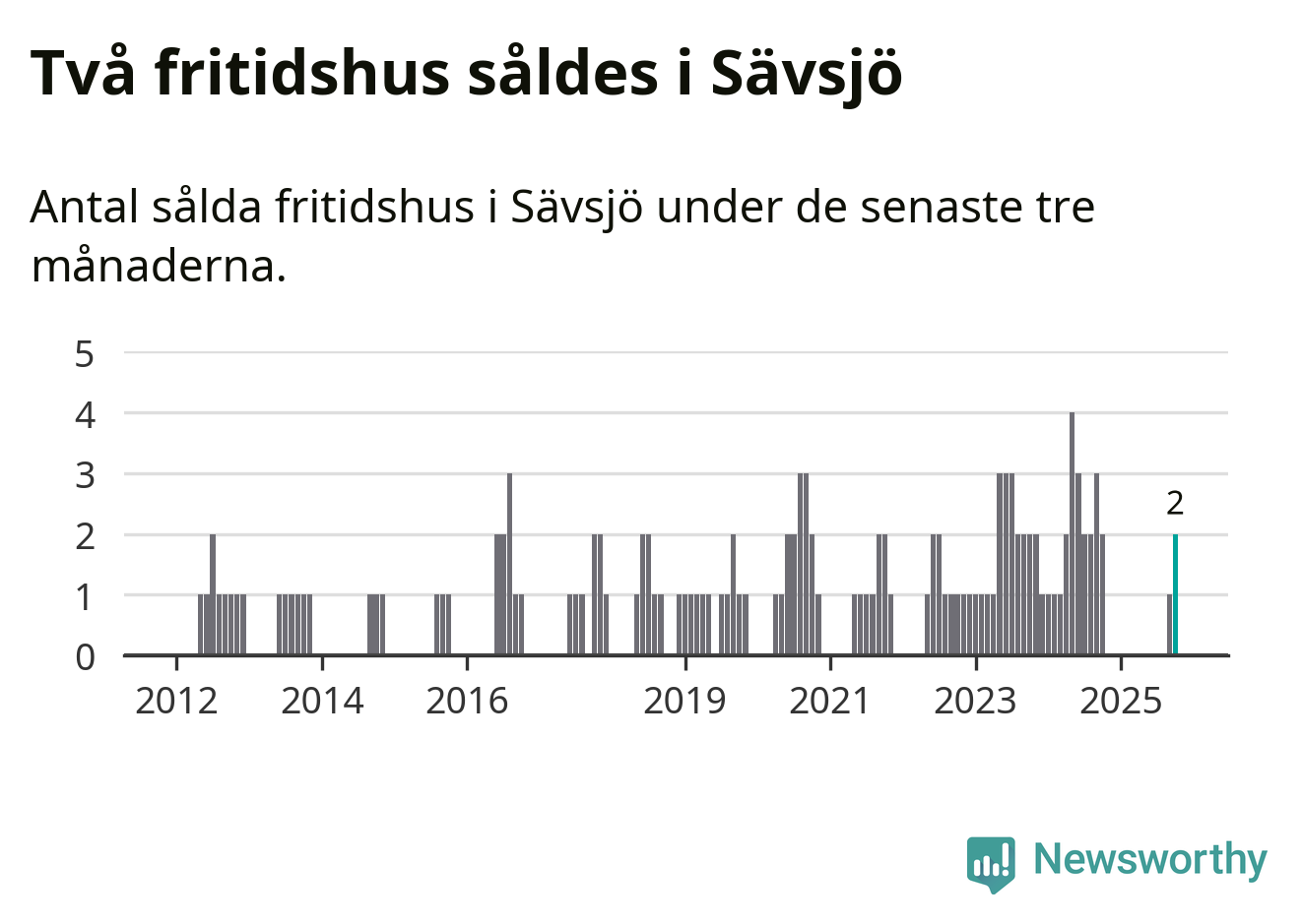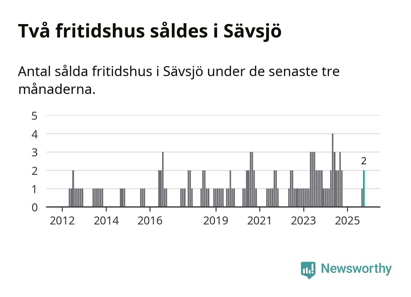 Mellan augusti och oktober gjordes sammanlagt två affärer med fritidshus i Sävsjö kommun. Det är lika många affärer som vid motsvarande tid i fjol.