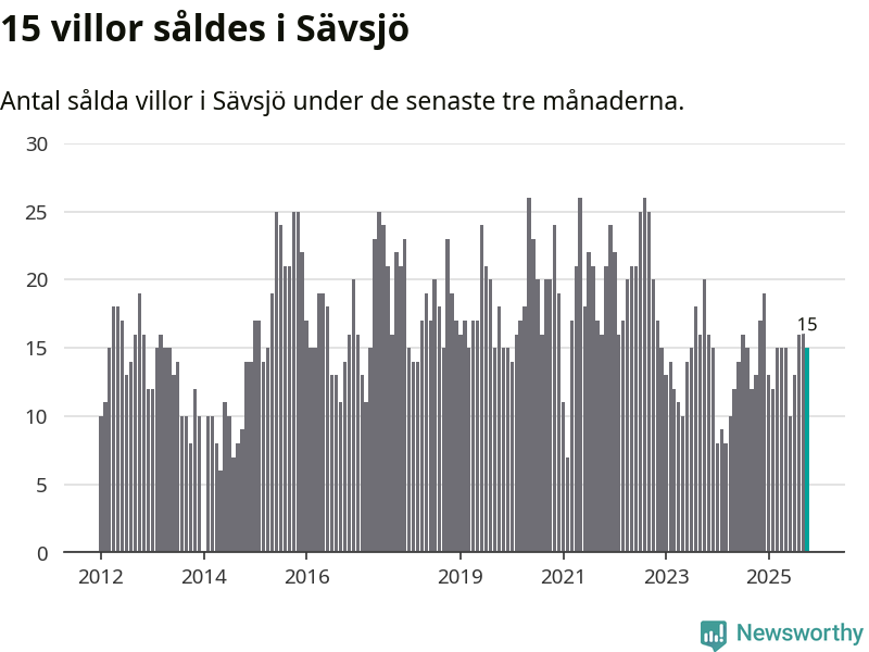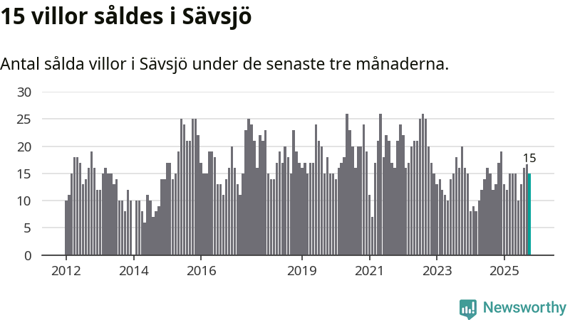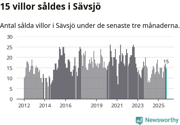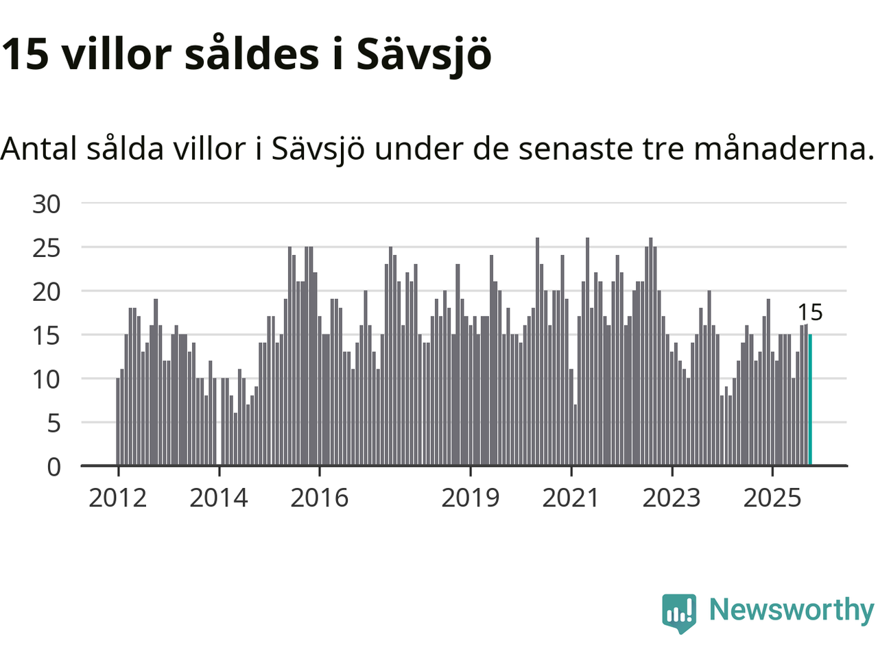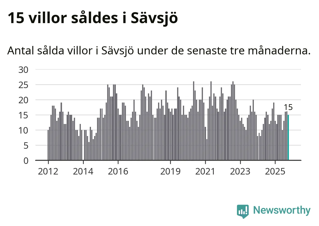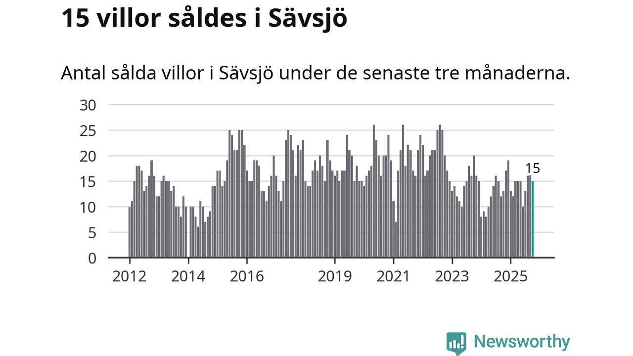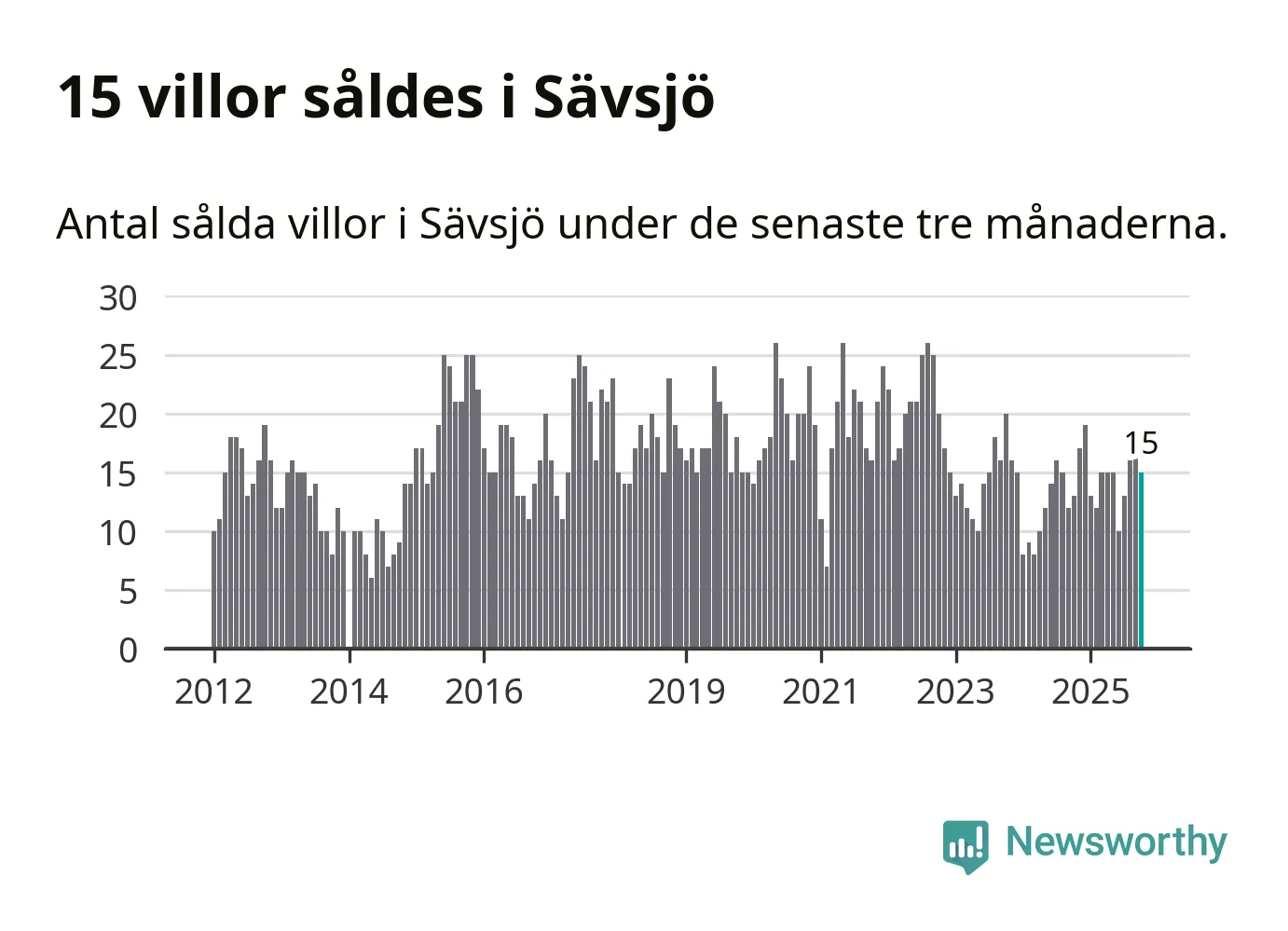 Mellan augusti och oktober gjordes sammanlagt 15 affärer med villor i Sävsjö kommun. Det kan jämföras med 13 vid motsvarande tid i fjol.