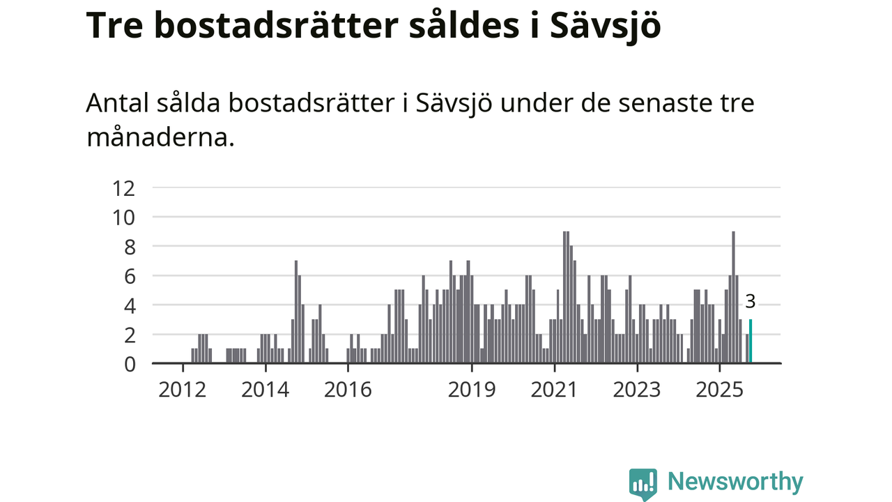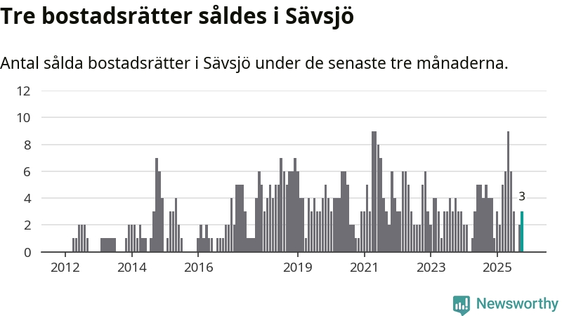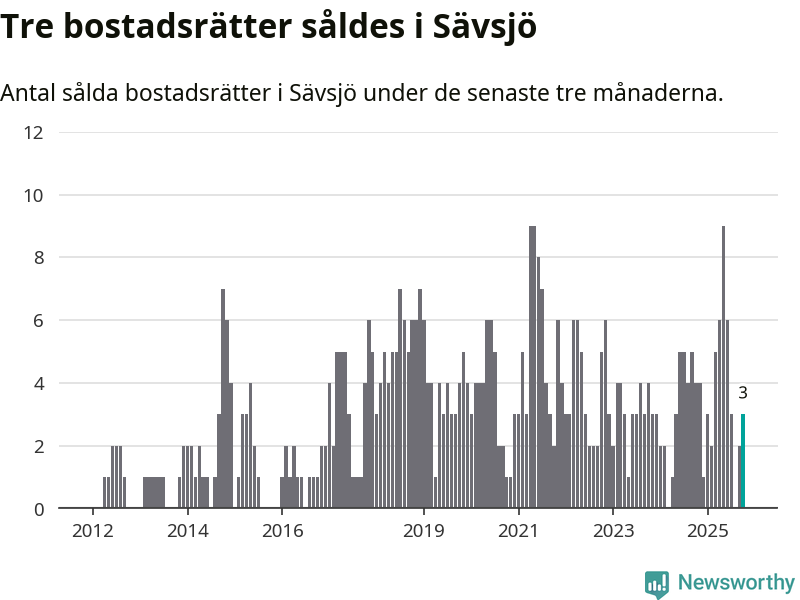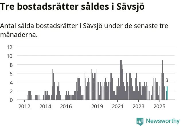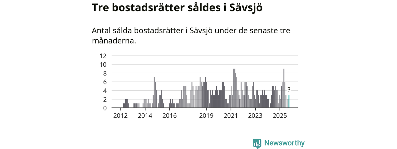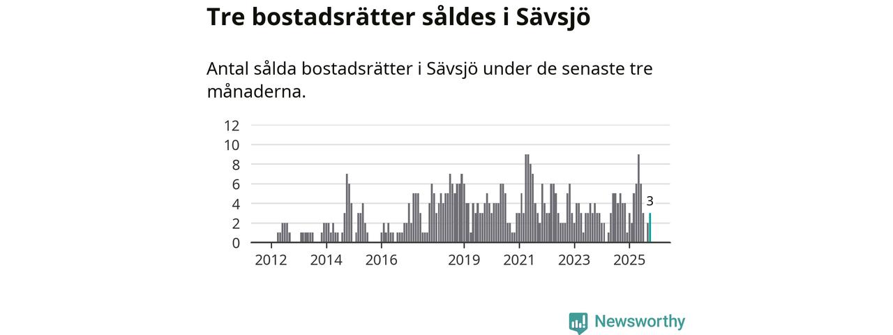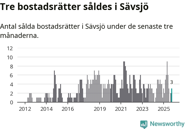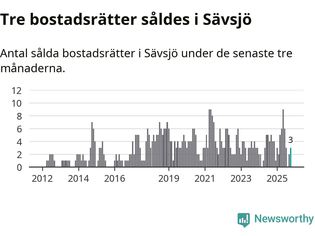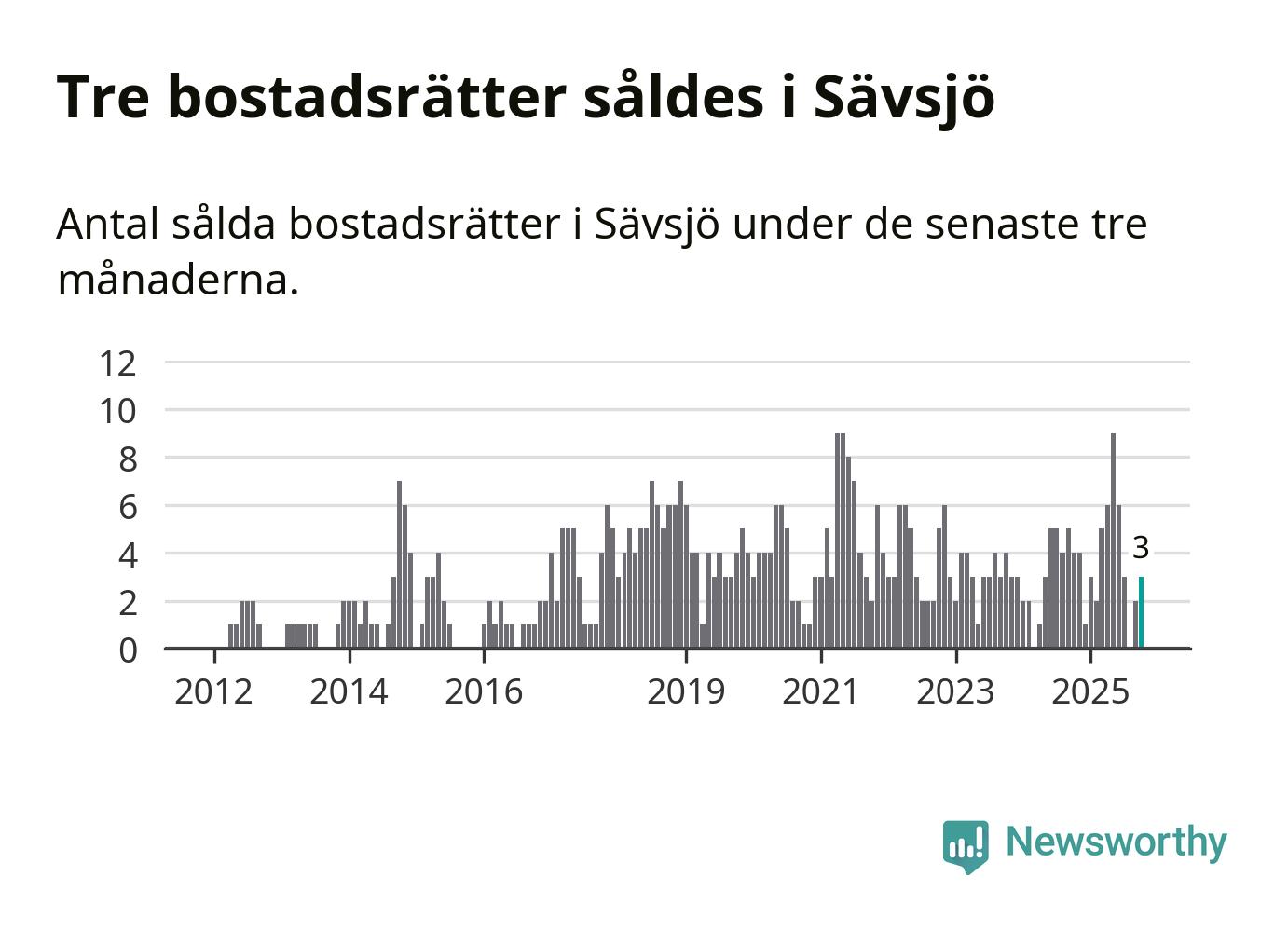 Mellan augusti och oktober gjordes sammanlagt tre affärer med bostadsrätter i Sävsjö kommun. Det kan jämföras med fyra vid motsvarande tid i fjol.